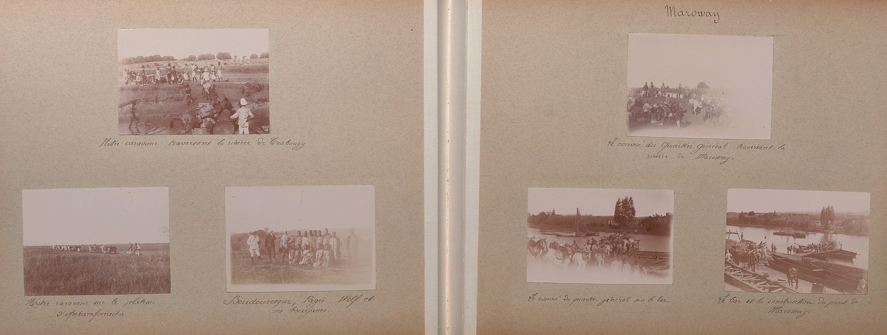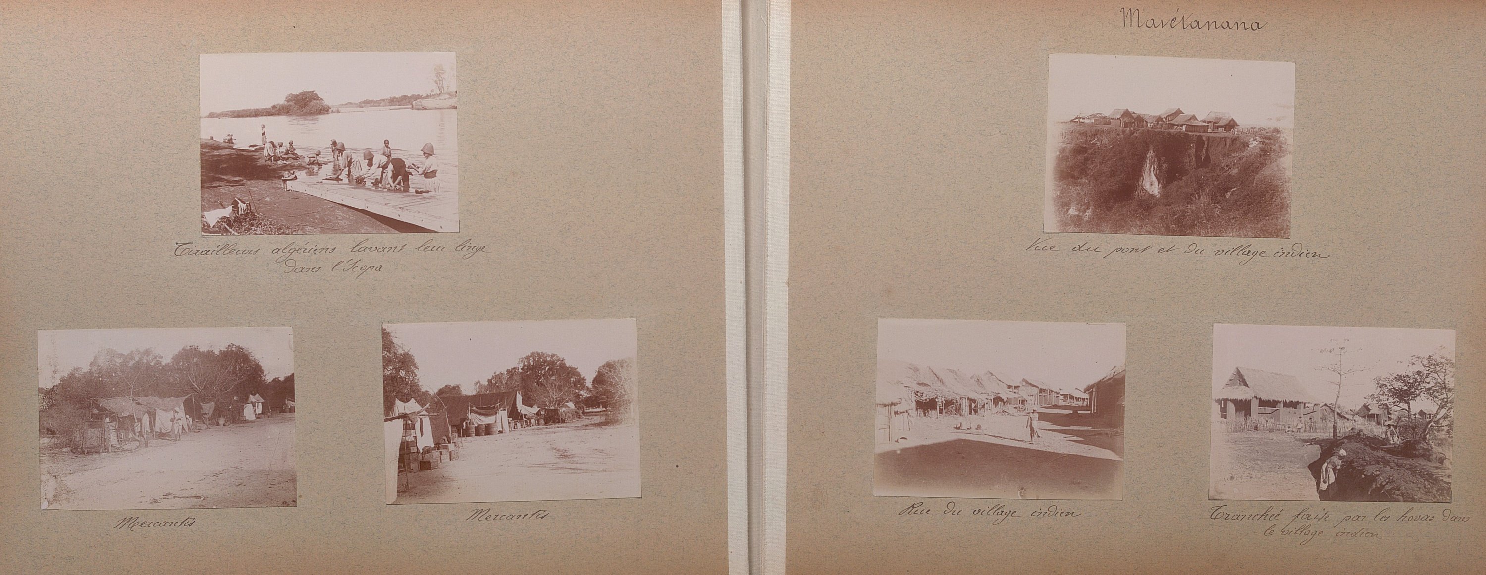 La canonnière « L’invincible » sur la rivière de la Betiboka ; camps et villages de Marobolo, Mavétanana ; Suberbieville revue du 14 juillet 1895 ; exécution de 4 tirailleurs malgaches ; Tsaratsotra (prises de guerre, transport de cercueils de soldats français tués, prisonniers hovas) ;
