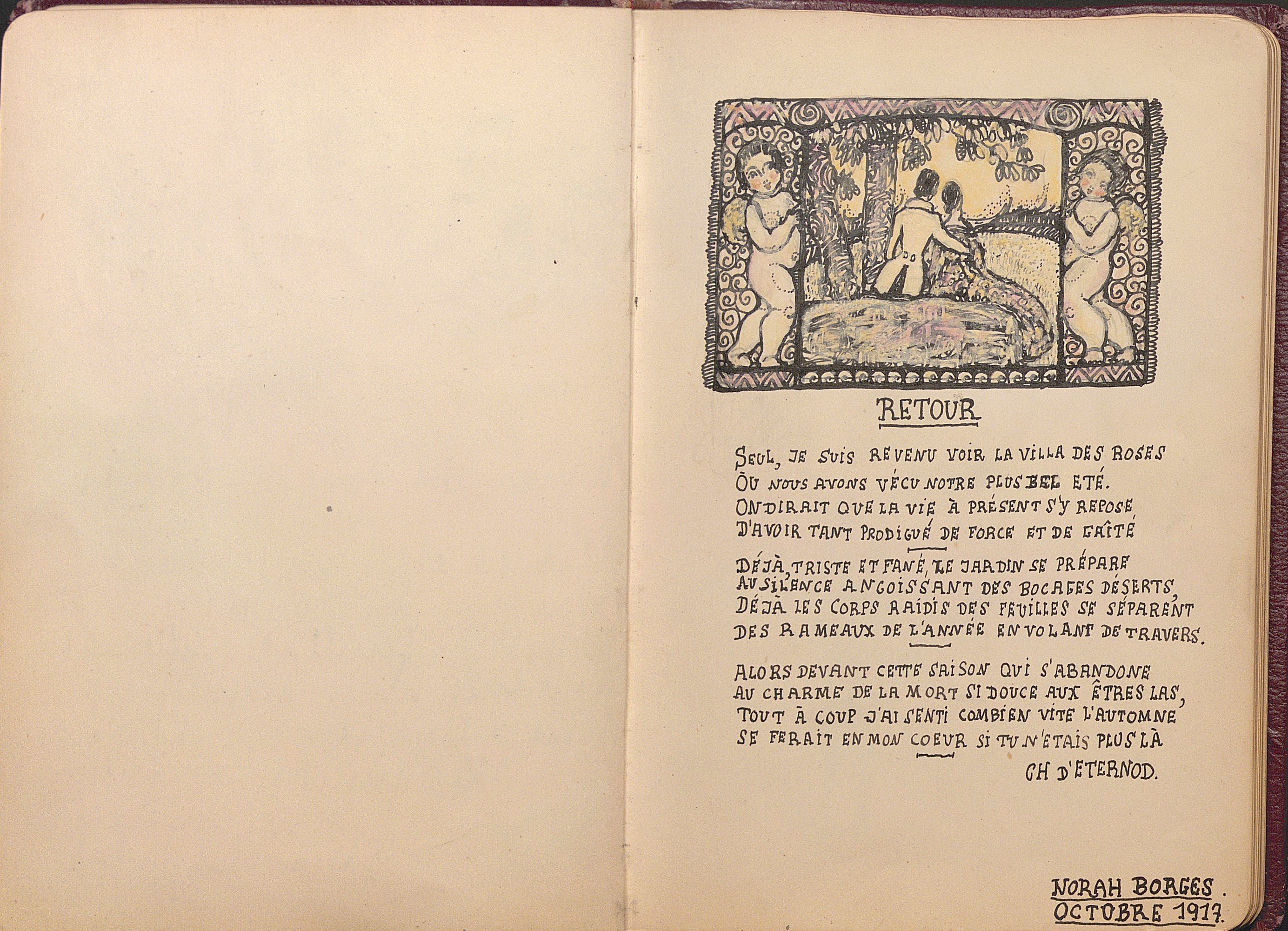Dont poème par Ch. d’Eternod illustré par Norah Borges (1901-1998) artiste peintre argentine, Portrait de