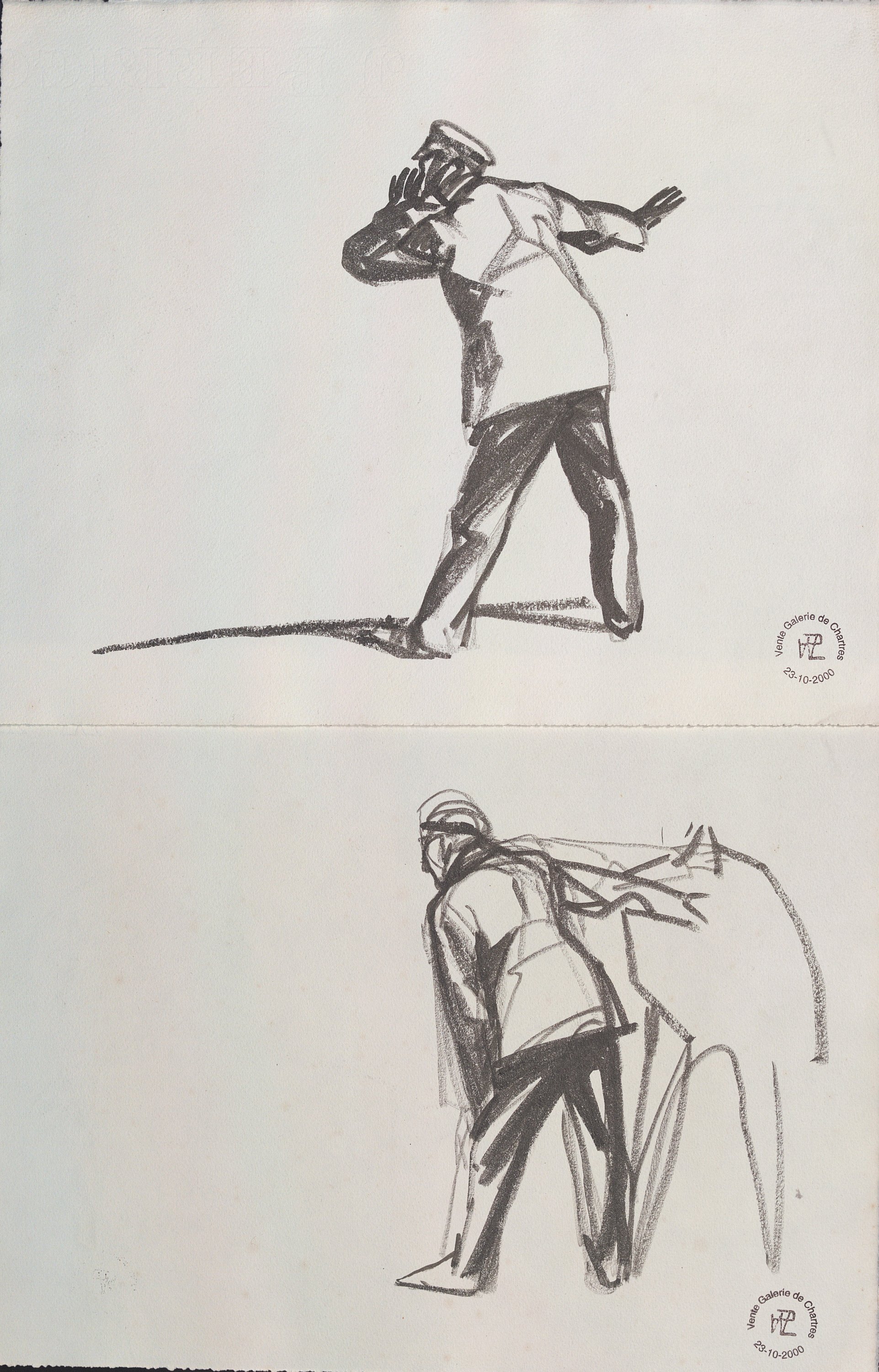 Lot de 22 dessins de presse originaux, à l’encre, fusain et crayon, sur papier, portant au dos cachet de la vente à la Galerie de Chartres du 23-10-2000, env. 25 x 31 cm.