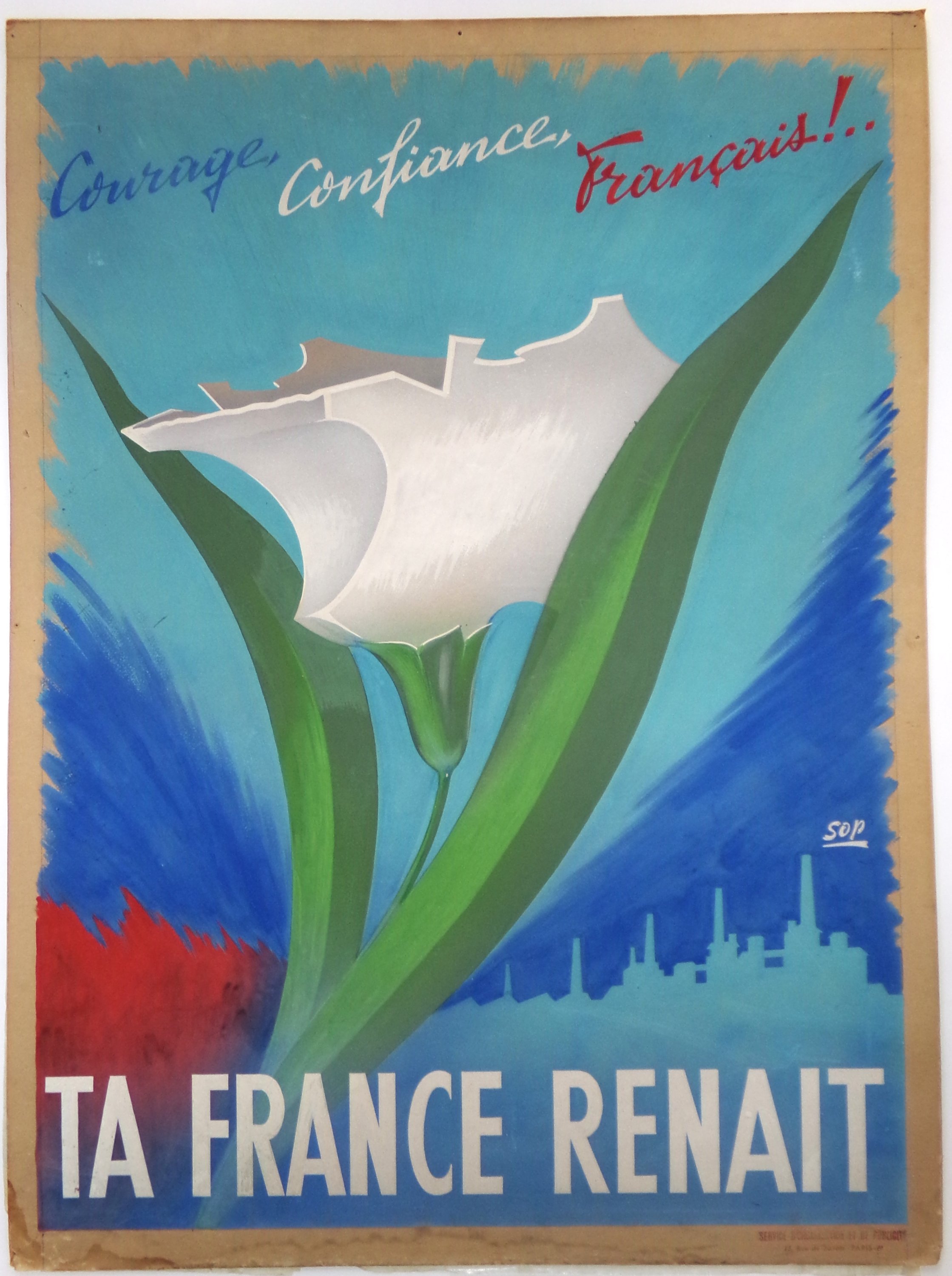 2 maquettes d’affiches peintes, réalisées par le Service d'Organisation et de Publicité (S.O.P.) installé au 15, rue de Savoie à Paris.