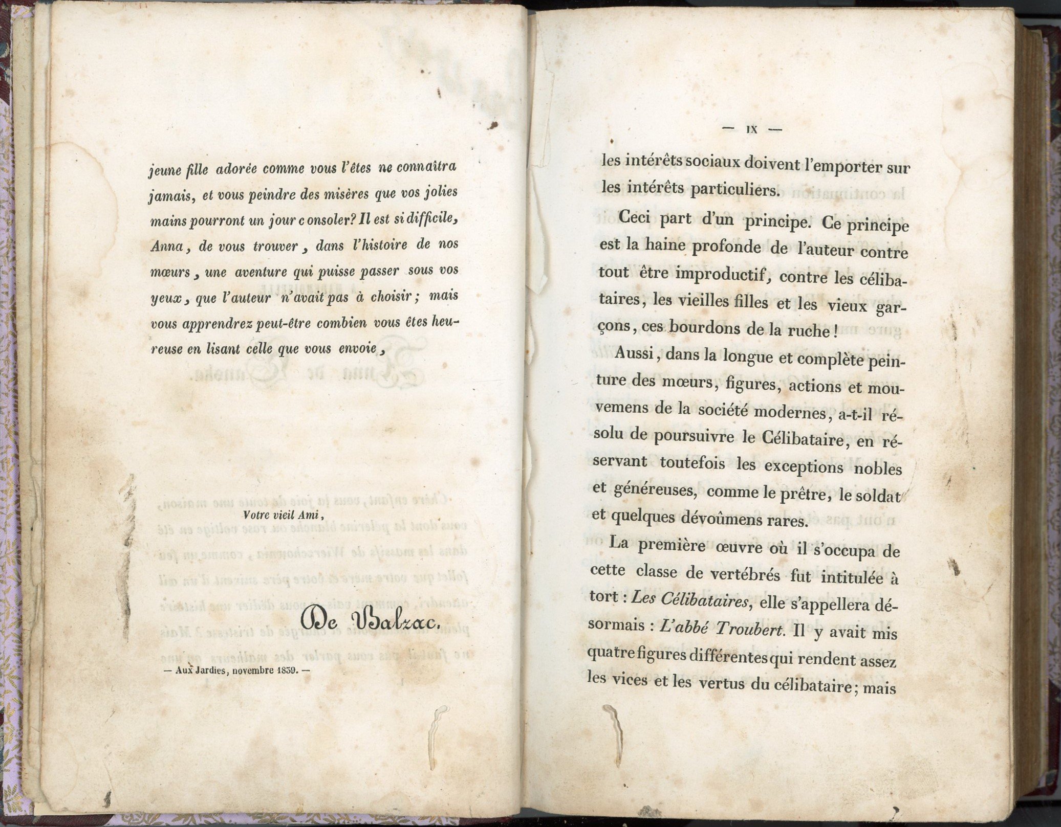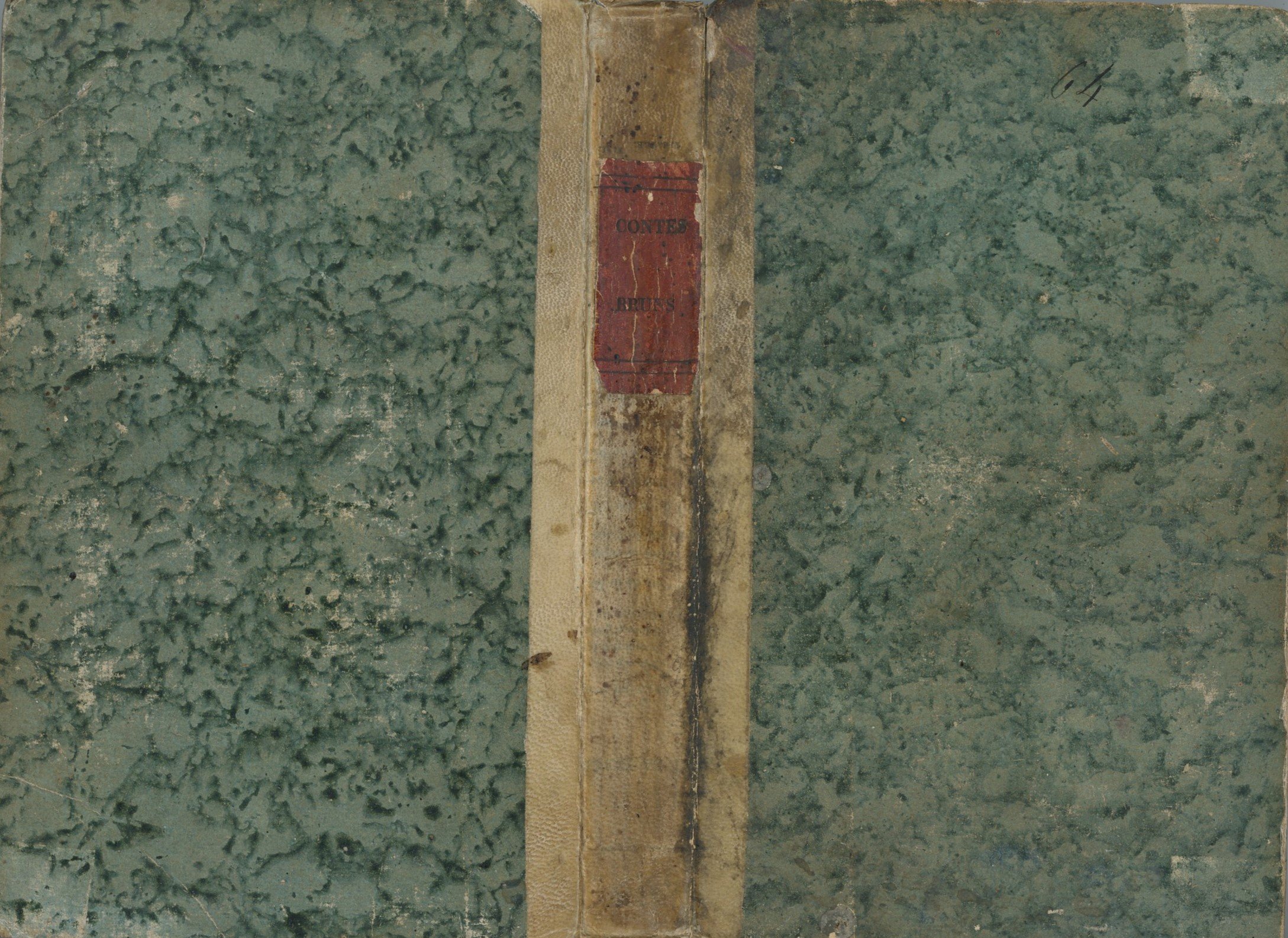 Contes Bruns par une [tête à l'envers]. Paris, Canel & Guyot, 1832. In- rel. ½ veau. [2] ff. (rest.)-398 pp. Edition originale parue anonymement. Titre orné d'une vignette gravée d'après Johannot. Ce recueil comprend dix contes, dont deux par Balzac : Une conversation entre onze heures et minuit, et Le Grand d'Espagne. Les huit autres sont de Charles Rabou et Philarète Chasles. Balzac ne tarda pas à révéler la paternité des contes peu après la parution du recueil, dans La Caricature du 16 février 1832 : « Ils étaient trois, avec de l'esprit comme quatre ; trois anonymes qui avaient nom Chasles, Balzac et Rabou ». (rousseurs) Etiquette « Cabinet de lecture, B. Conduchest à Bordeaux » ;