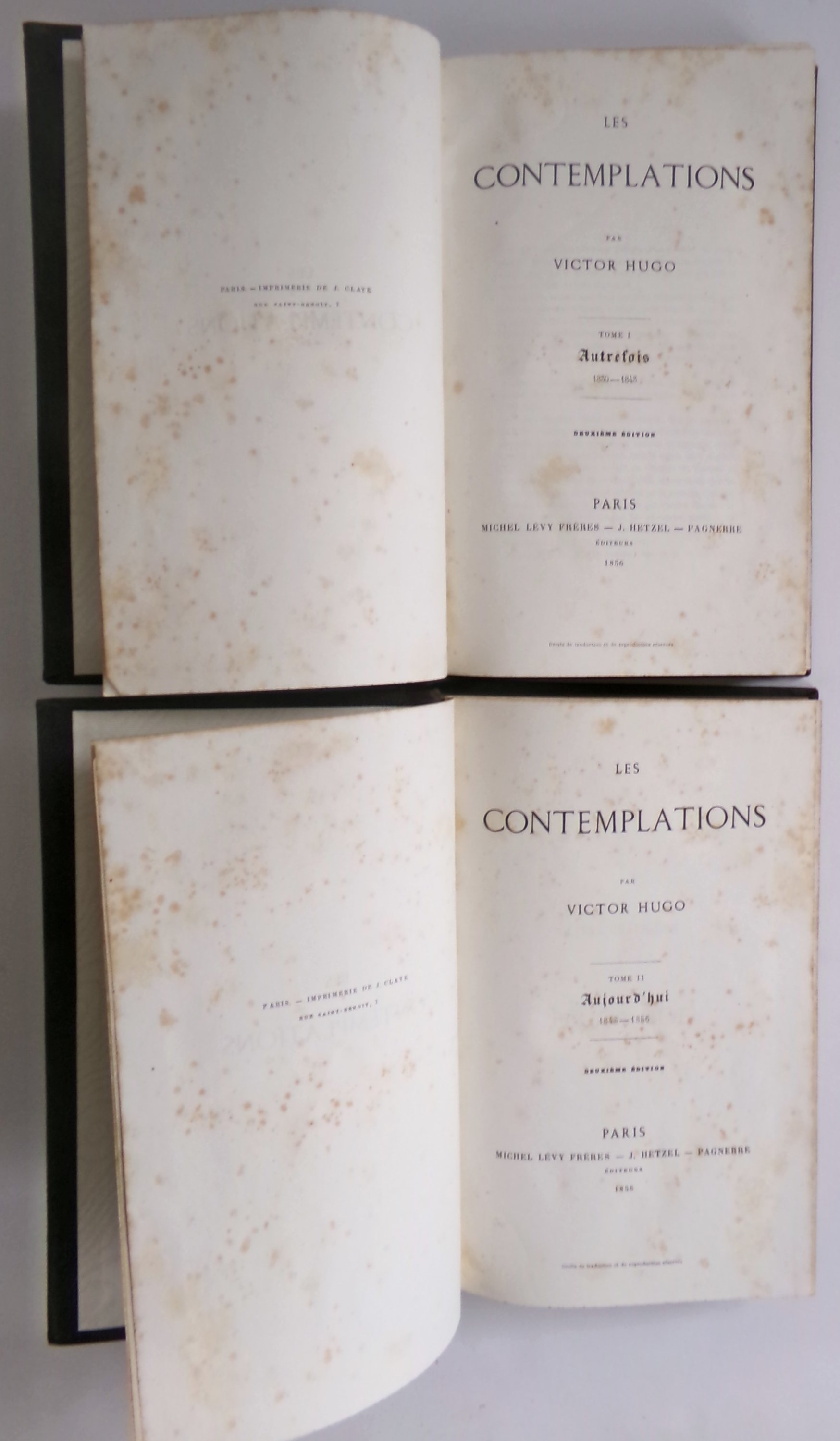 Hugo (Victor), Les contemplations. Paris, Michel Lévy frères-J. Hetzel, Pagnerre, 1856. 2 vol. rel. in-8 (rousseurs) ;