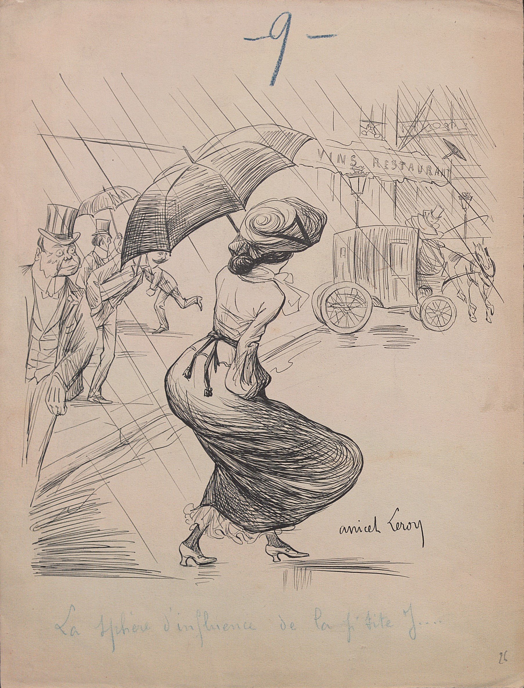 Anicet Leroy, La sphère d’influence de la p’tite J ., encre, signé en bas à droite, titré, 33 x 25 cm ;