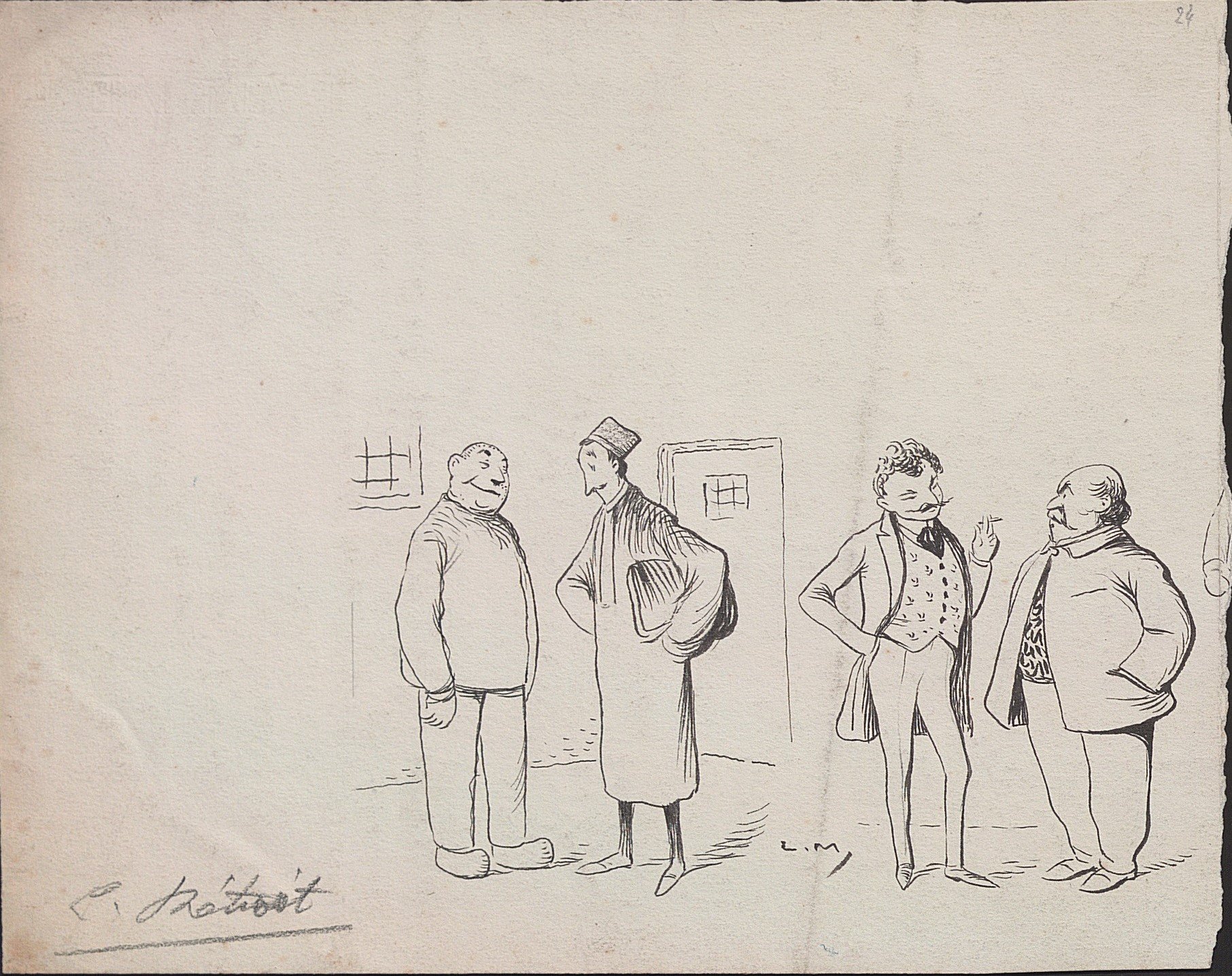 Lucien Métivet, sans titre, partie de dessin, encre, signé « L.M. », 19,5 x 25 cm ;