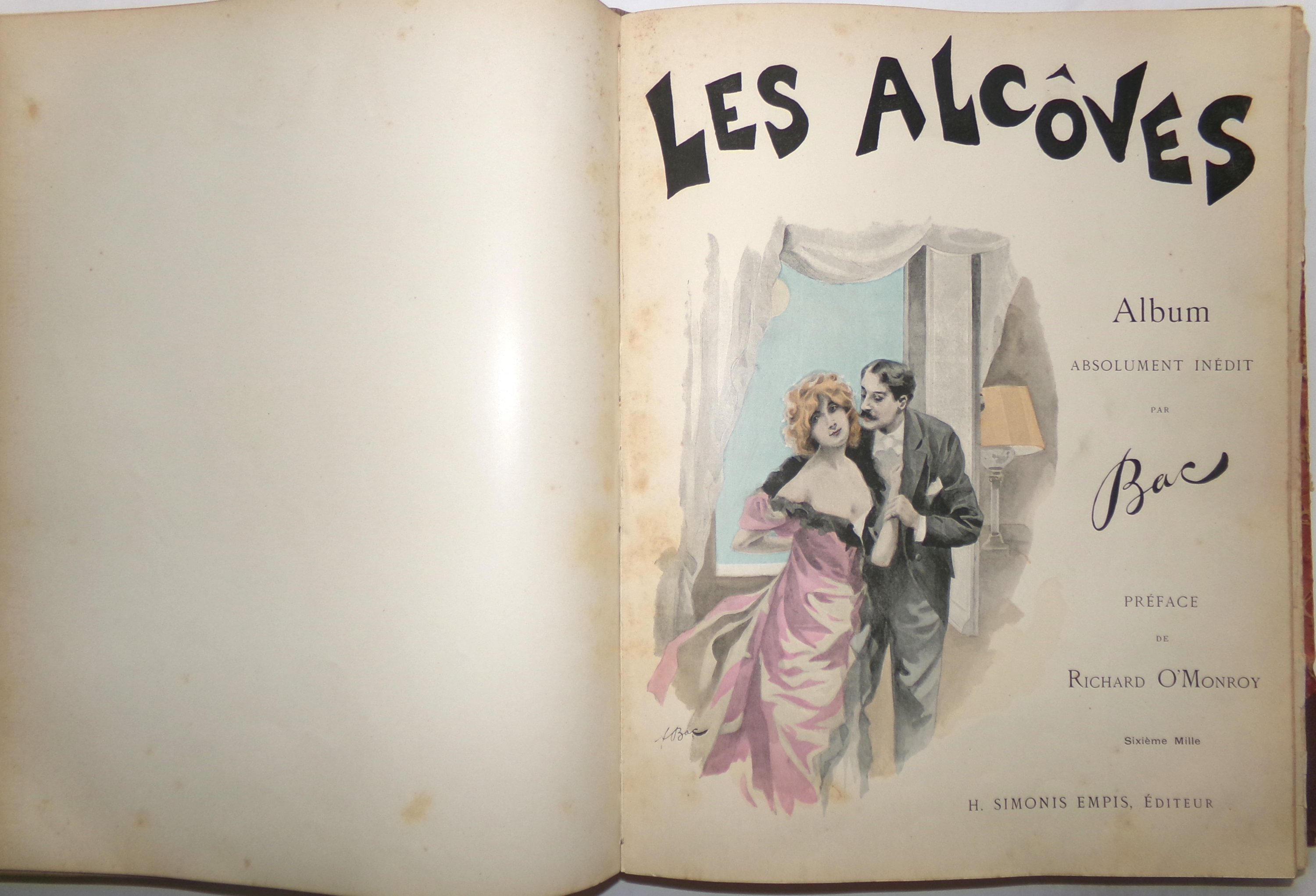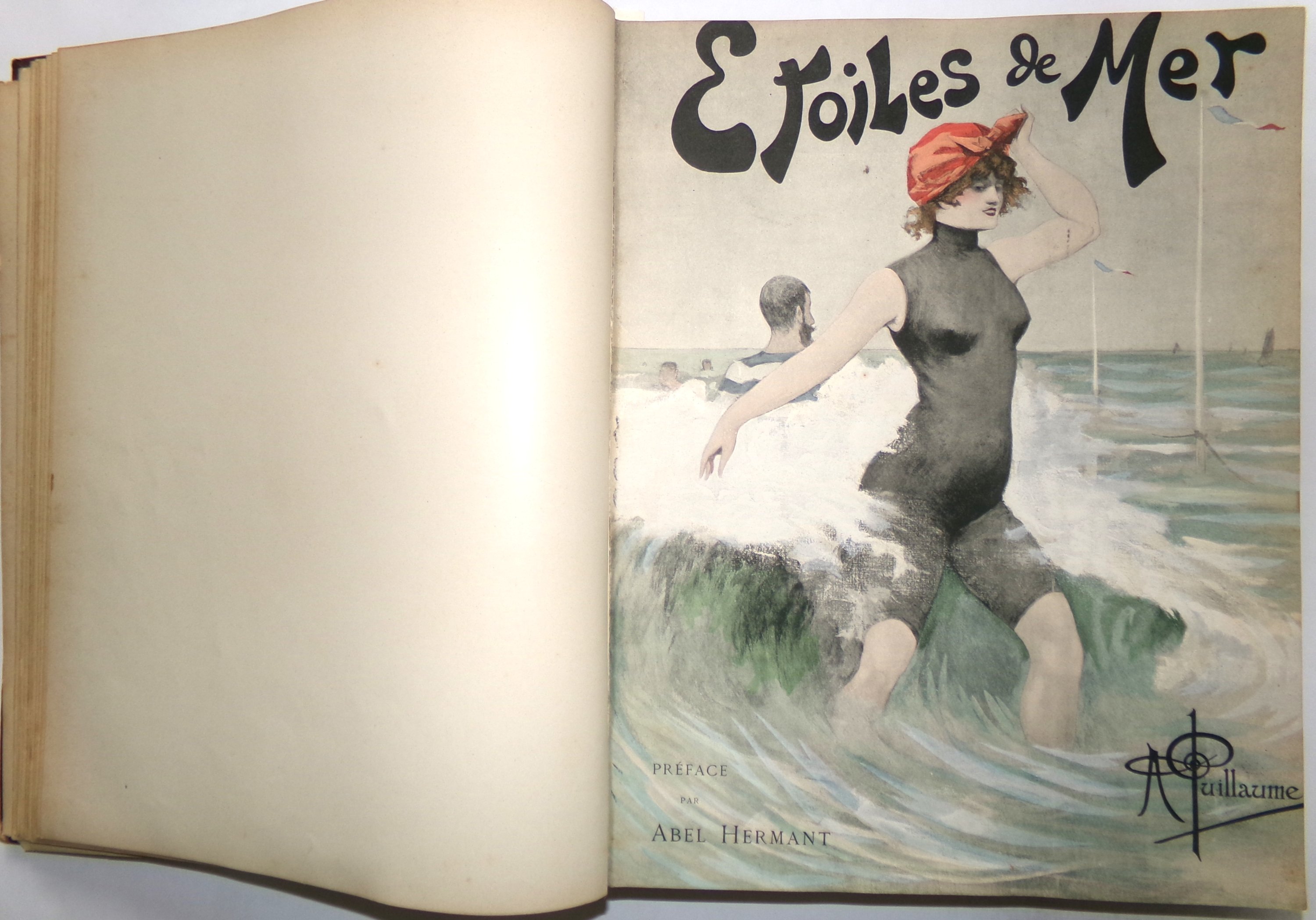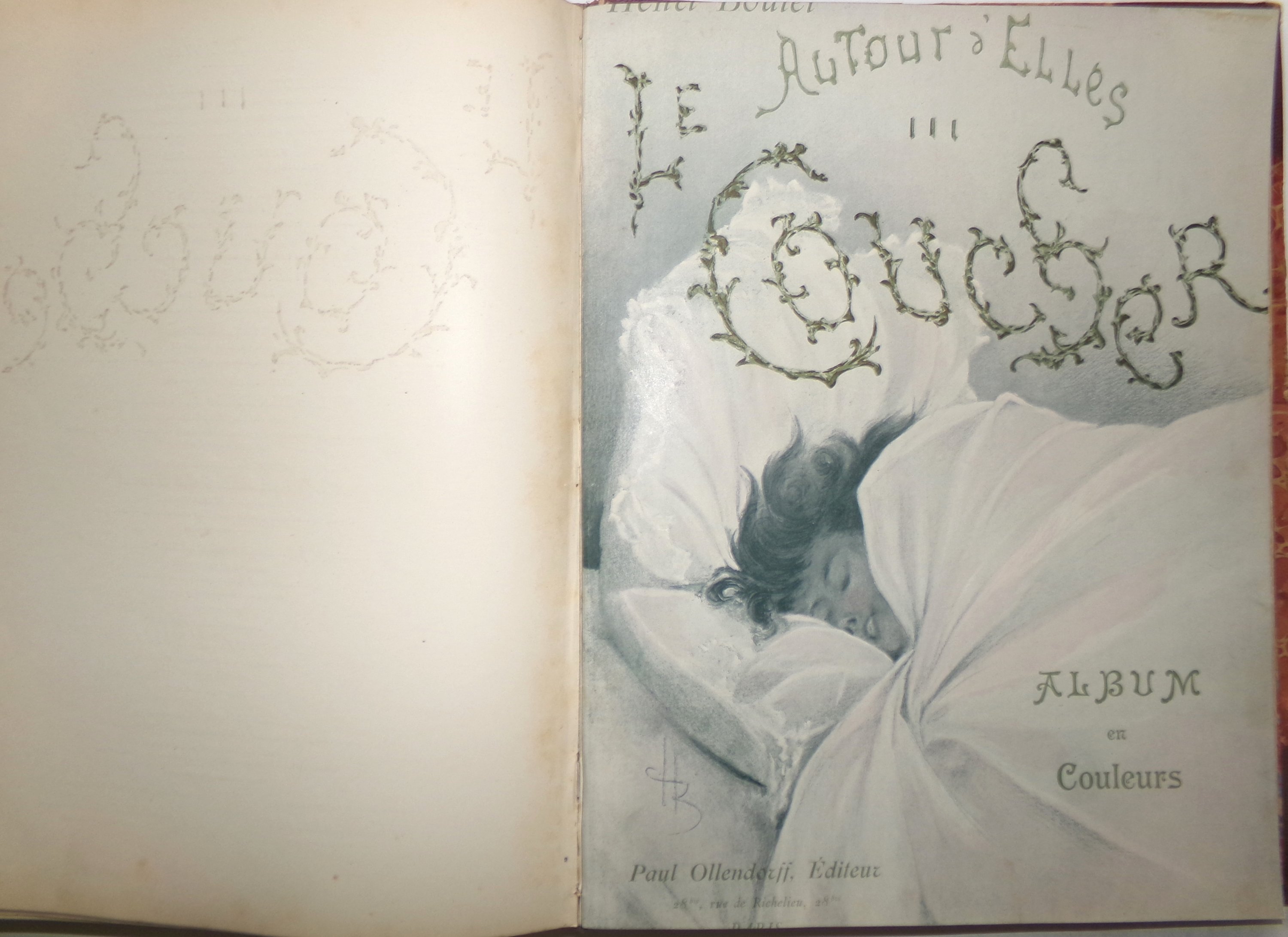 Recueil factice en 1 vol. rel. grand in-4 contenant 8 albums édités par H. Simonis Empis à Paris : Mes Campagnes ill. par Albert Guillaume ; Etoiles de Mer ill. par A. Guillaume ; Femmes de Théâtre ill. par Ferdinand Bac ; Nos femmes ill. par F. Bac ; Les Alcôves ill. par F. Bac ; Autour d’Elles Le Lever I ill. par Henri Boutet ; Autour d’Elles Les modèles II ill. par H. Boutet ; Autour d’Elles Le coucher III ill. par H. Boutet.