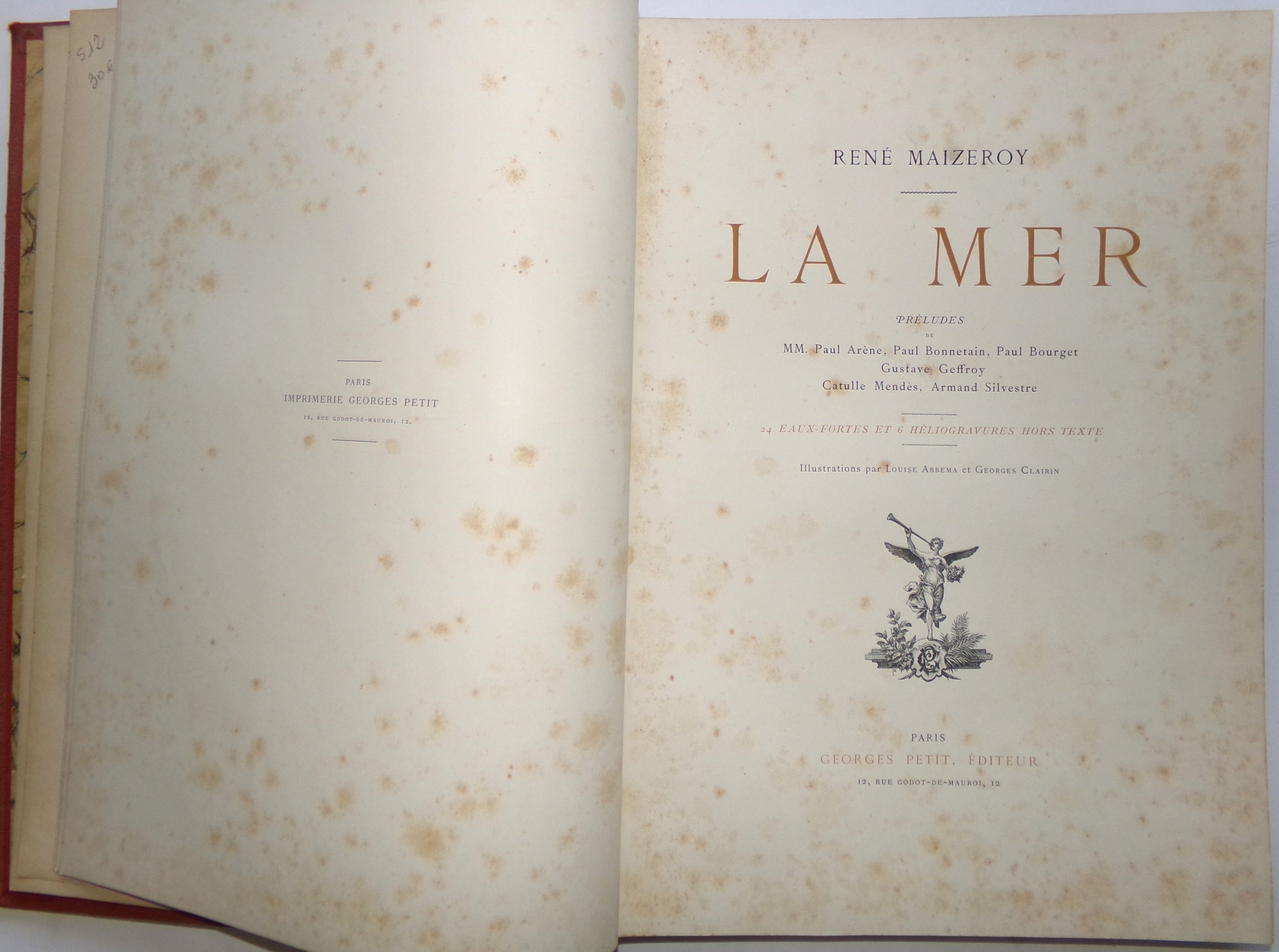 Joint : René Maizeroy, La Mer. Paris, Georges Petit, [c. 1895]. Grand in-4 re. ½ chagrin. Couv. ill. eau-forte originale de Bracquemond, de 6 héliogravures hors texte d'après Louise Abbema et gravures d'après Félix Ziem, Montenard, Meissonnier, Courbet, Abbena, Maurice Courant, Daubigny, Isabey, Monet, Millet, Duez, Dupare, Vernier, Corot, etc. Incomplet (mque 3 eaux fortes de Bracquemond) (rousseurs)