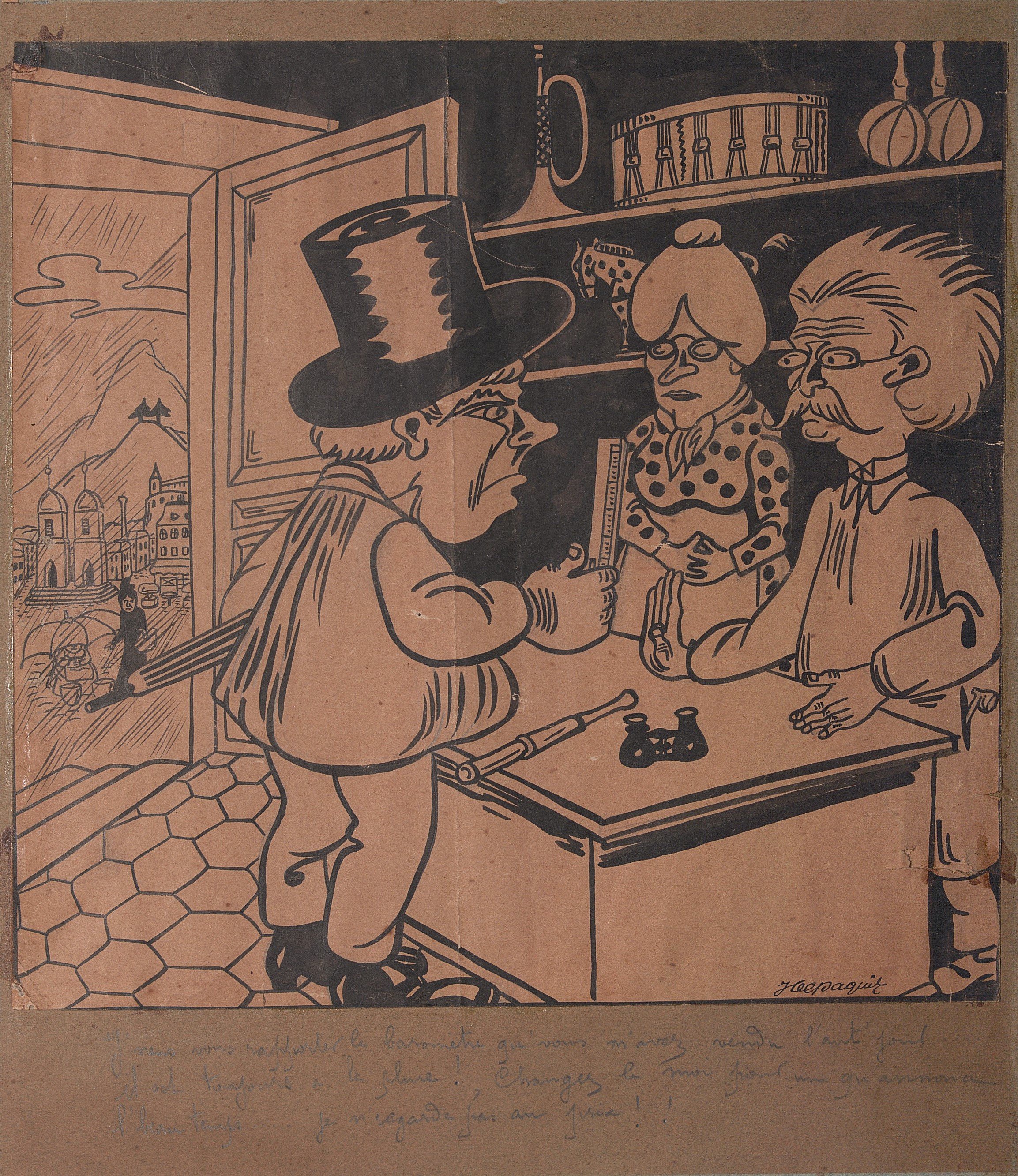 Le baromètre, encre, signé en bas à droite, légendé au crayon, 36 x 32 cm (en l’état) ;
