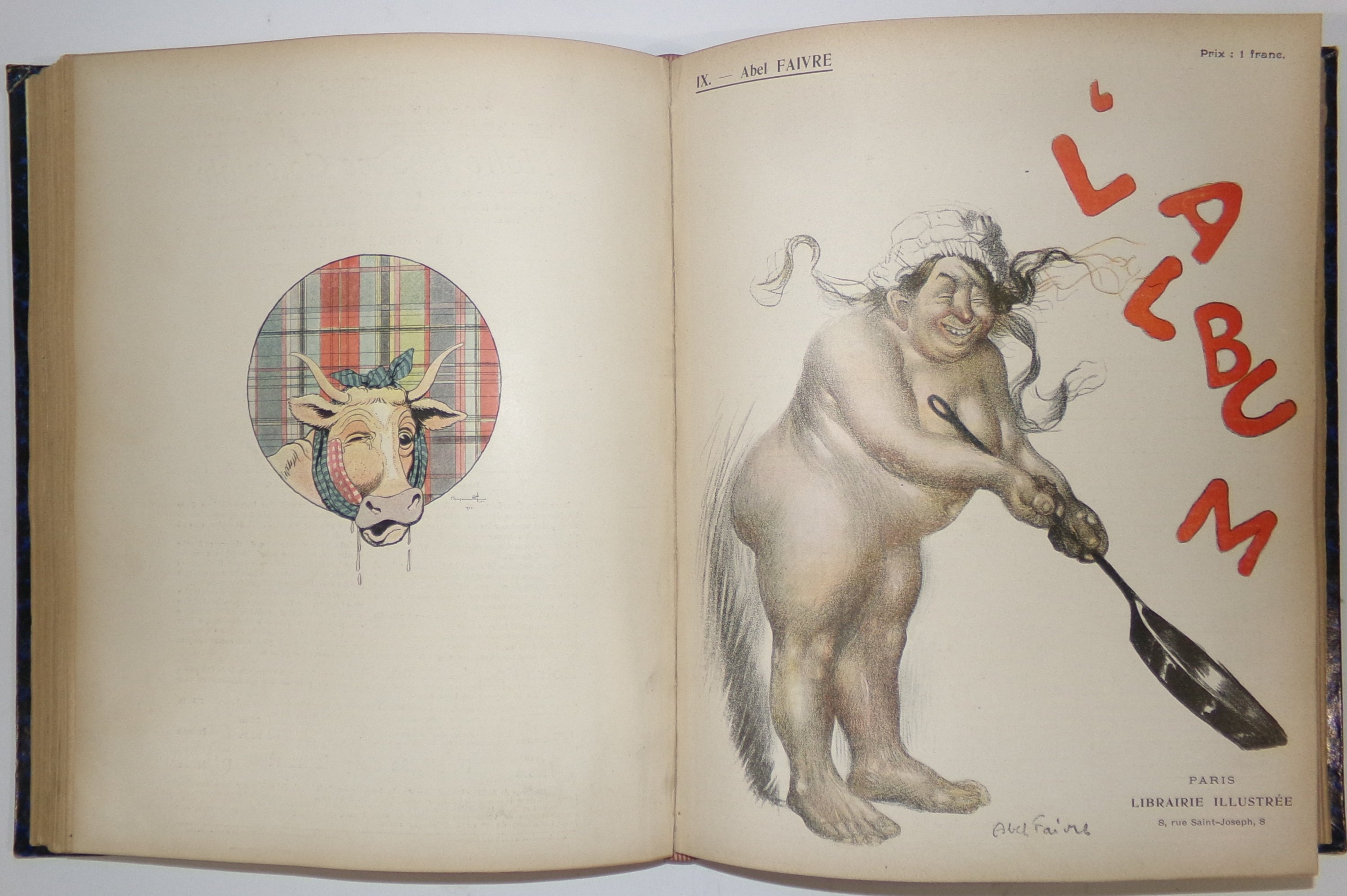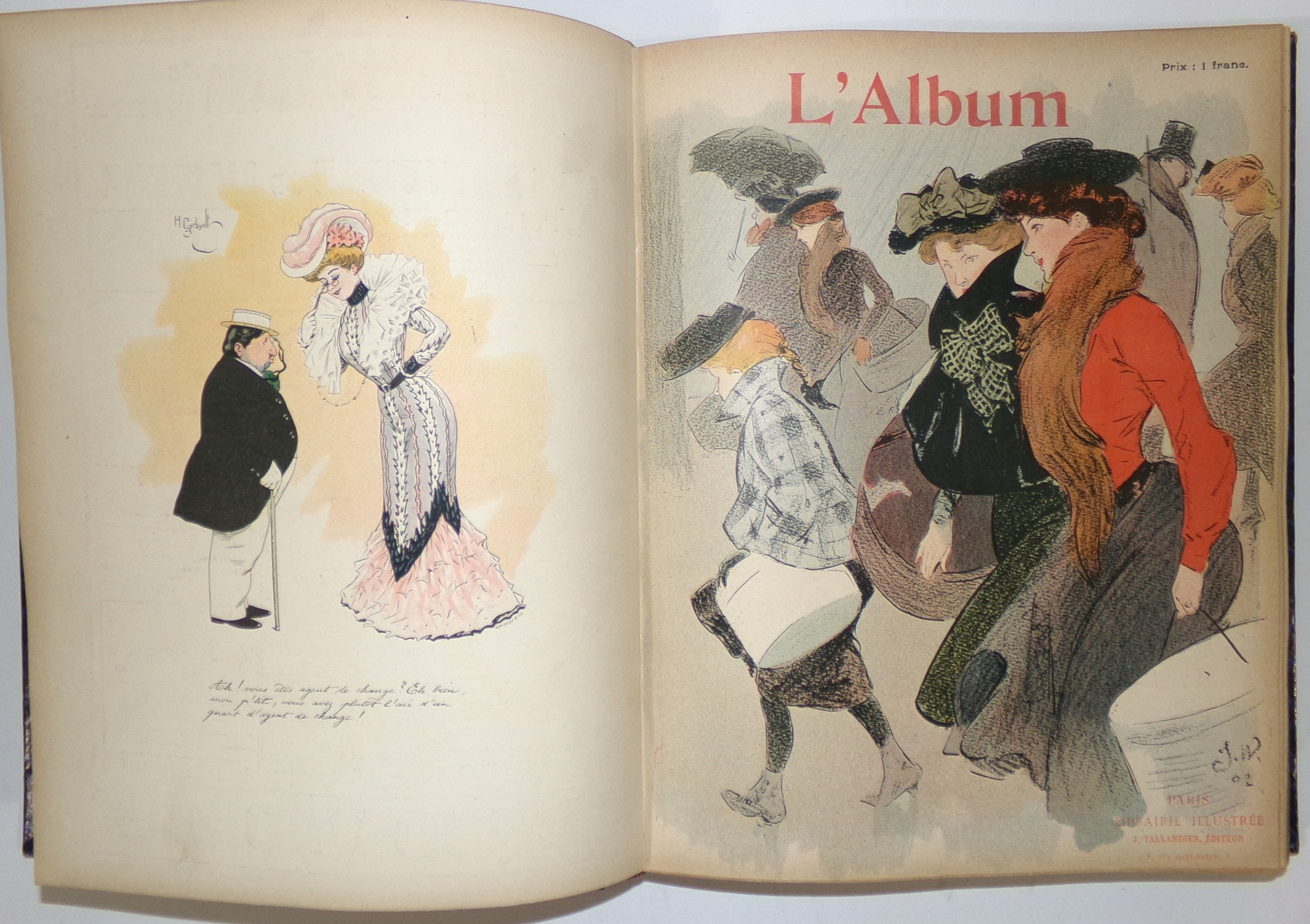 L'album - Les Maîtres de la caricature. Paris, Tallandier, 1902. Vol. in-4 rel. ½ basane bleu. La couv. cartonnage illustré de l’éditeur conservée.