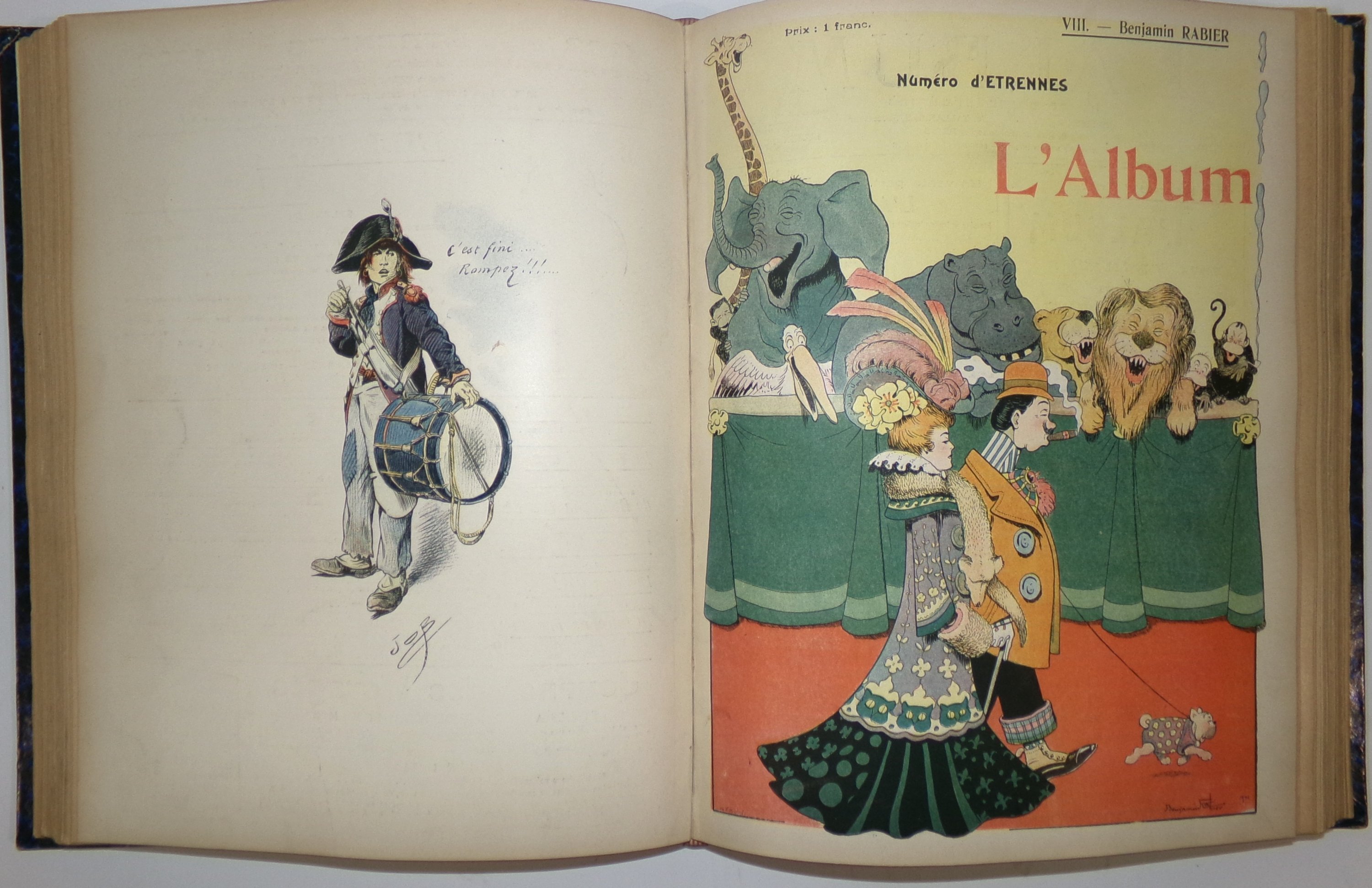 Edition originale et collection complète des 18 numéros, parus de juin 1901 à novembre 1902, chacun consacré à un illustrateur caricaturiste abondamment illustré, chaque couverture en couleurs : Ferdinand Bac, Paul Balluriau, Caran d'Ache, Abel Faivre, Jean-Louis Forain, Henry Gerbault, J. Grün, Albert Guillaume, Hermann-Paul, Charles Huard, Job, Charles Léandre, Lucien Métivet, Benjamin Rabier, Albert Robida, Steinlen, A. Willette.