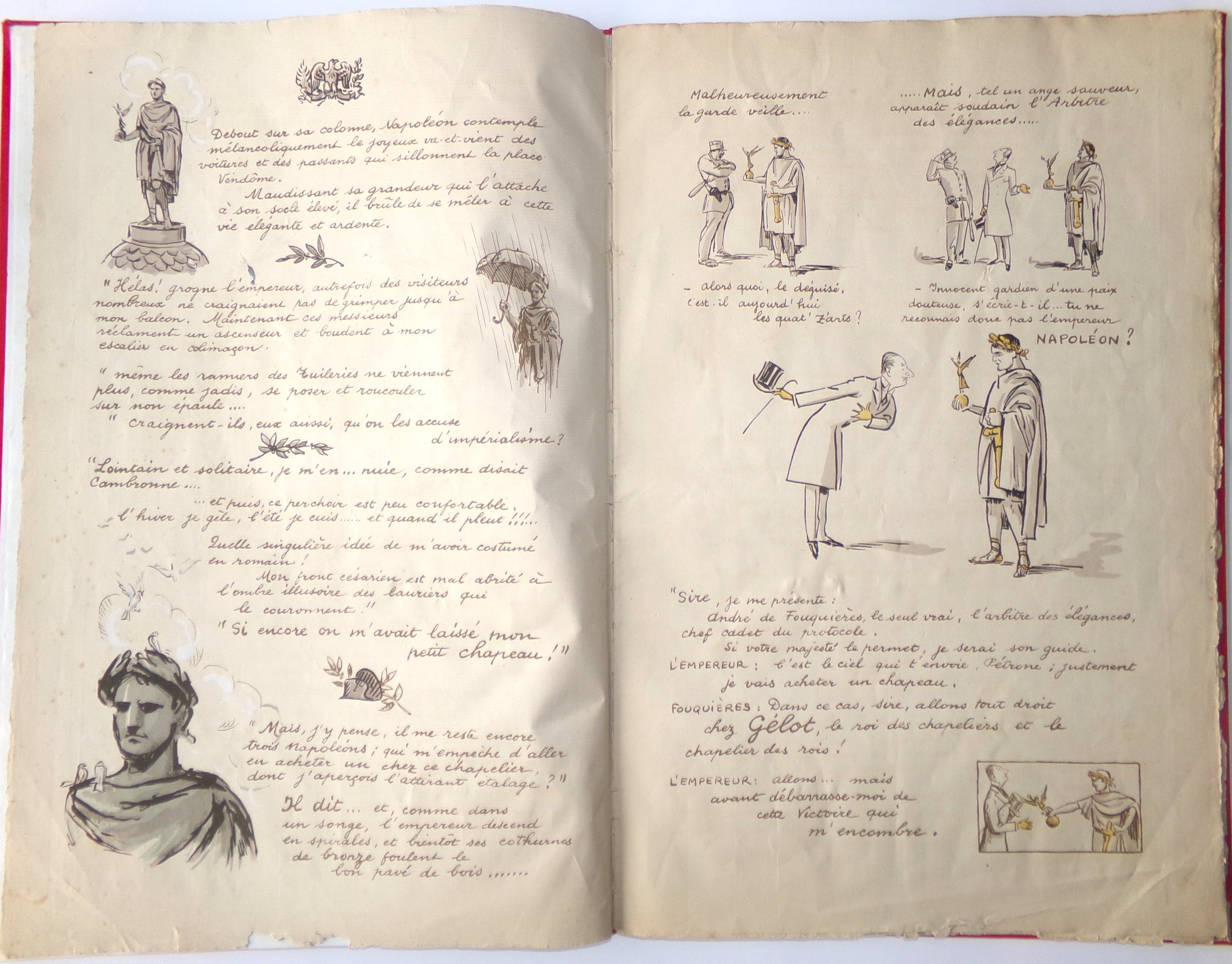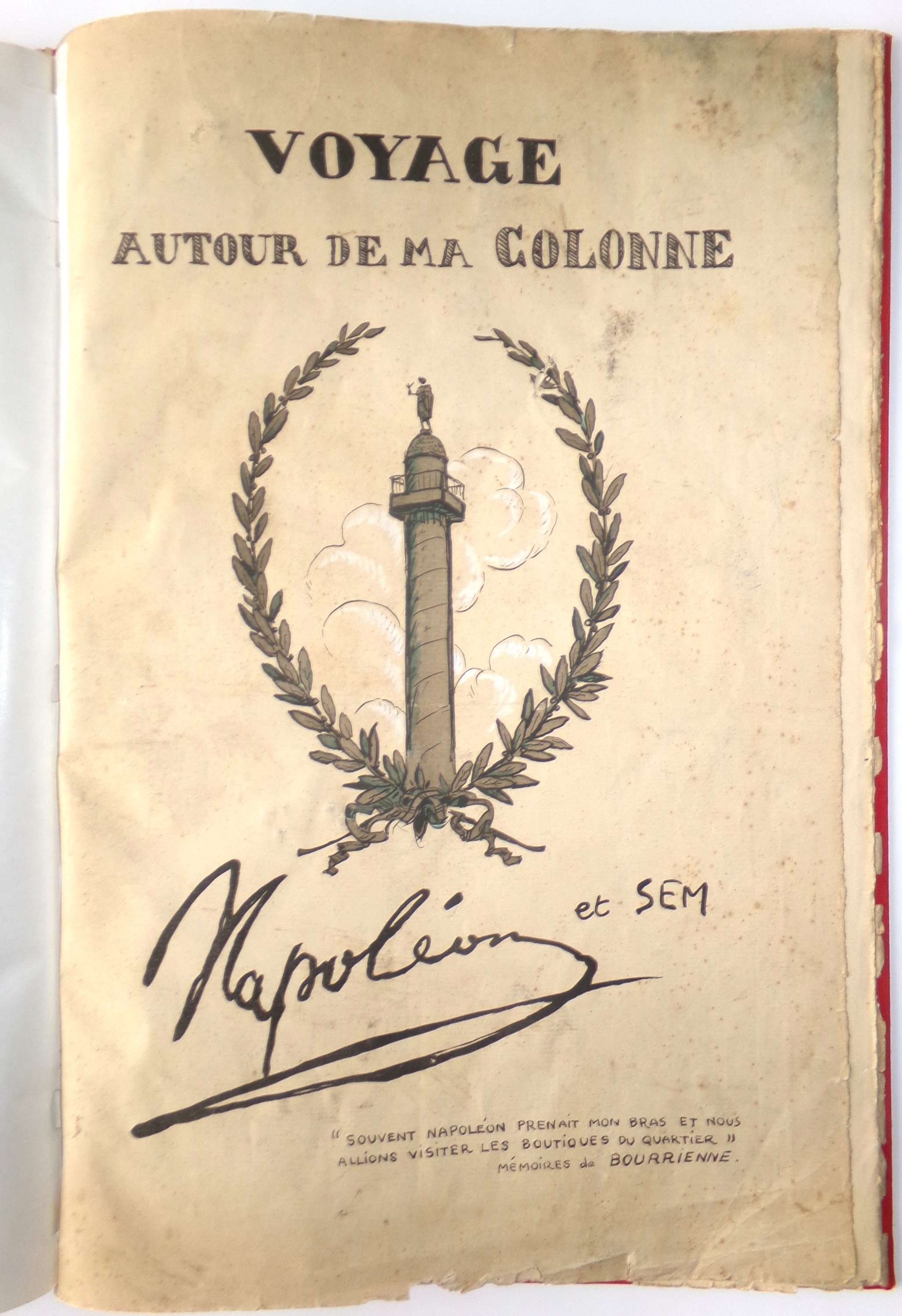 Célébrités contemporaines et la Bénédictine. Devambez, 1910. In-4 chemise cartonnée éditeur contenant 10 planches de dessins en couleurs des personnalités vantant la boisson La Bénédictine ; Voyage autour de ma colonne. [1924]. In-fol. rel. tardive (petits accdts) ;