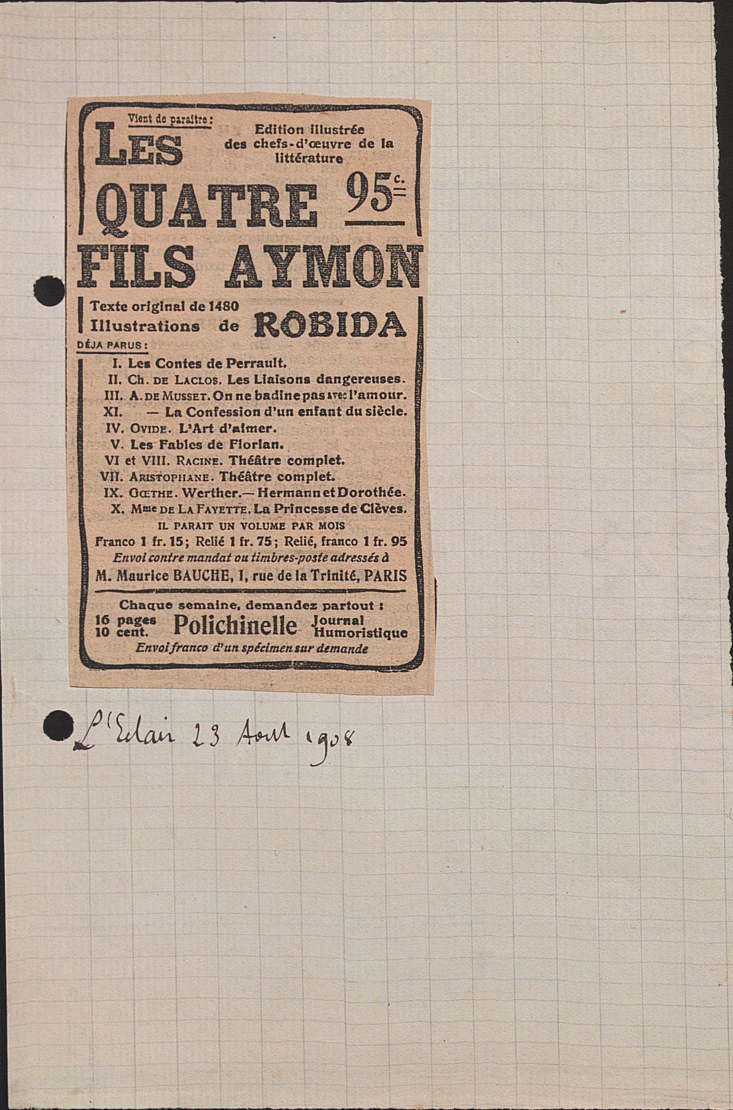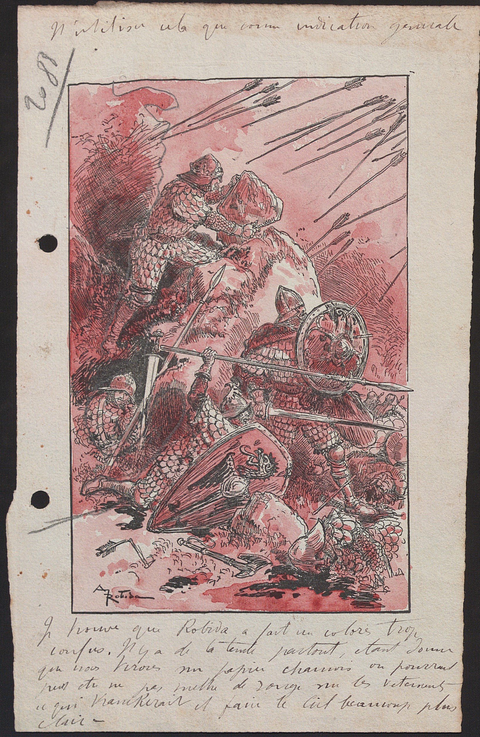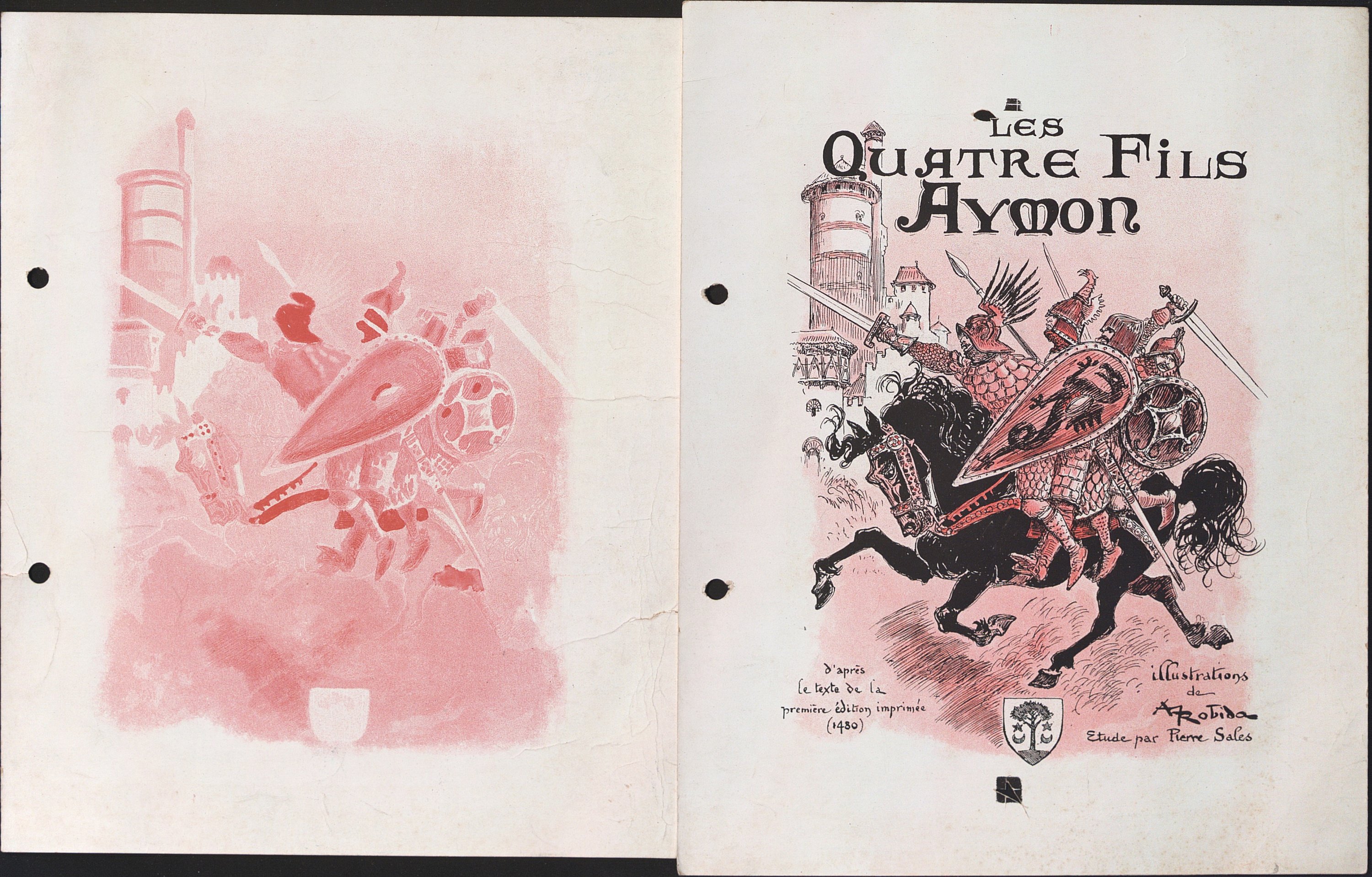 Maquettes pour l’édition illustrée Les Quatre fils Aymon, publiée en 1908, 22,5 x 14,5 cm et 27 x 22 cm.