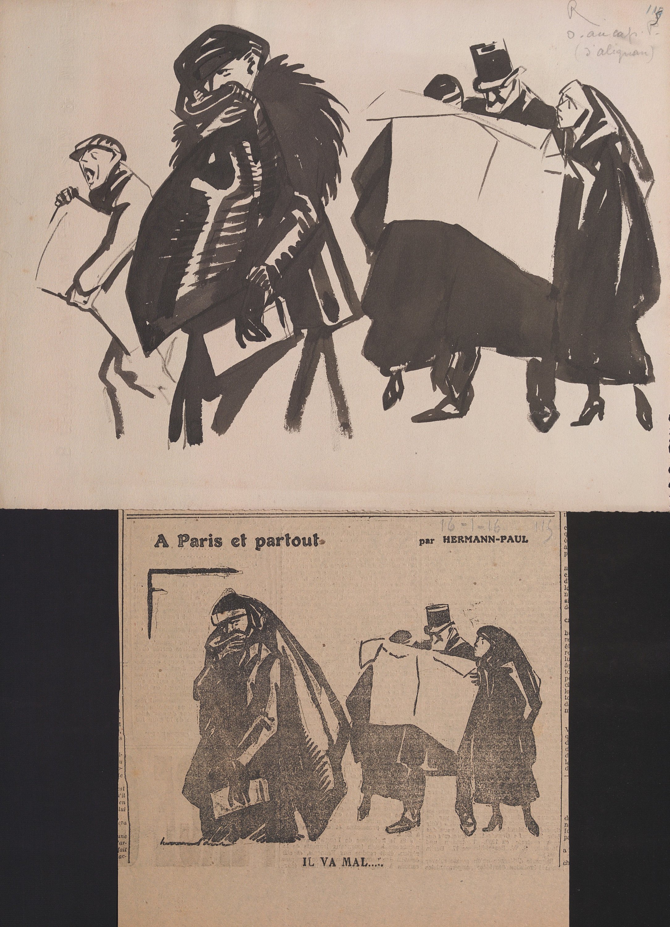 Il s’agit des dessins préparatoires ou maquettes abouties en vue de leur publication dans la presse dont le journal « La Victoire - quotidien révisionniste : organe de la république autoritaire et plébiscitaire » sous la direction de Gustave Hervé paru à partir du 1er janvier 1916.
