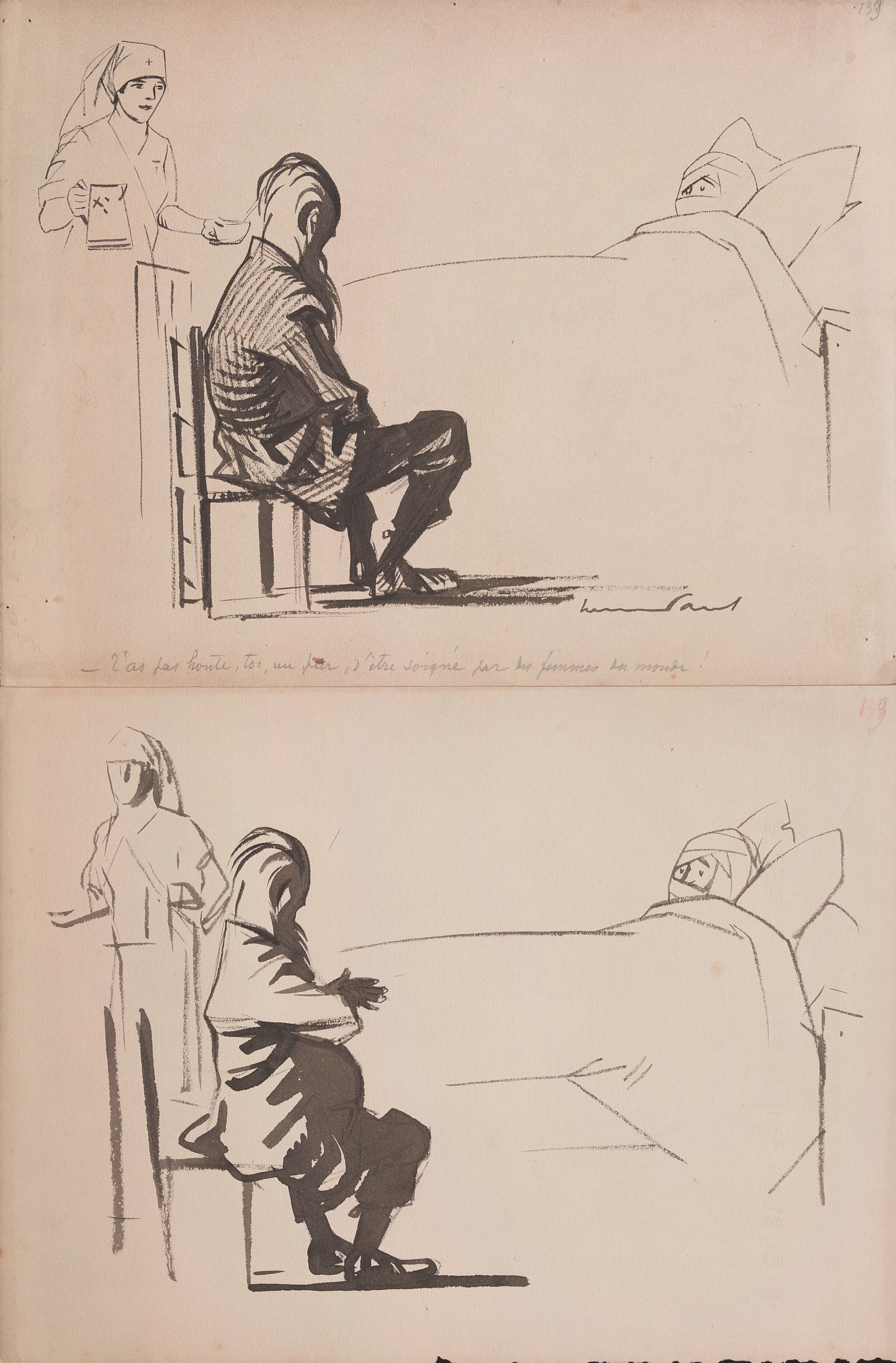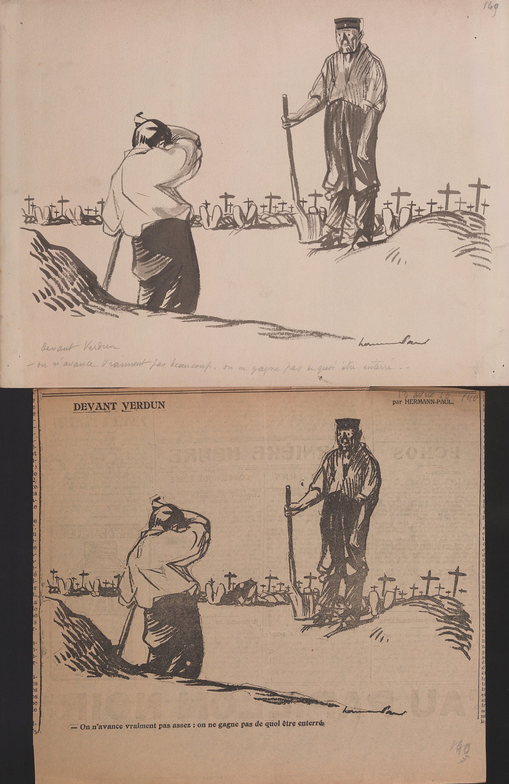 Il s’agit à la fois des ébauches, dessins préparatoires ou maquettes abouties en vue de leur publication dans la presse dont le journal « La Victoire - quotidien révisionniste : organe de la république autoritaire et plébiscitaire » sous la direction de Gustave Hervé paru à partir du 1er janvier 1916.