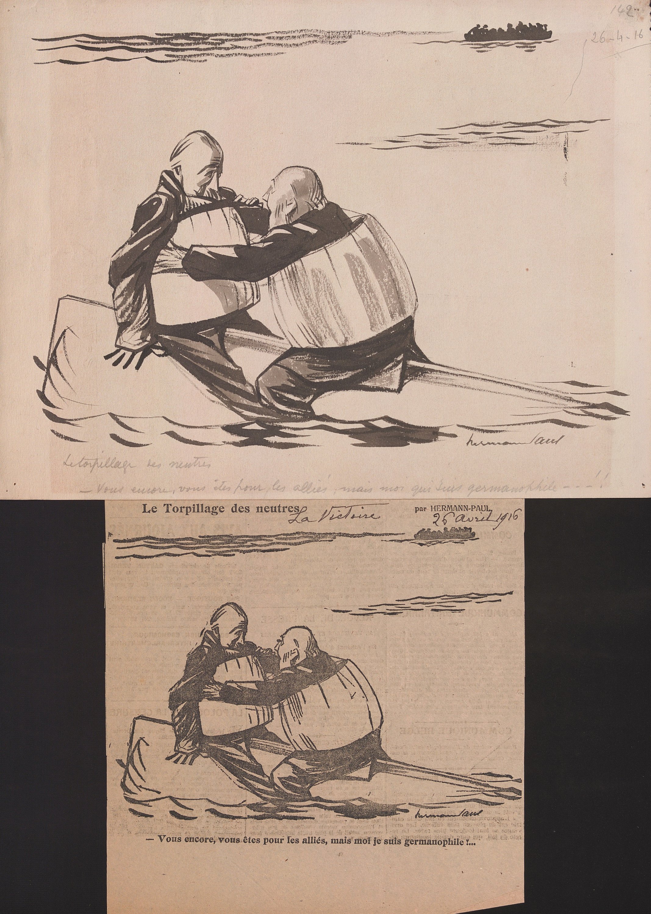 Avril 1916 : « La guerre sous-marine » 2 pl. (2 avril 1916) ; « Pacifisme » 3 pl. (6 avr.) ; « Et la lutte de classes » 2 pl. (10 avr.) ; « Devant Verdun » 3 pl. (13 avr.) ; « Le torpillage des neutres » 2 pl. (26 avr.) ; En Amérique 3 pl. (27 avr.) ; « A Dublin » 2 pl. (30 avr.).