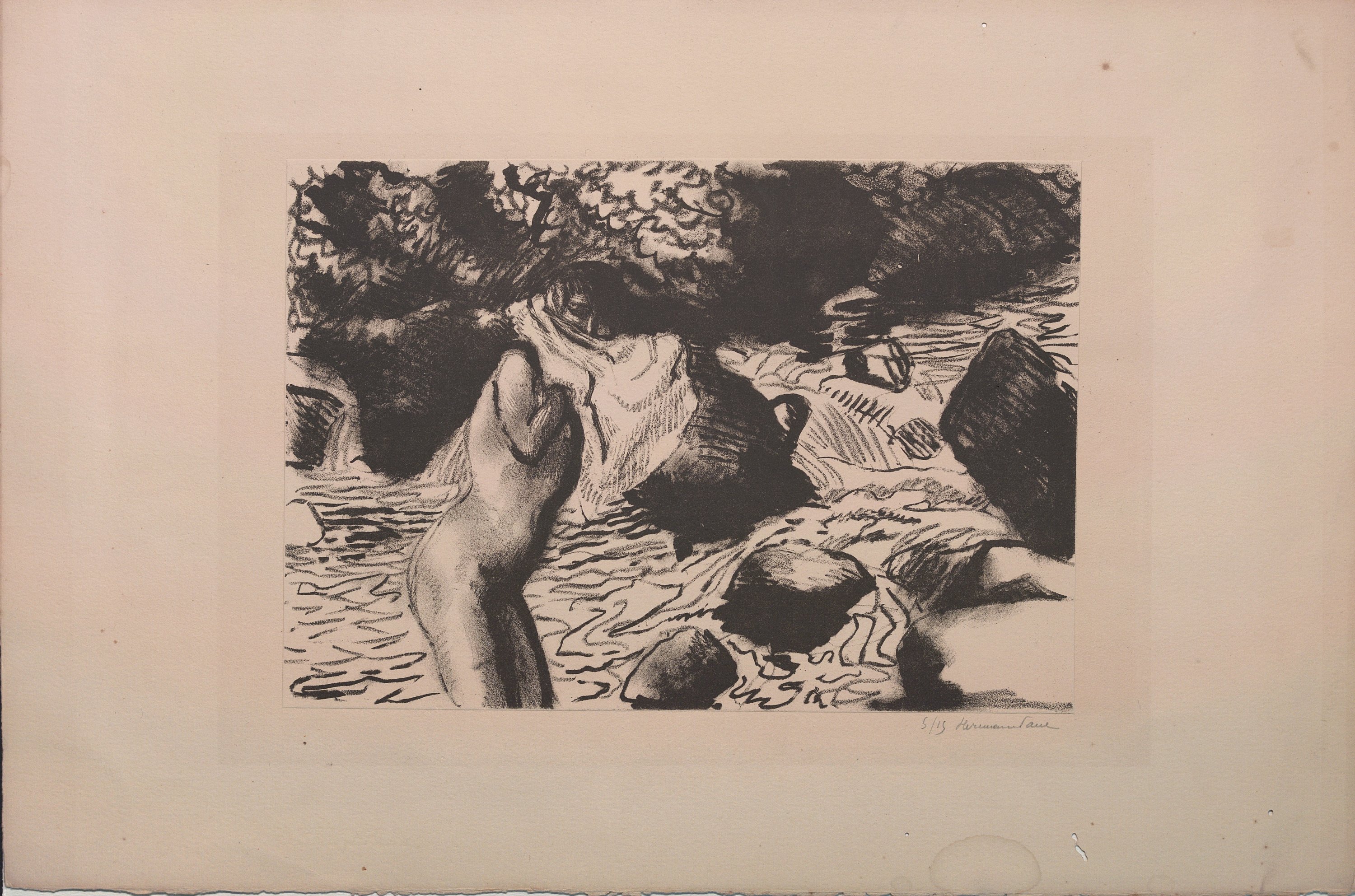Baigneuse, lithographie originale numérotée 5/15 et signée en bas à droite, contrecollée sur papier épais, 29 x 20 cm.