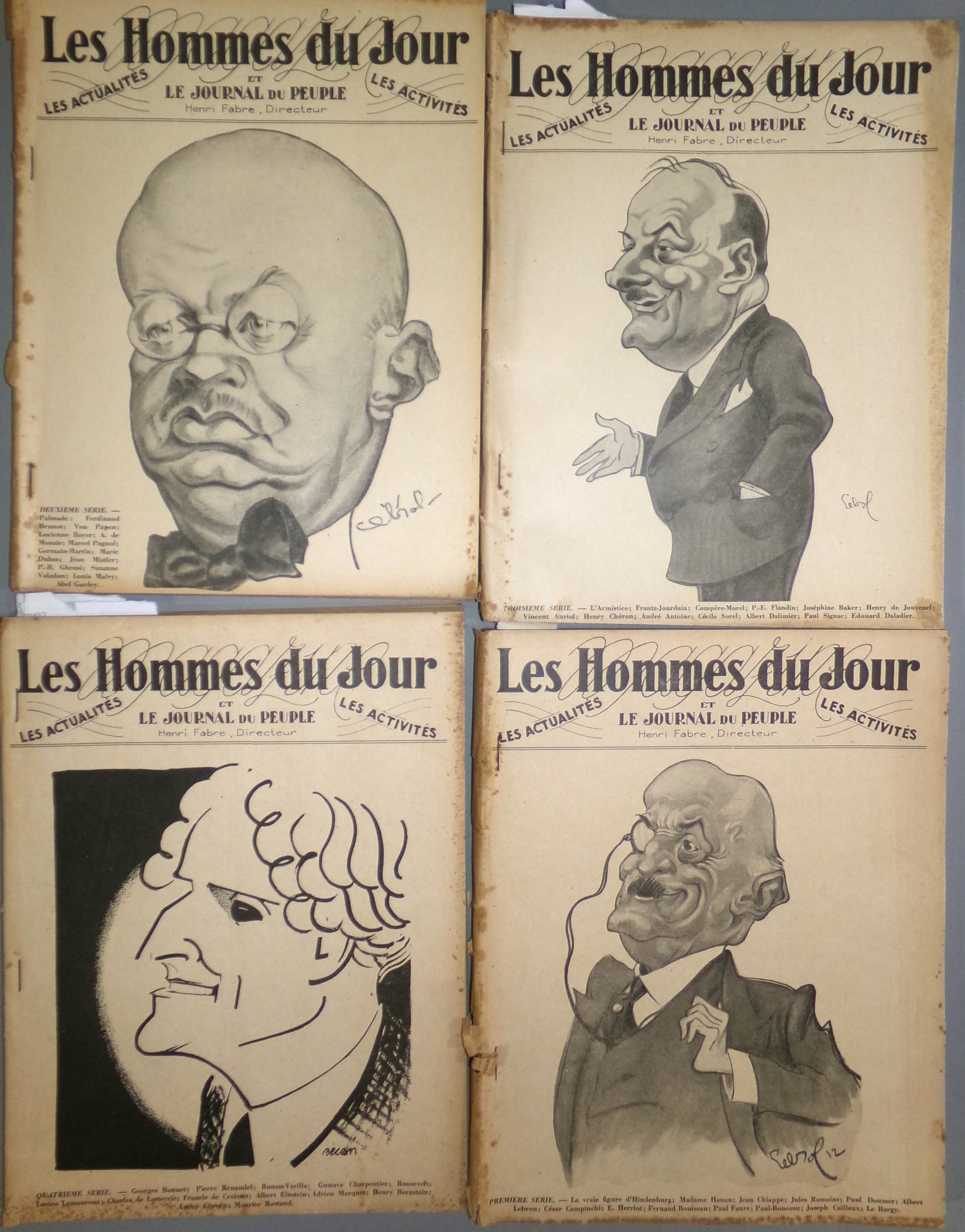 Portraits d’Hindenburg, Edouard Herriot, Paul Faure, Maurice Rostand, Albert Einstein, Franklin Rossevelt, Edouard Daladier, Vincent Auriol, Joséphine Baker, etc.