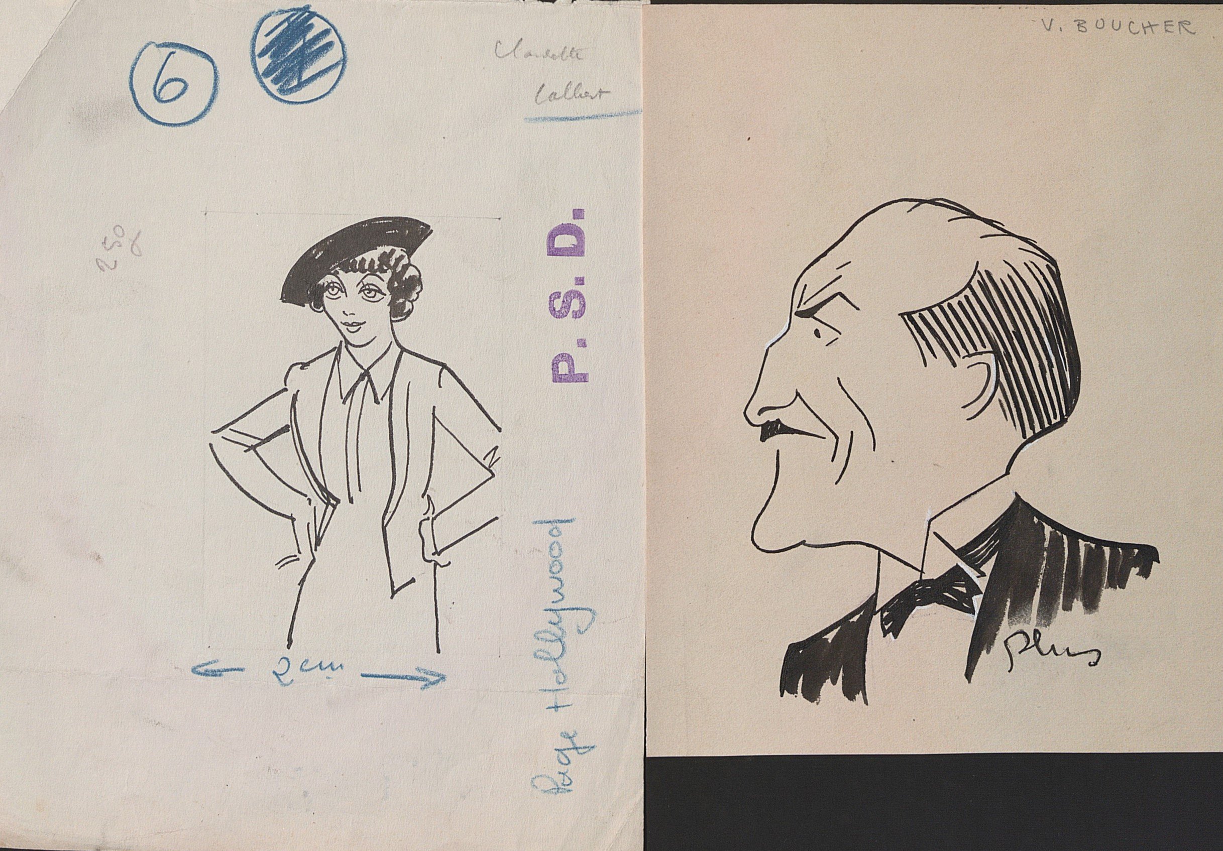 Portraits de Max Dearly, Dranem, Suzanne Dantès, Valentine Tessier dans le rôle de Célimène au théâtre du Vieux Colombier en 1924, Henri Varna au Casino de Paris, Victor Boucher, Alfred Adam dans La Fugue de caroline (1945), Françoise Rosay, Marcel Dalio par Henri-Paul Gassier, Jean Mercanton par Jean-Dominique Van Caulaert, Maurice Chevalier et Yvonne Vallée ; etc.