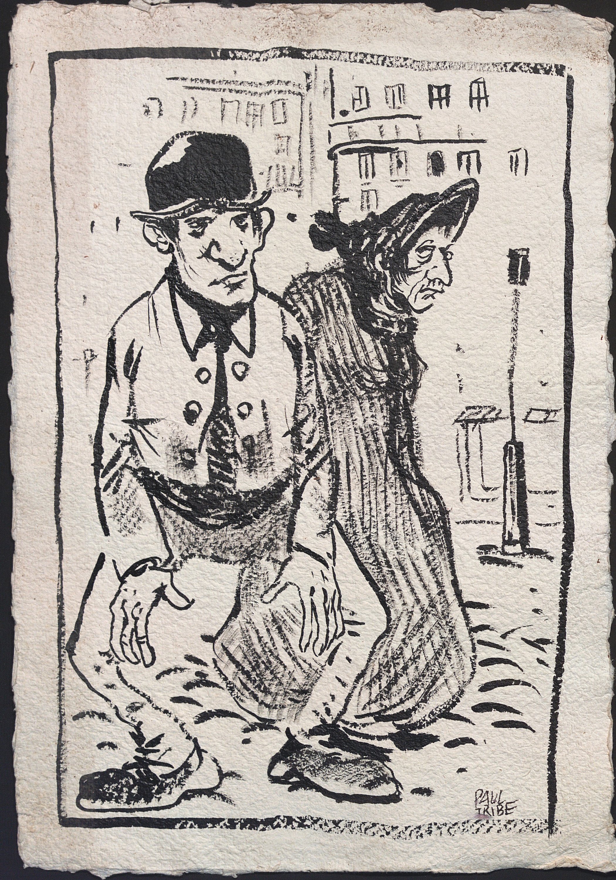 Personnage au cartable, signé en bas à gauche, 30 x 21,5 cm.