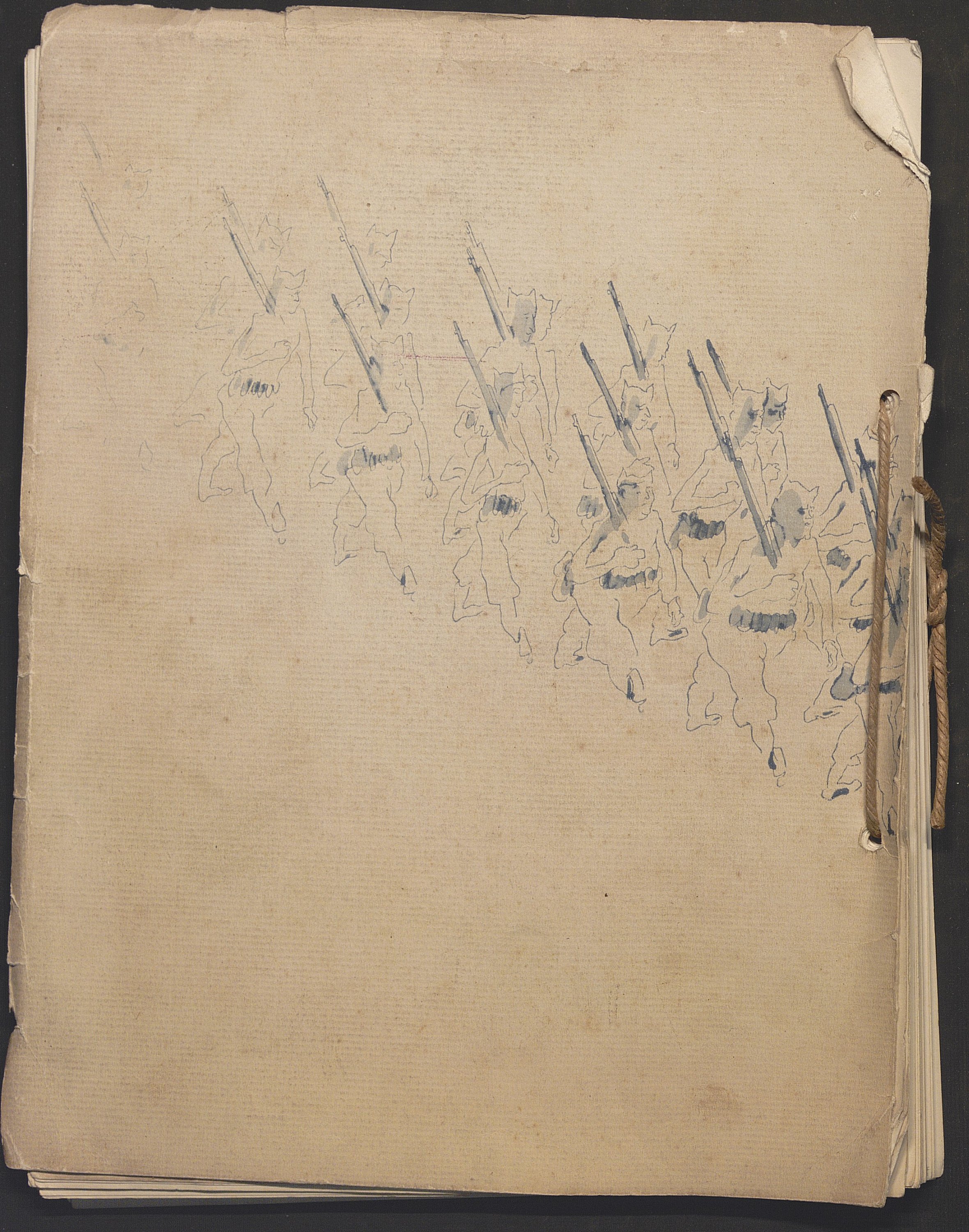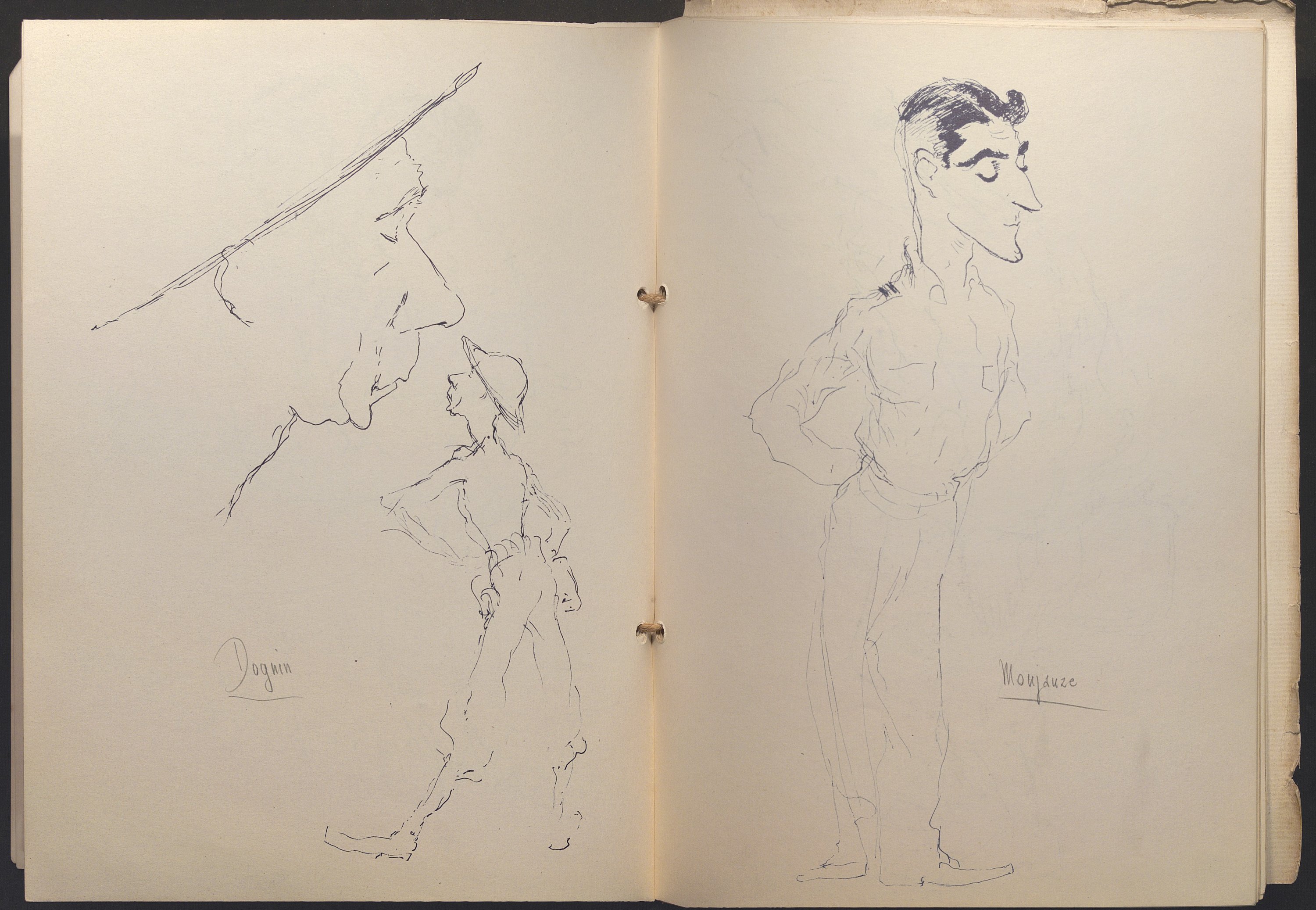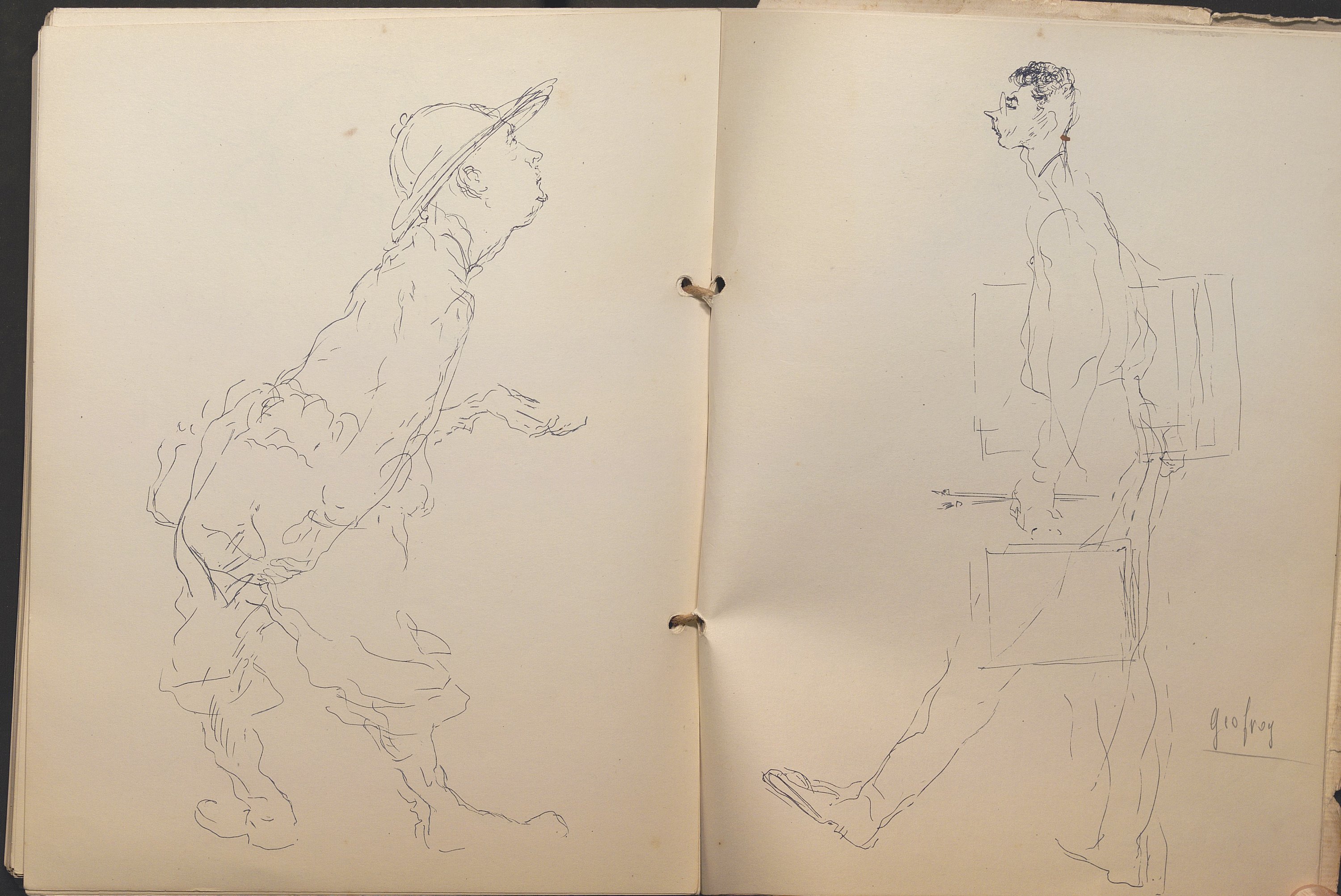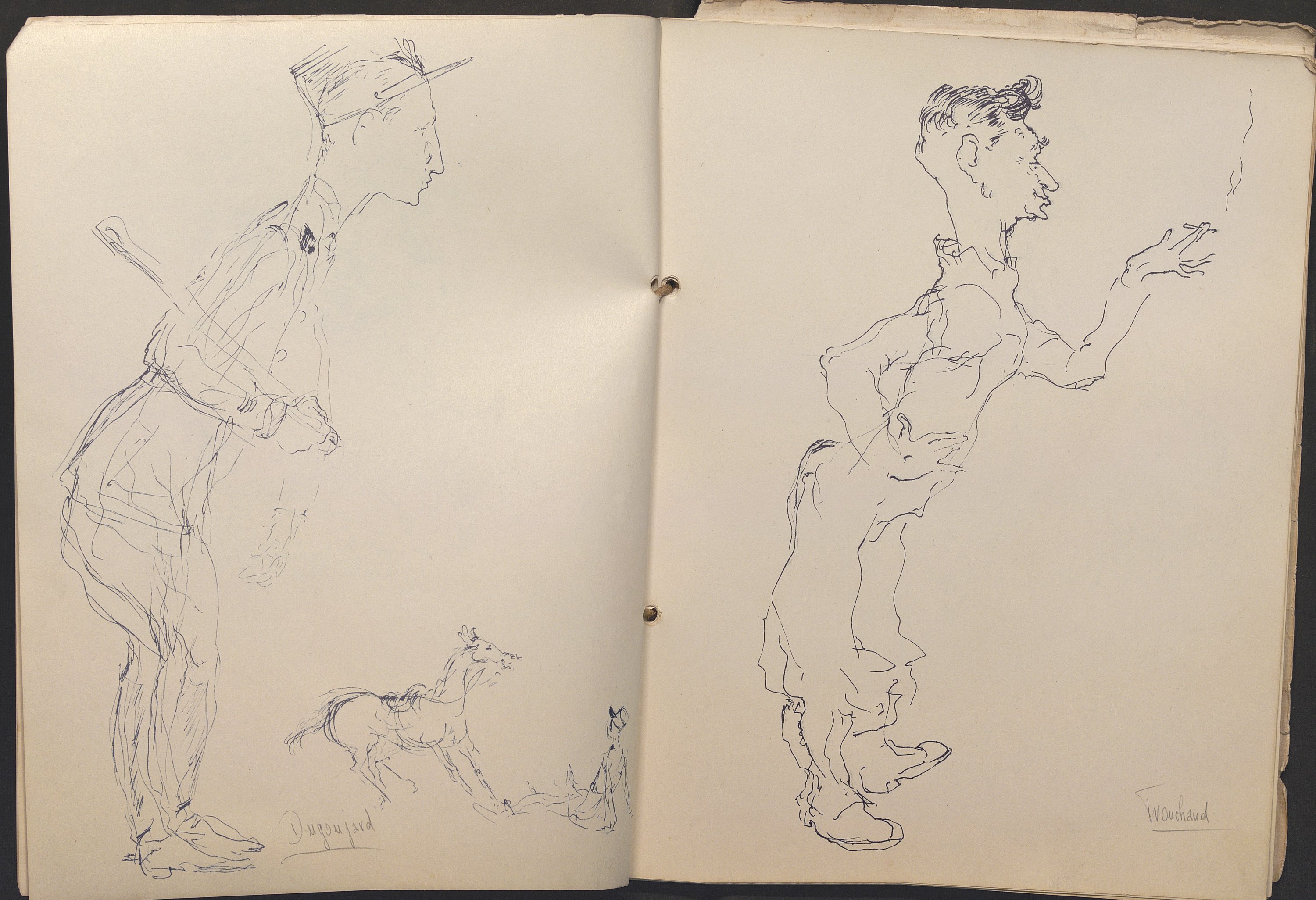 Joint : cahier 86 pp. in-4, portaits dessinés à l’encre d’officiers et de soldats, en majorité identifiés par le nom de famille ajouté au crayon, années 1930-1940 : Dugoujard, d’Escayrac, Claude d’Aumale, Caminade, Miranval, Dreyfus, etc. Régiment à identifier.
