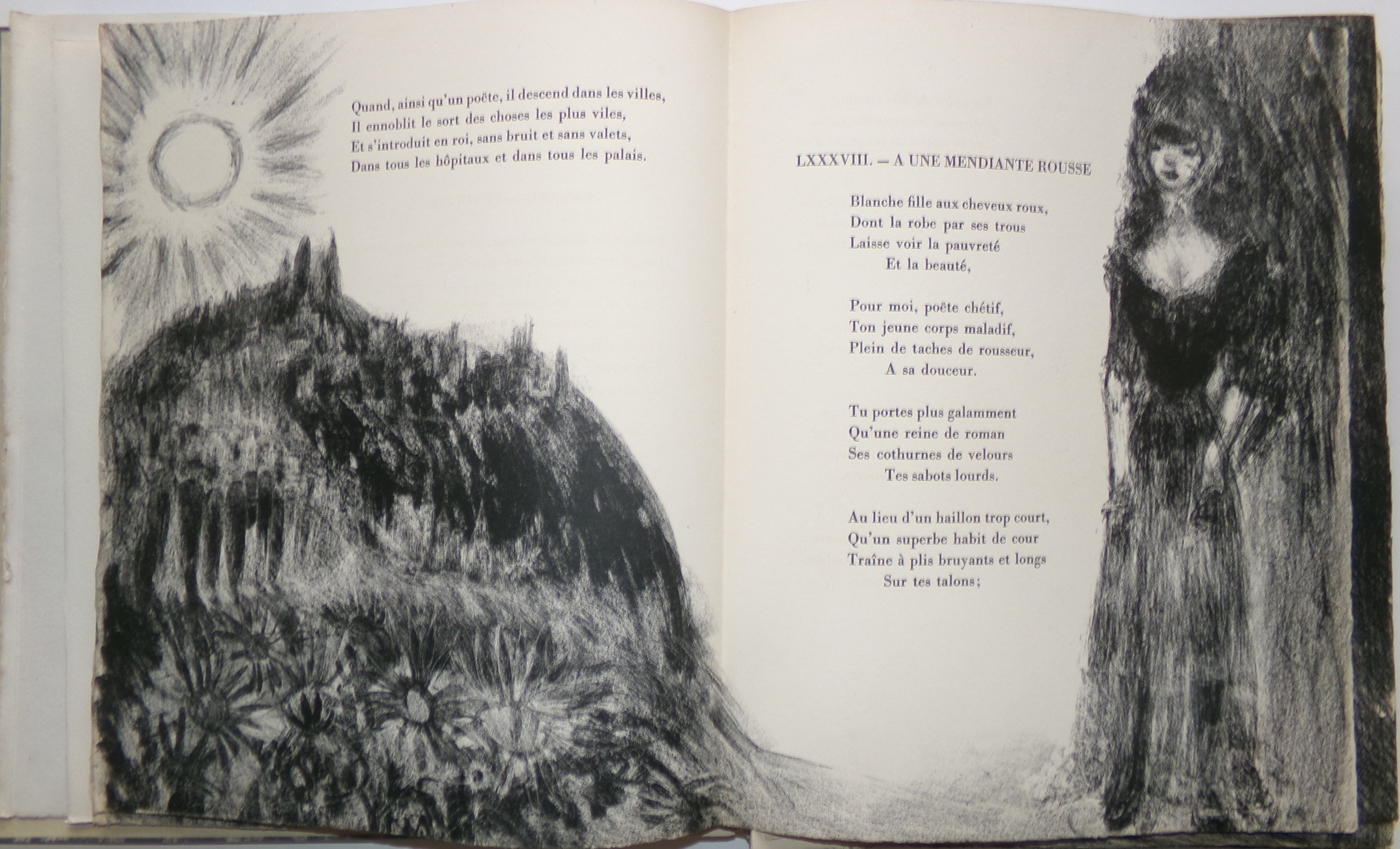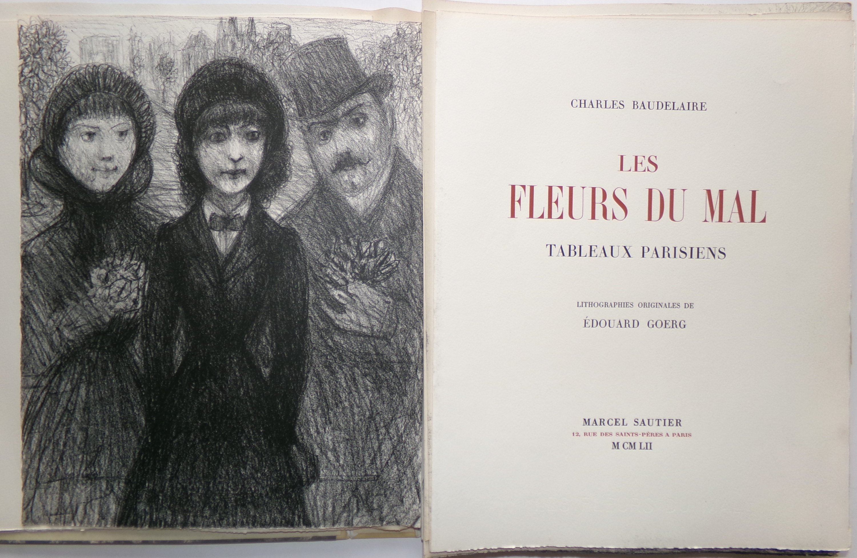 Edouard Georg et Charles Baudelaire, Les Fleurs du Mal. Tableaux parisiens. Paris, Marcel Sautier, 1952. Grand in-4 en ff., couv. illustrée, sous chemise et étui. Lithographies en noir (planches, vignettes, couvertures) ;