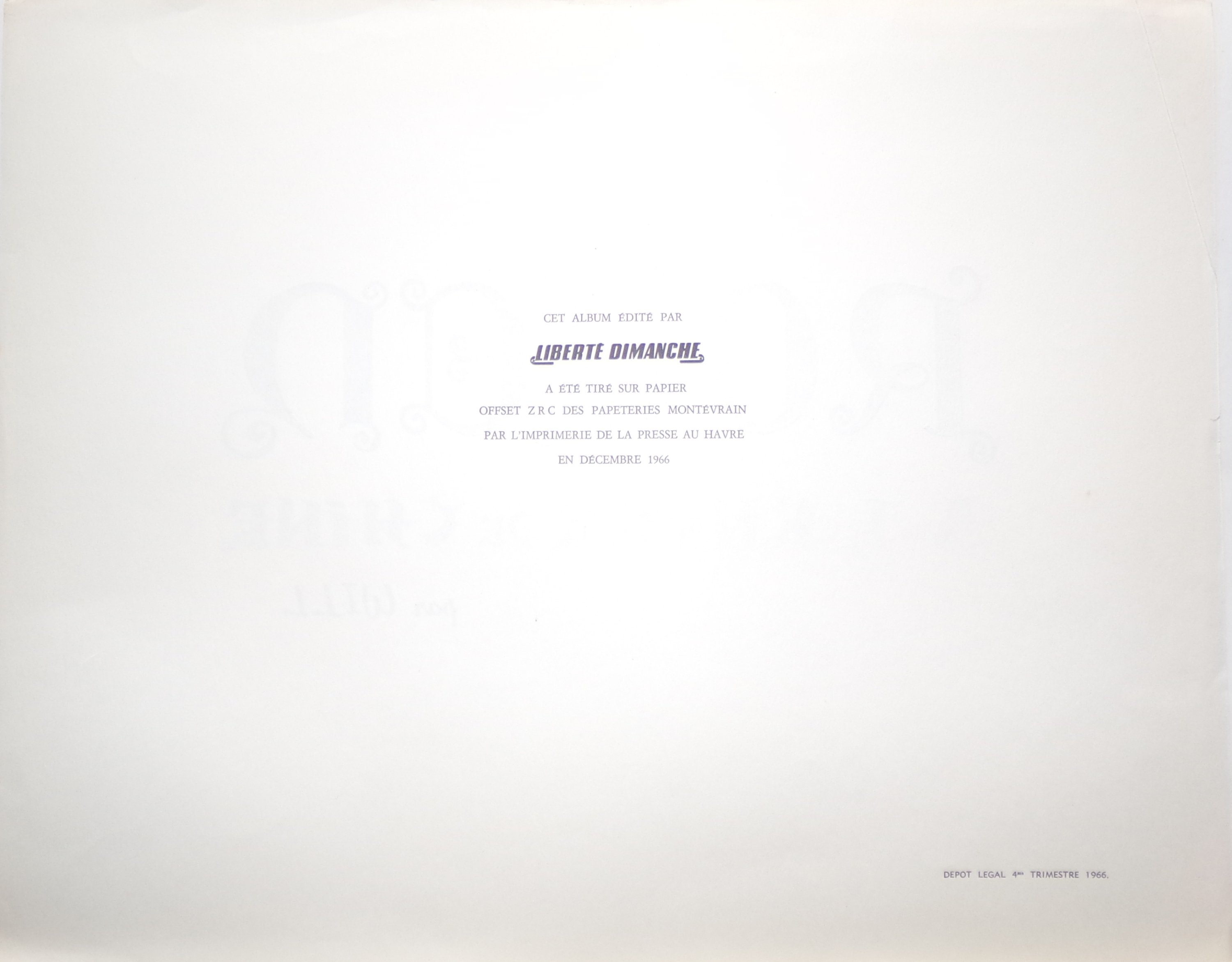 Will, Rouen à l’encre de Chine. Rouen, Liberté Dimanche, 1966. Album à l'italienne en feuilles, portefeuille à rabat en papier fort (en l’état) Portraits à charge de personnalités rouennaises sur papier orange avec encadrement blanc.