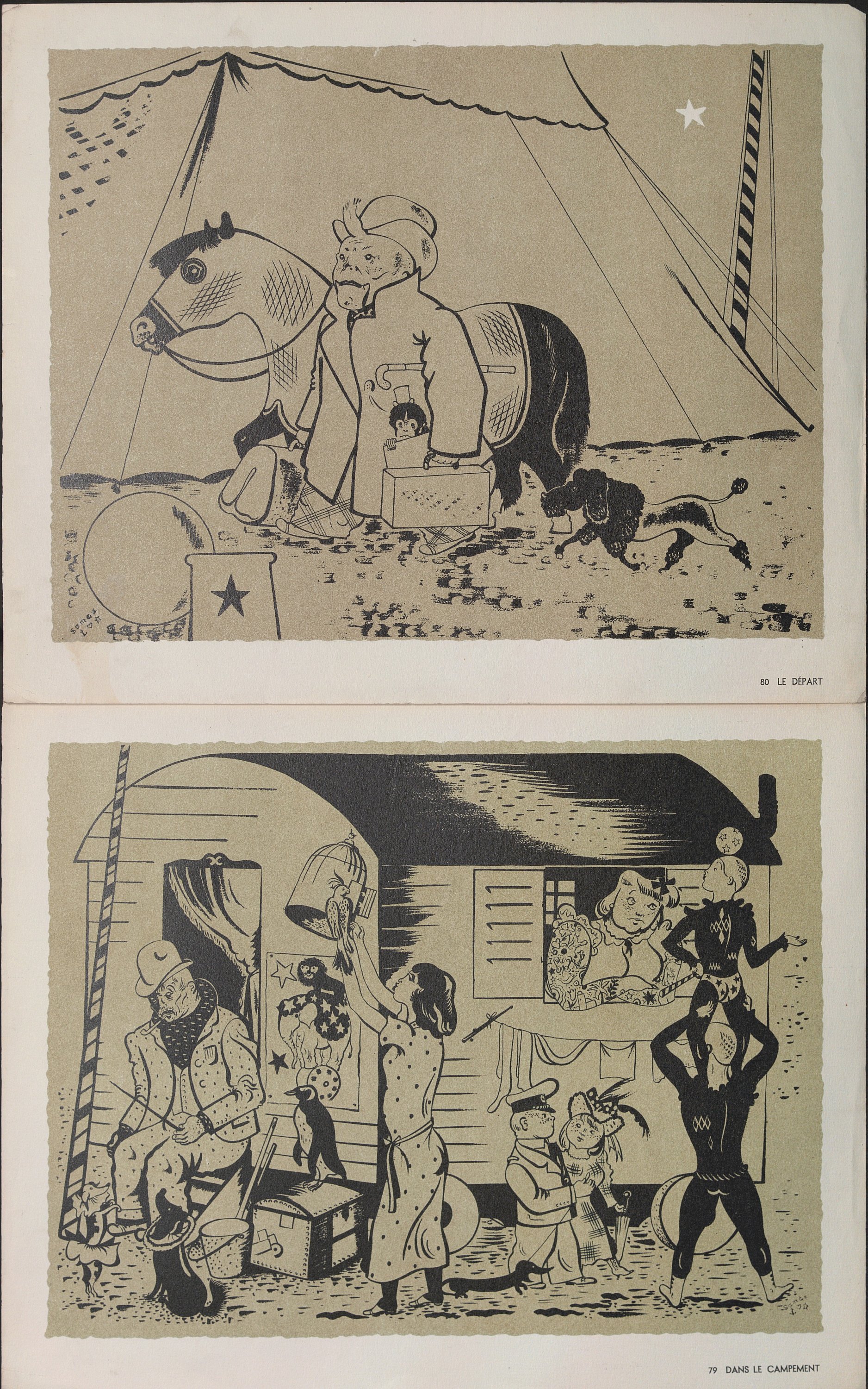 Panorama du Cirque. Paris, Arc-en-Ciel, 1945. In-4 oblong en feuillet, sous emboitage illustré de l’éditeur (en l’état, emboitage cassé).
