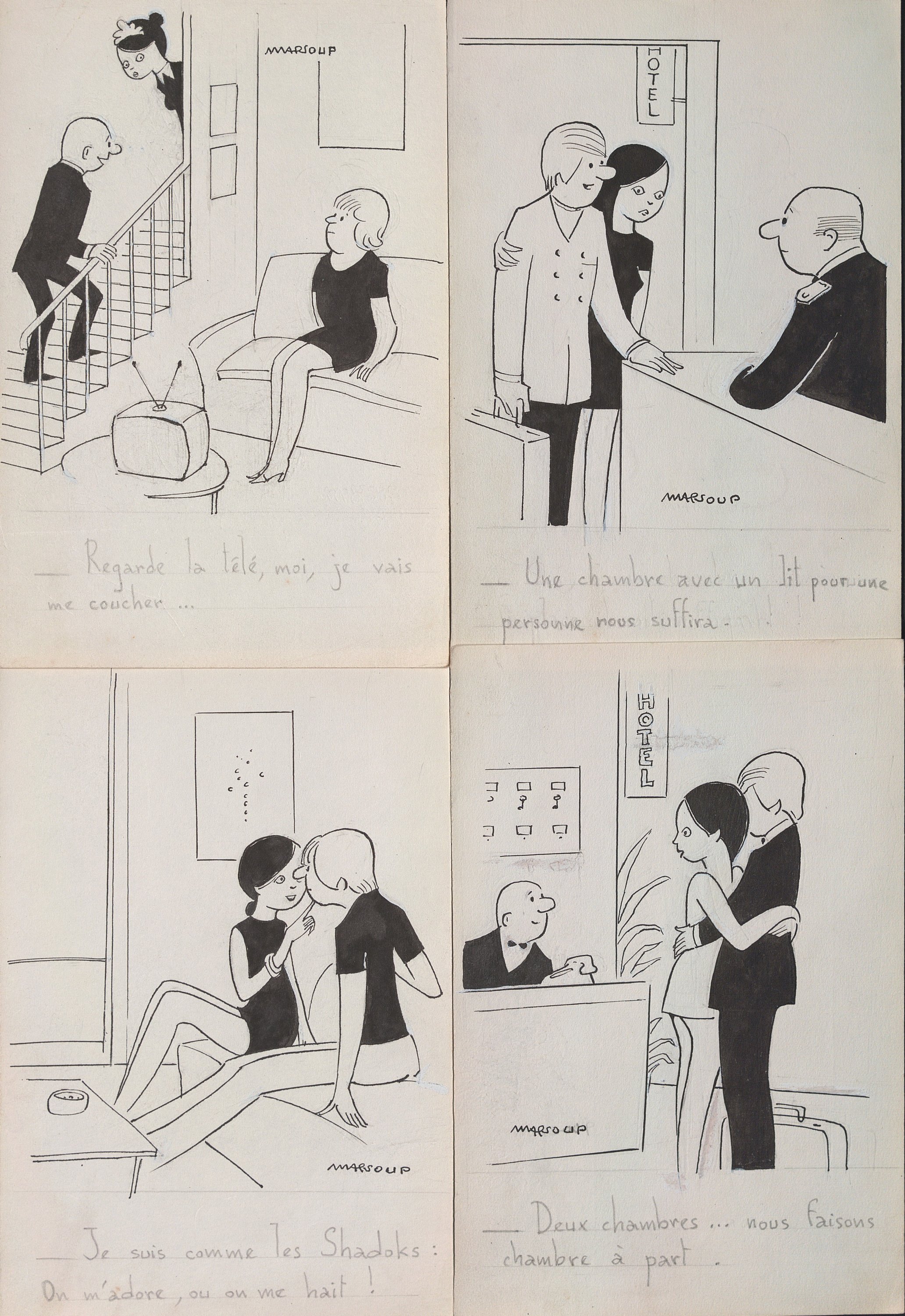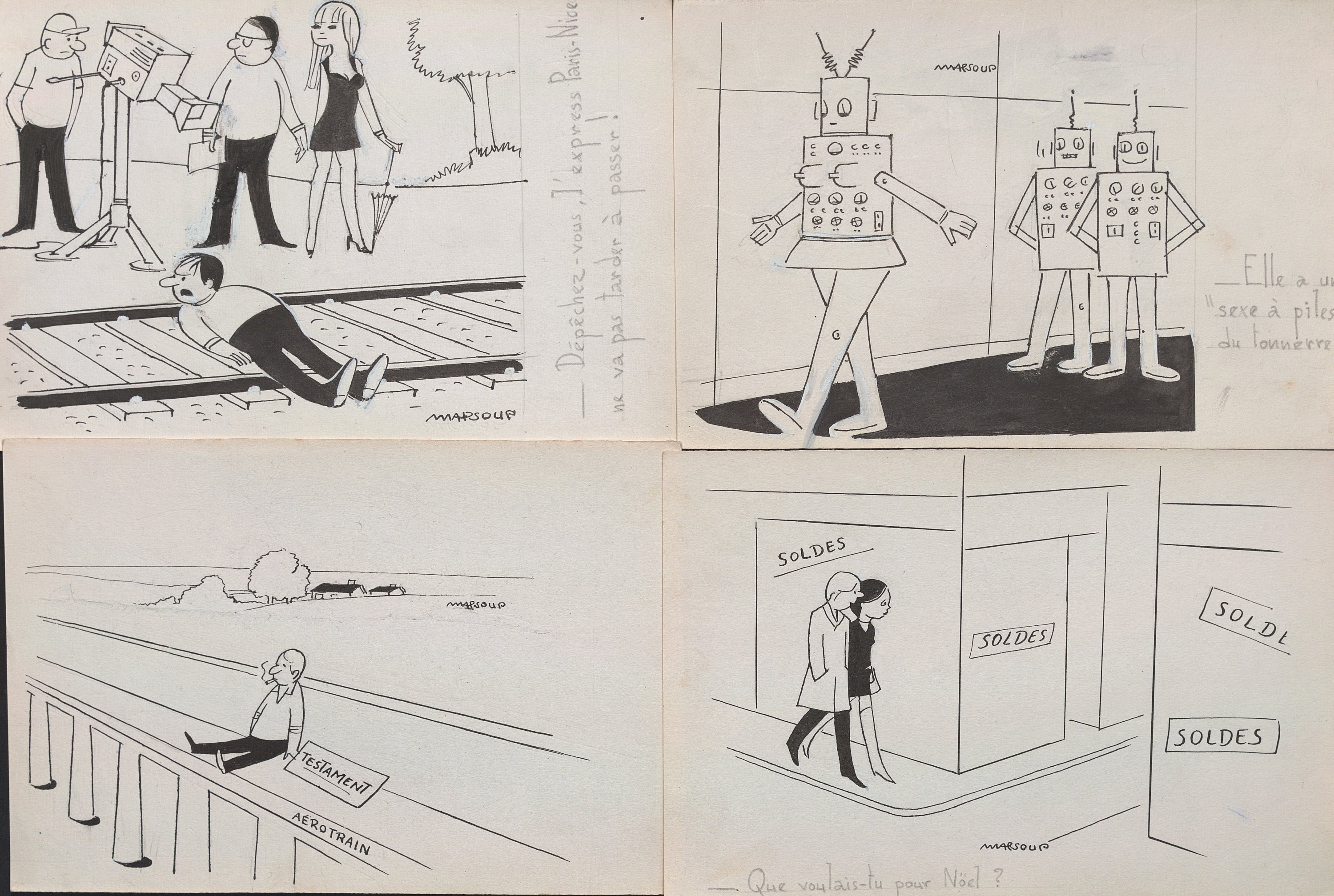 Signés, légendés au crayon bois et portant le tampon « M. Jean-Claude Marcireau dit Marsoup, dessinateur »