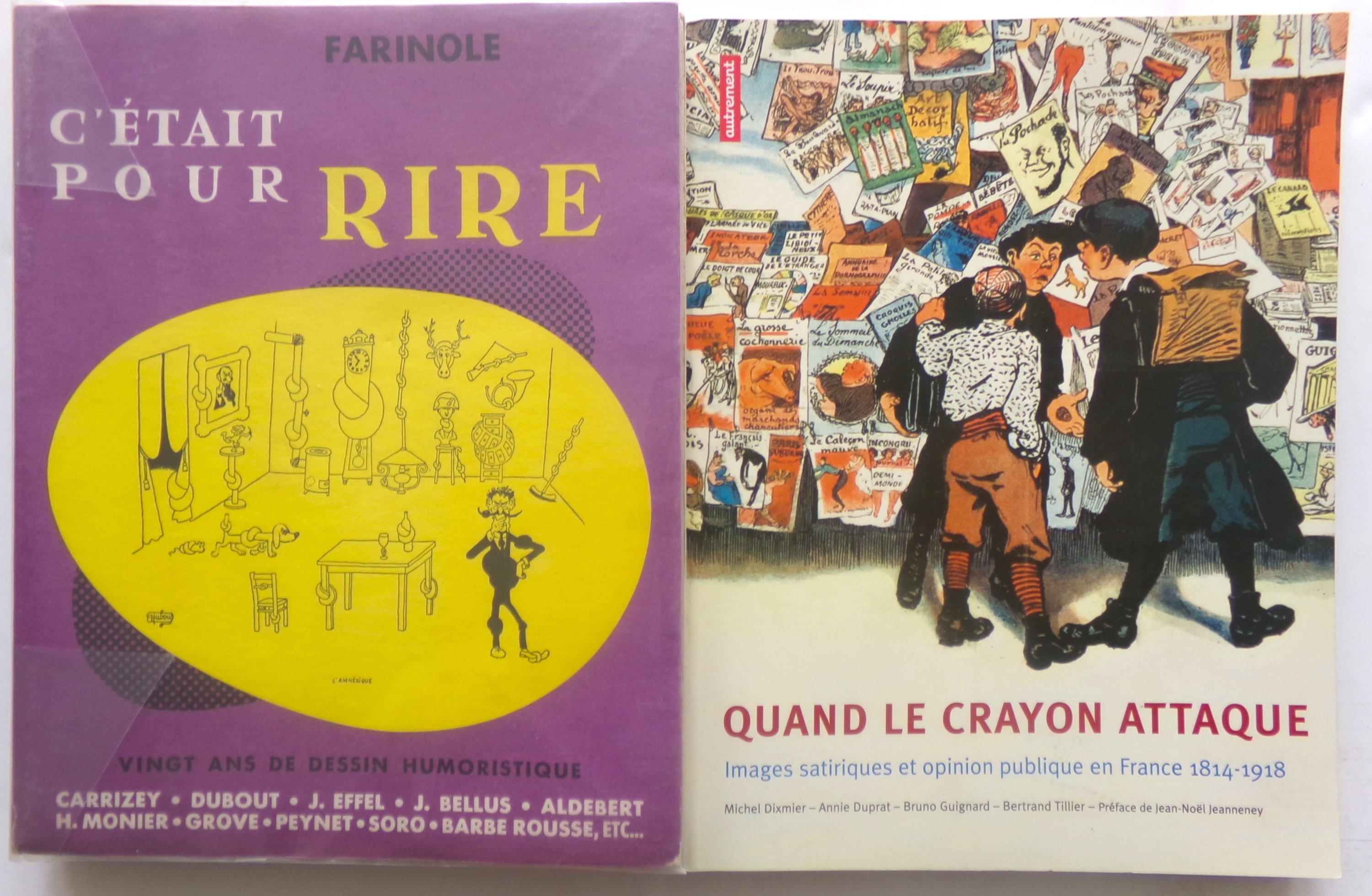 Farinole, C'était pour Rire, vingt ans de dessin humoristique. Vingt ans d'humour et de vie parisienne avec les dessinateurs humoristes. Paris, Editions Jacques Vautrain, 1953. Fort in-8 broch., 235 pp. ill. par Carizey, Dubout, Effel, Bellus, Aldebert, Monier, Grove, Peynet, Soro, etc. n°1251/5000 ex. ;