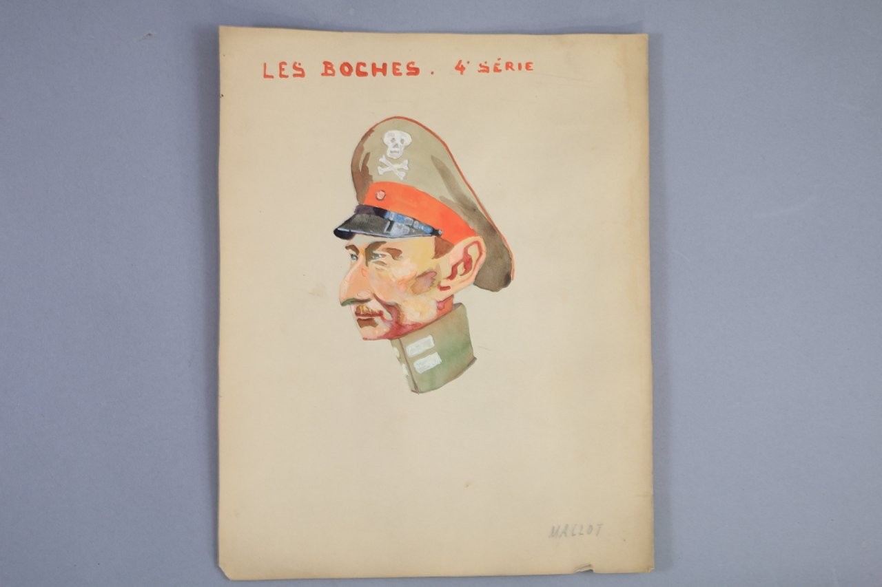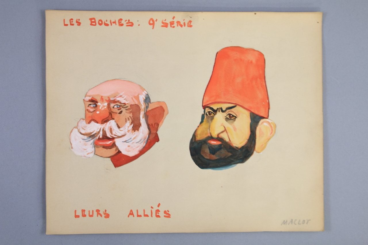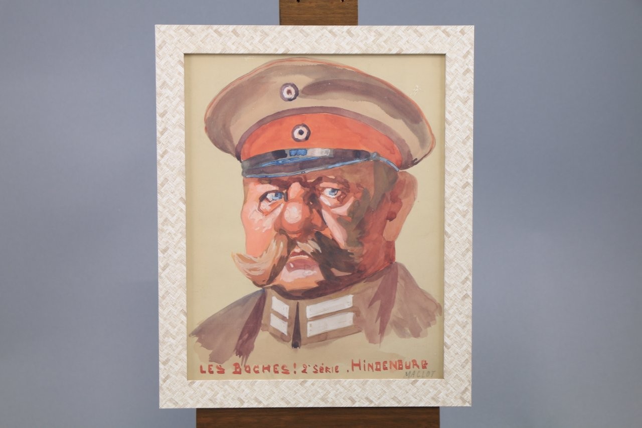 14 portraits aquarellés et gouachés sur papier, légendés dont Hindenburg, Louis de Bavière, Zeppelin, Ludendorf, etc.