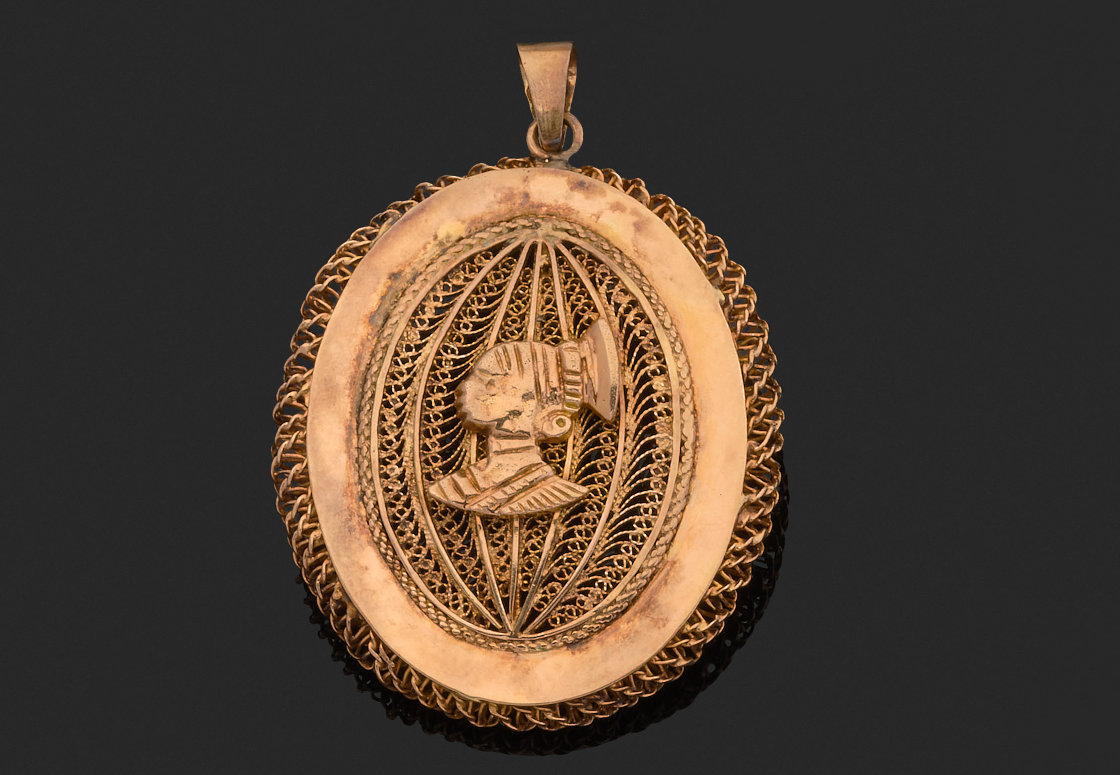 - un pendentif de forme ovale. Haut. 6,5 cm.
