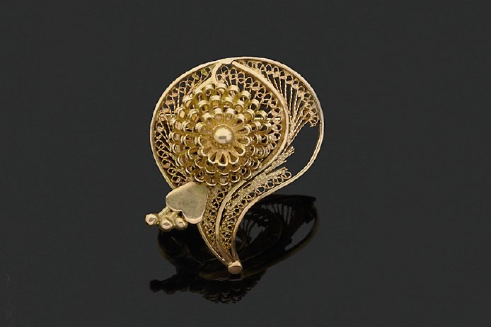 Or jaune 585 millièmes gravé et à décor filigrané comprenant :