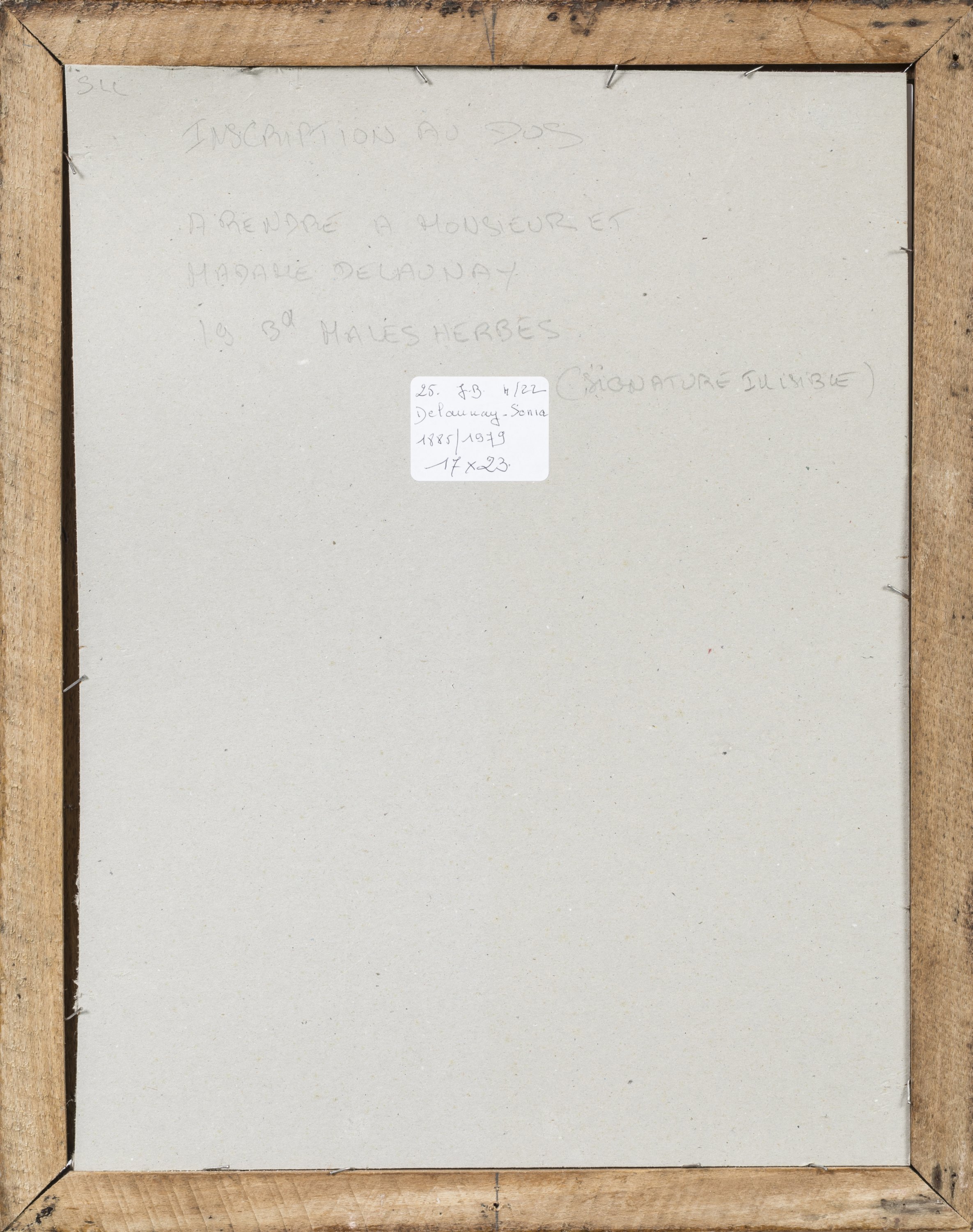 Signée au crayon en bas à droite. Au revers "SLL" "A rendre à Monsieur et / Madame Delaunay / 19 boulevard Malesherbes / Paris", "classeur 102".