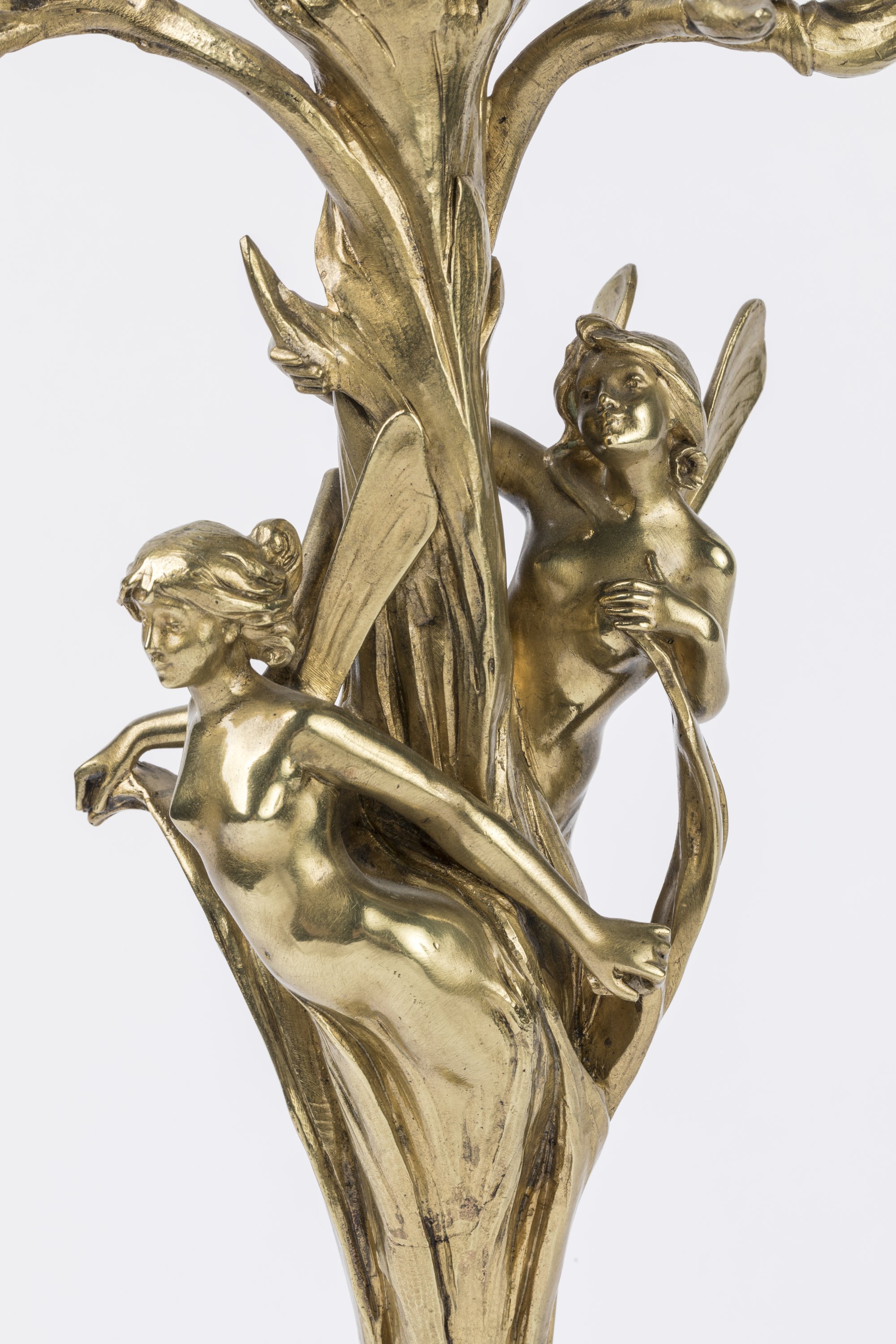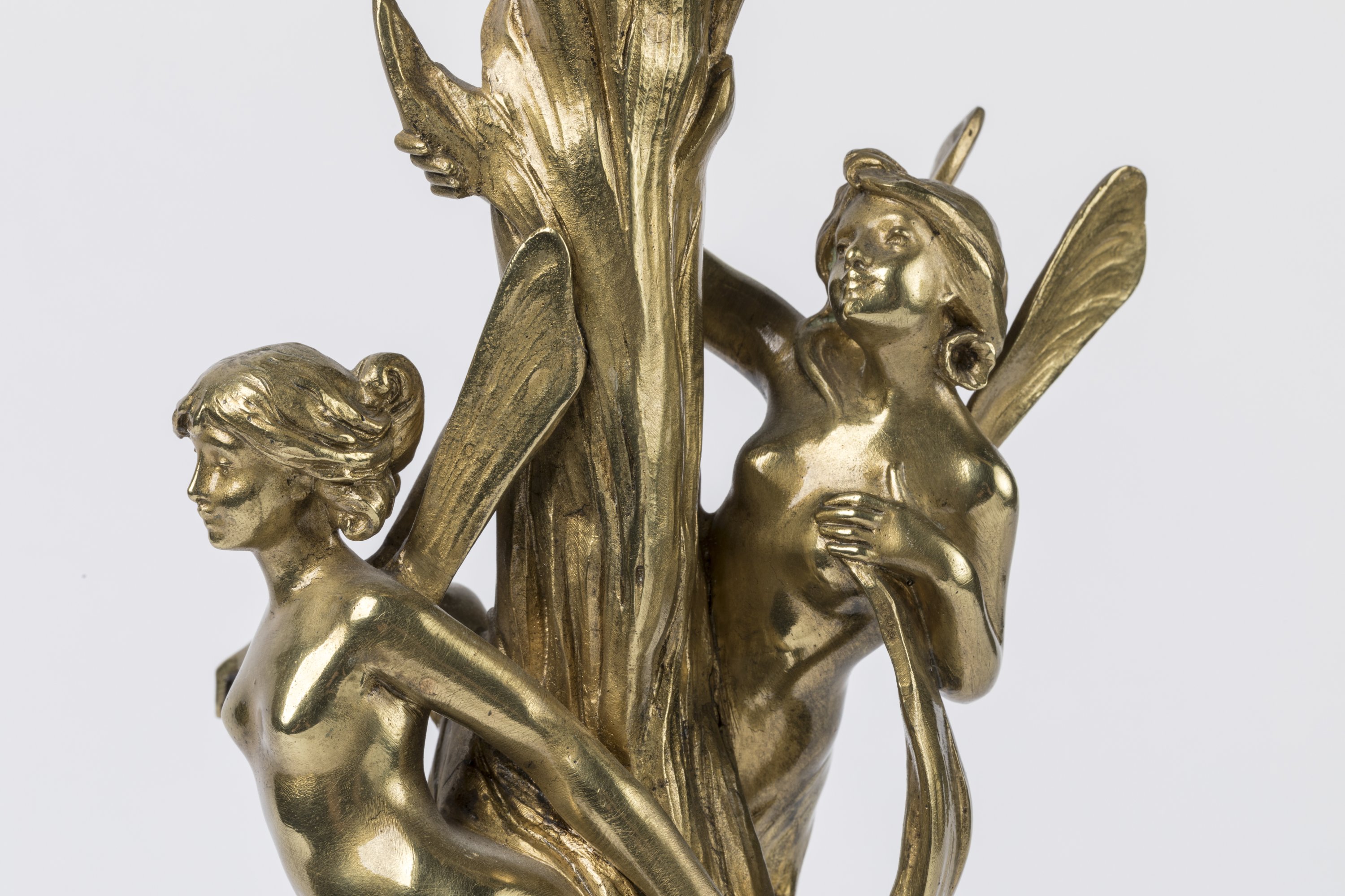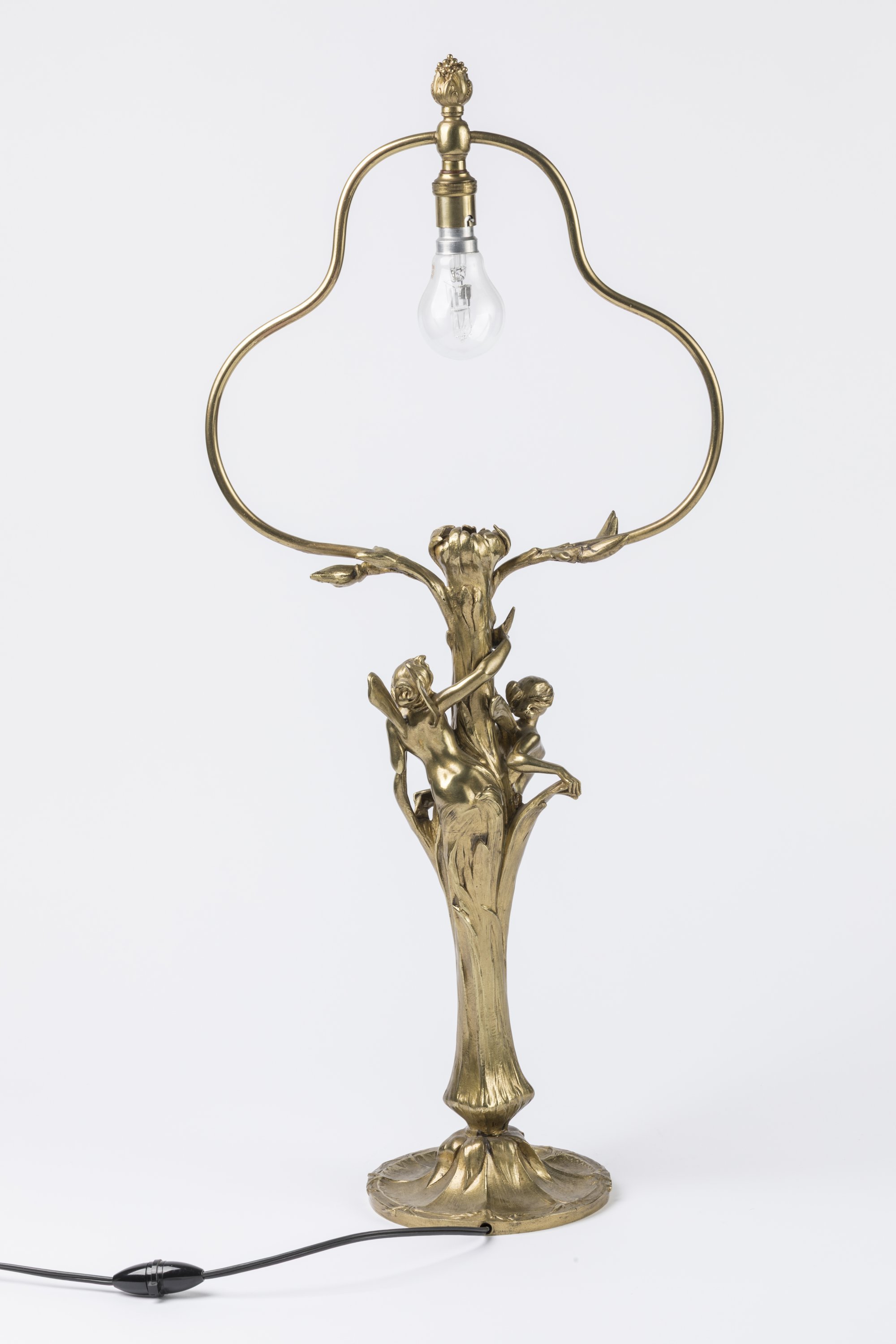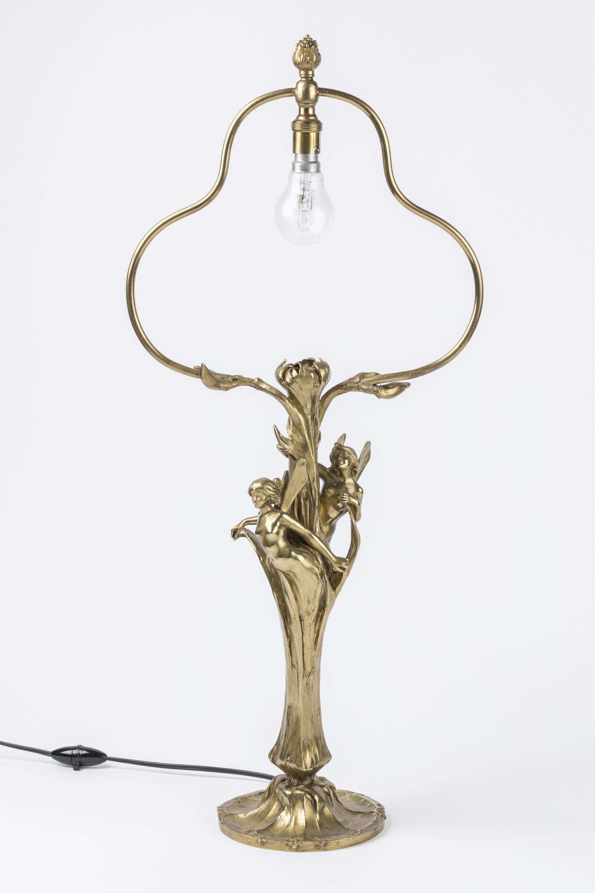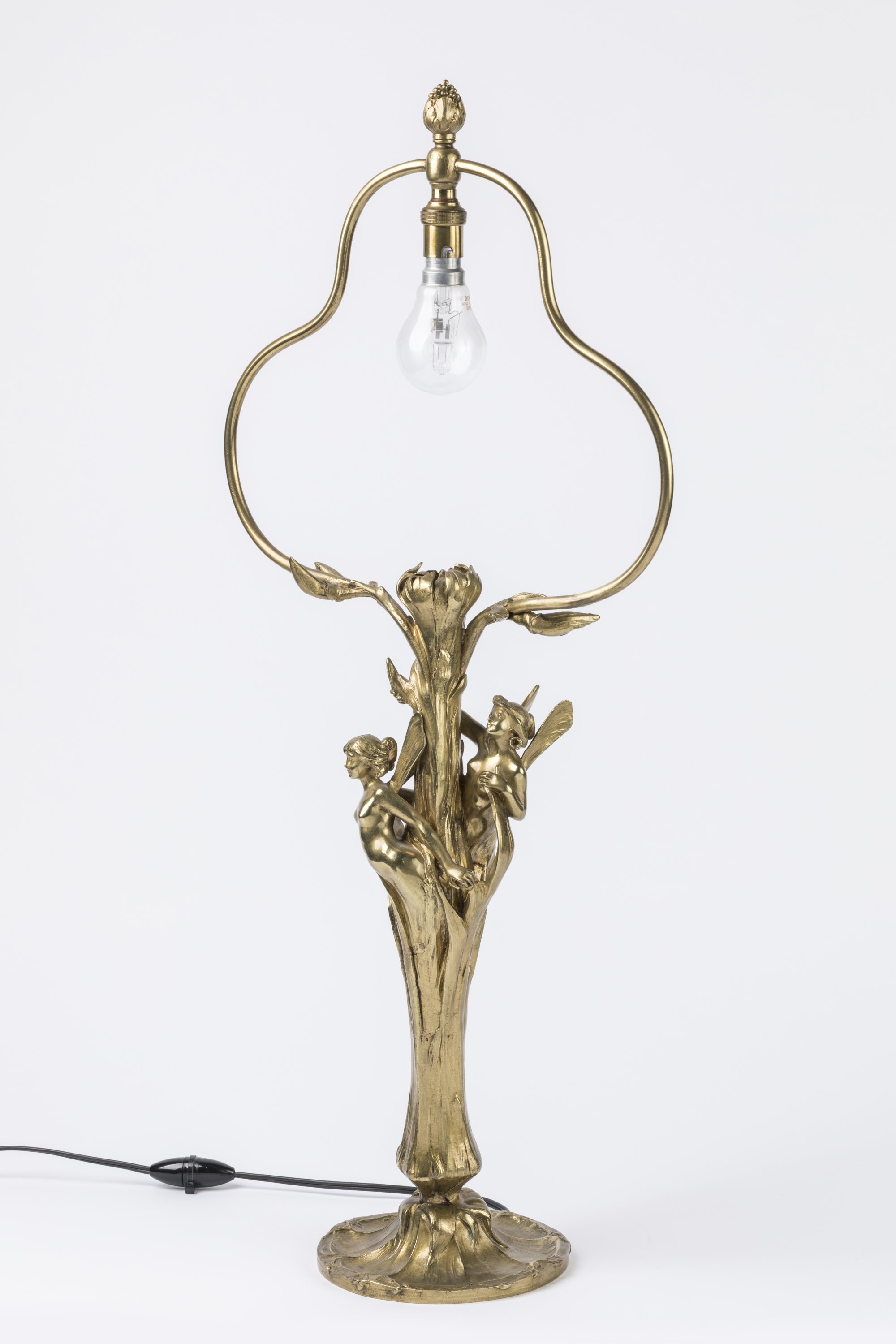 A fairy-decorated gilted bronze lamp. Art Nouveau Period.