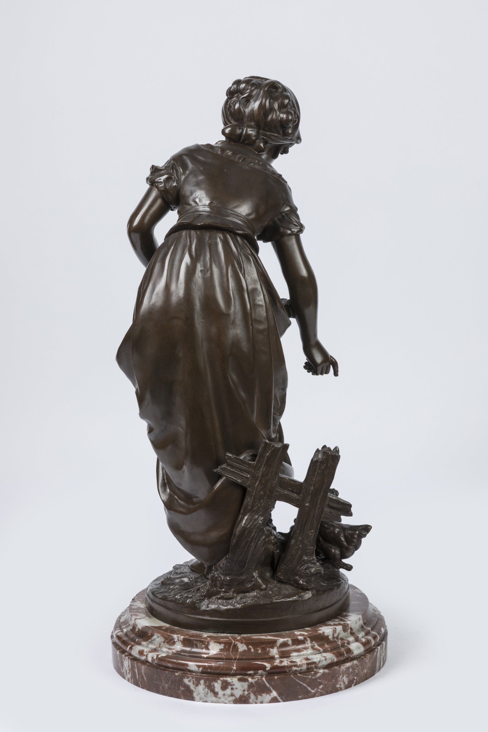 Sur un socle en marbre rouge avec un cartouche en cuivre "Fermière / par Aug. Moreau / Médaillé au Salon". Haut. totale 67 cm.