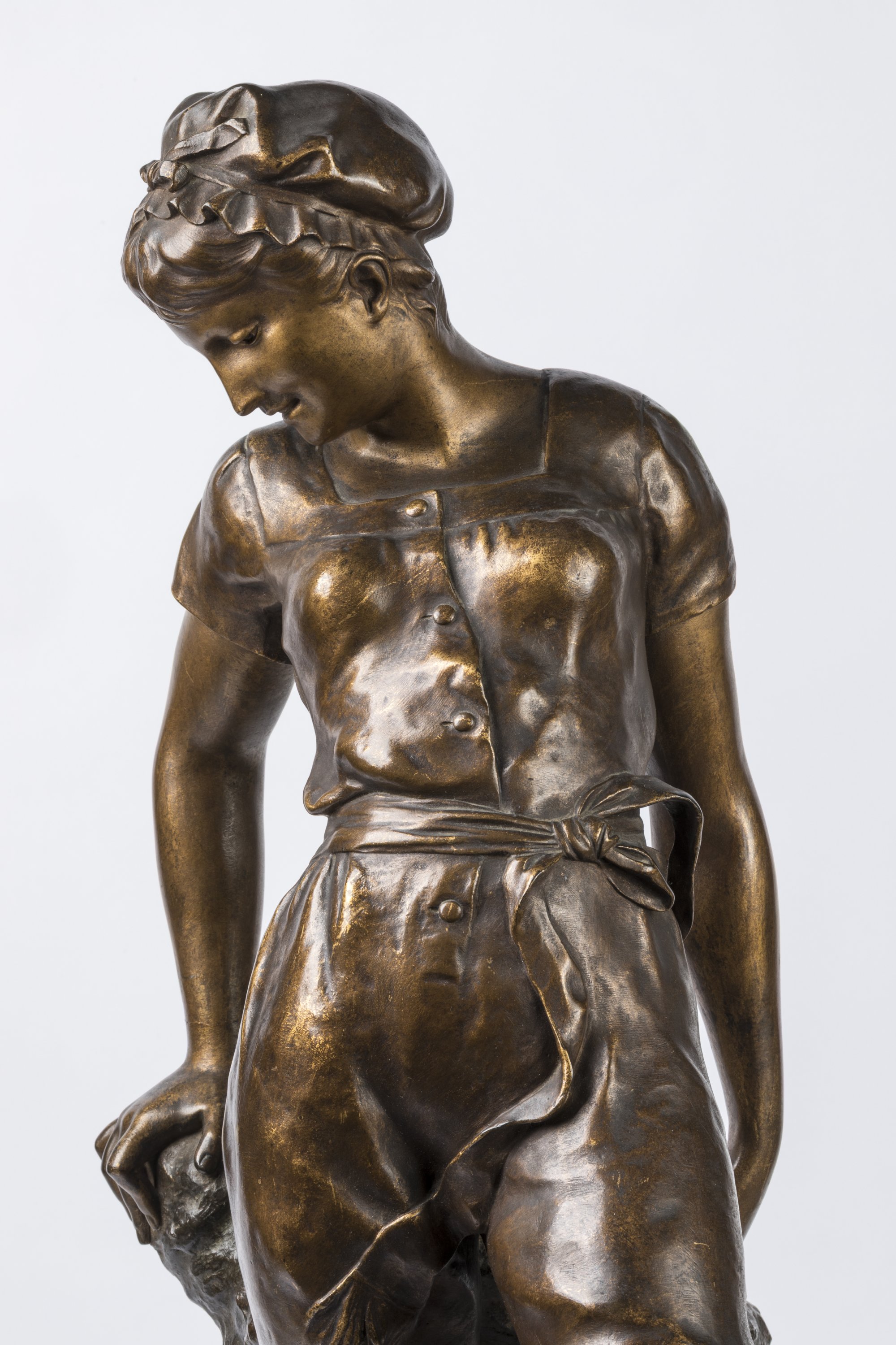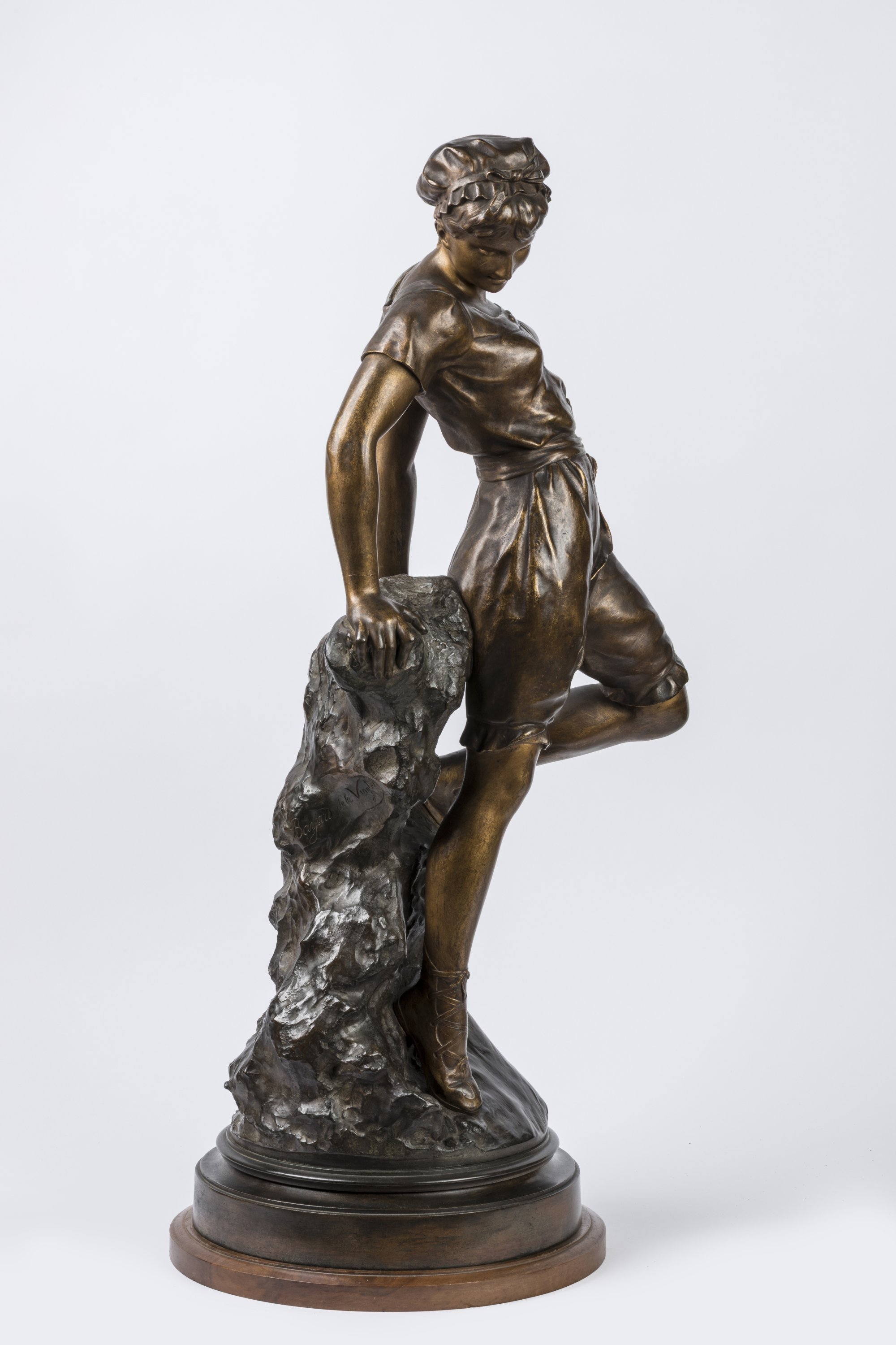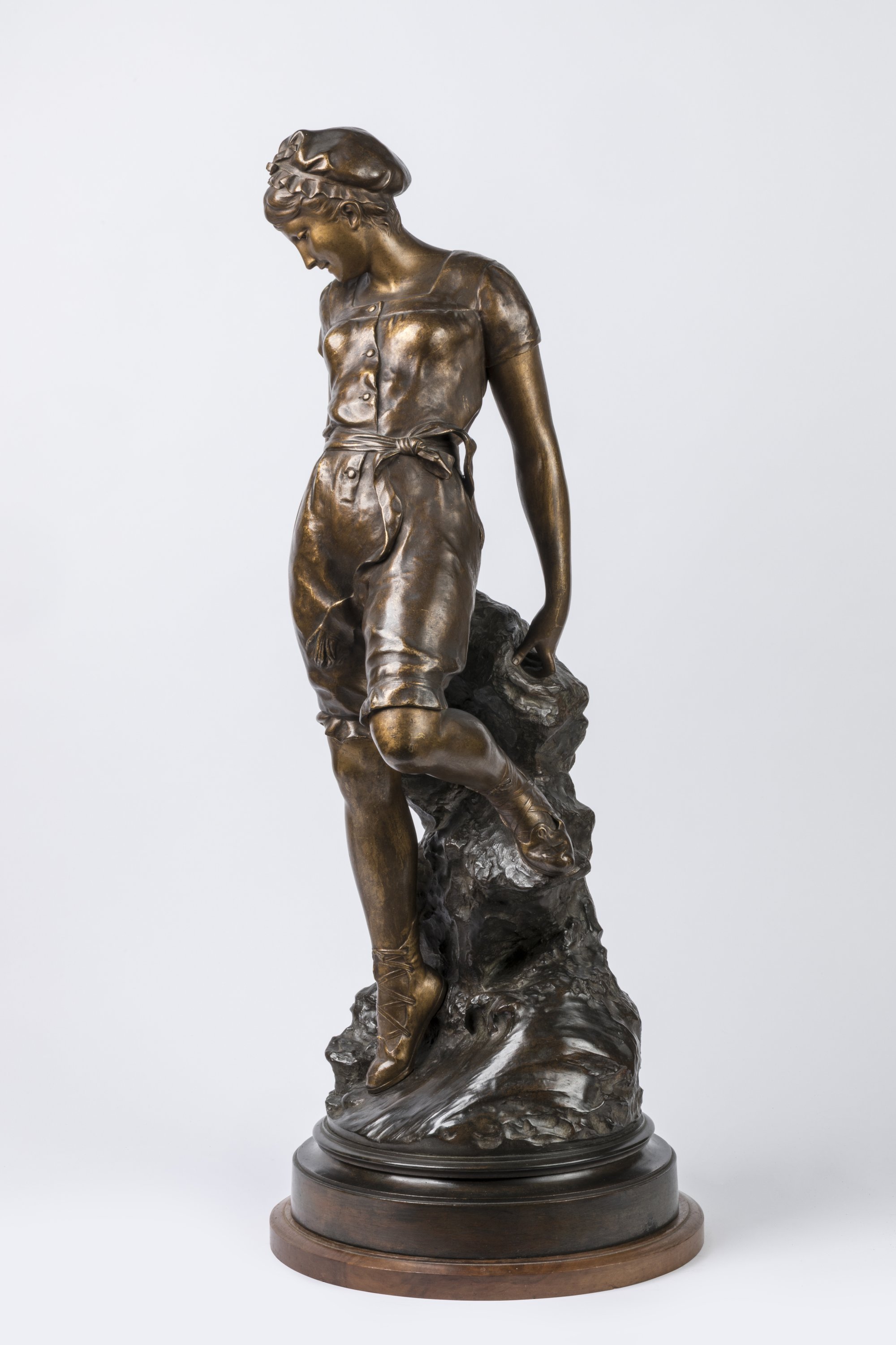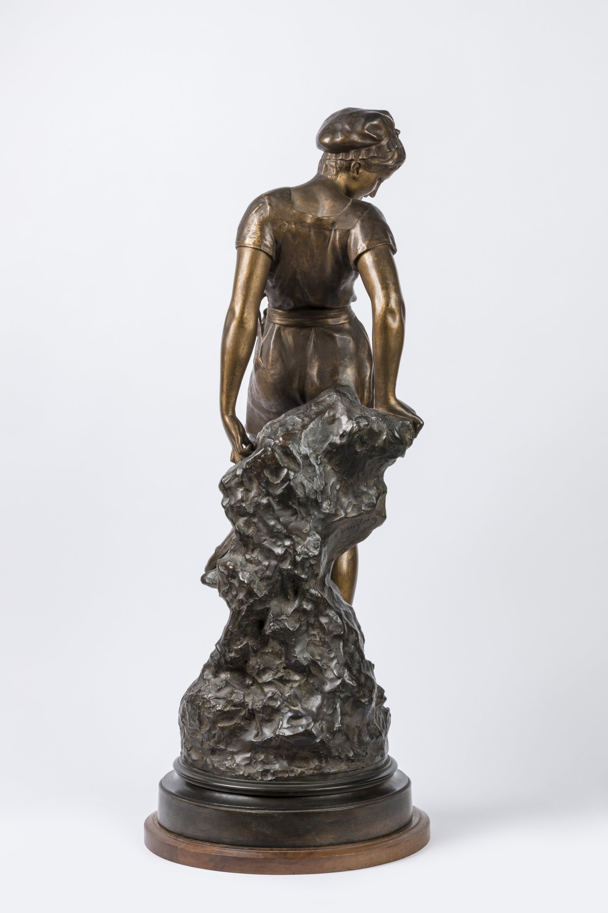 Paul Armand Bayard de La Vingtrie. A bronze sculpture depicting a woman on a rock. Signed. Wooden base.