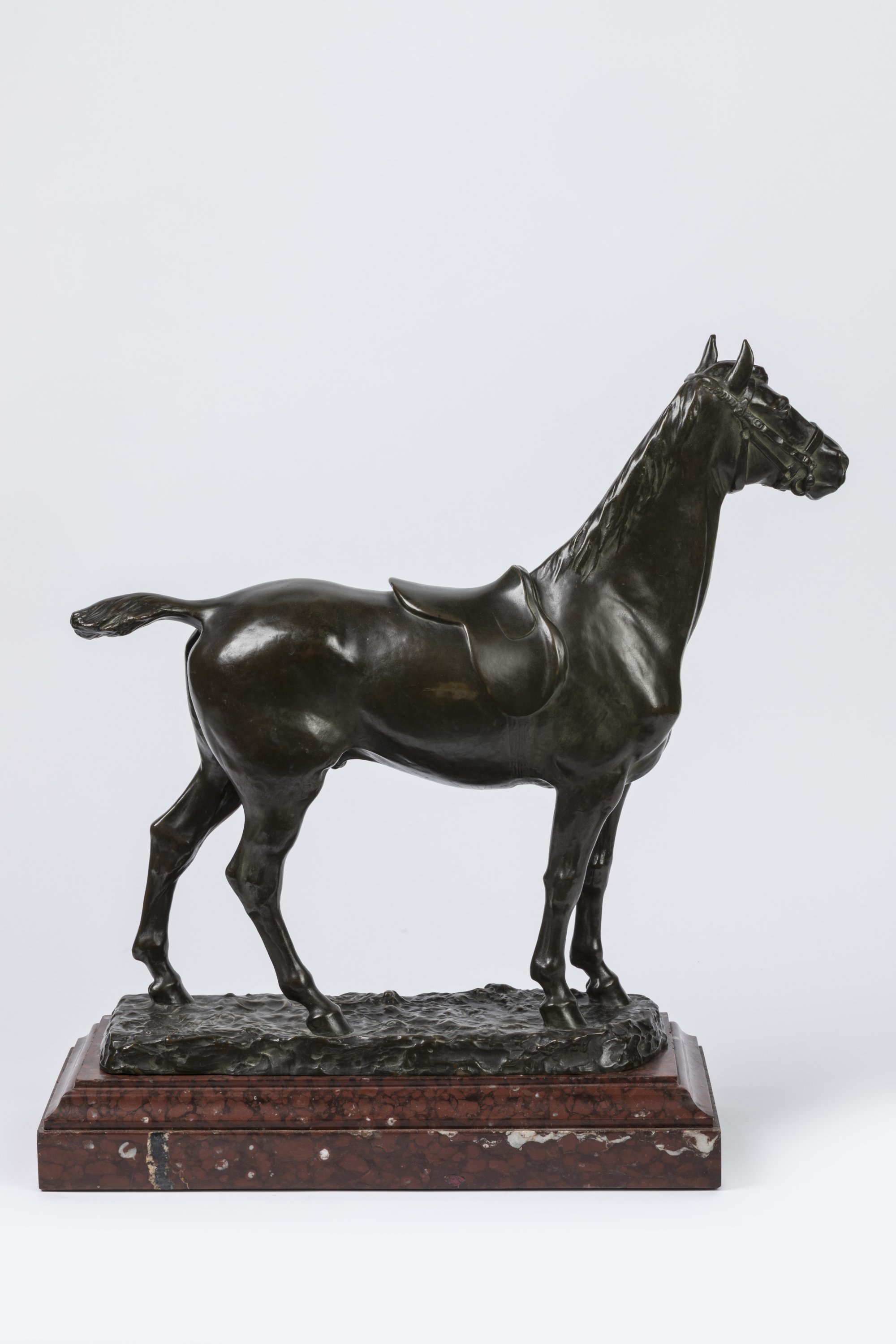 Godefroid Devreese. A ca. 1892 bronze sculpture of a stallion. Signed.