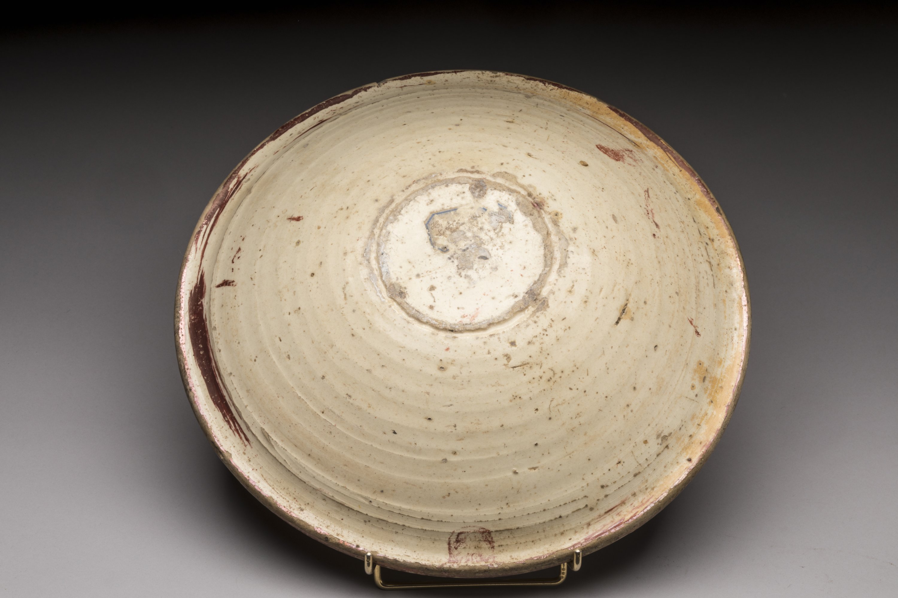 Faïence à décor ocre lustré sur fond chamois d’œillets dans un vase sur l’un et d’un pardalote sur fond de végétaux sur l’autre.