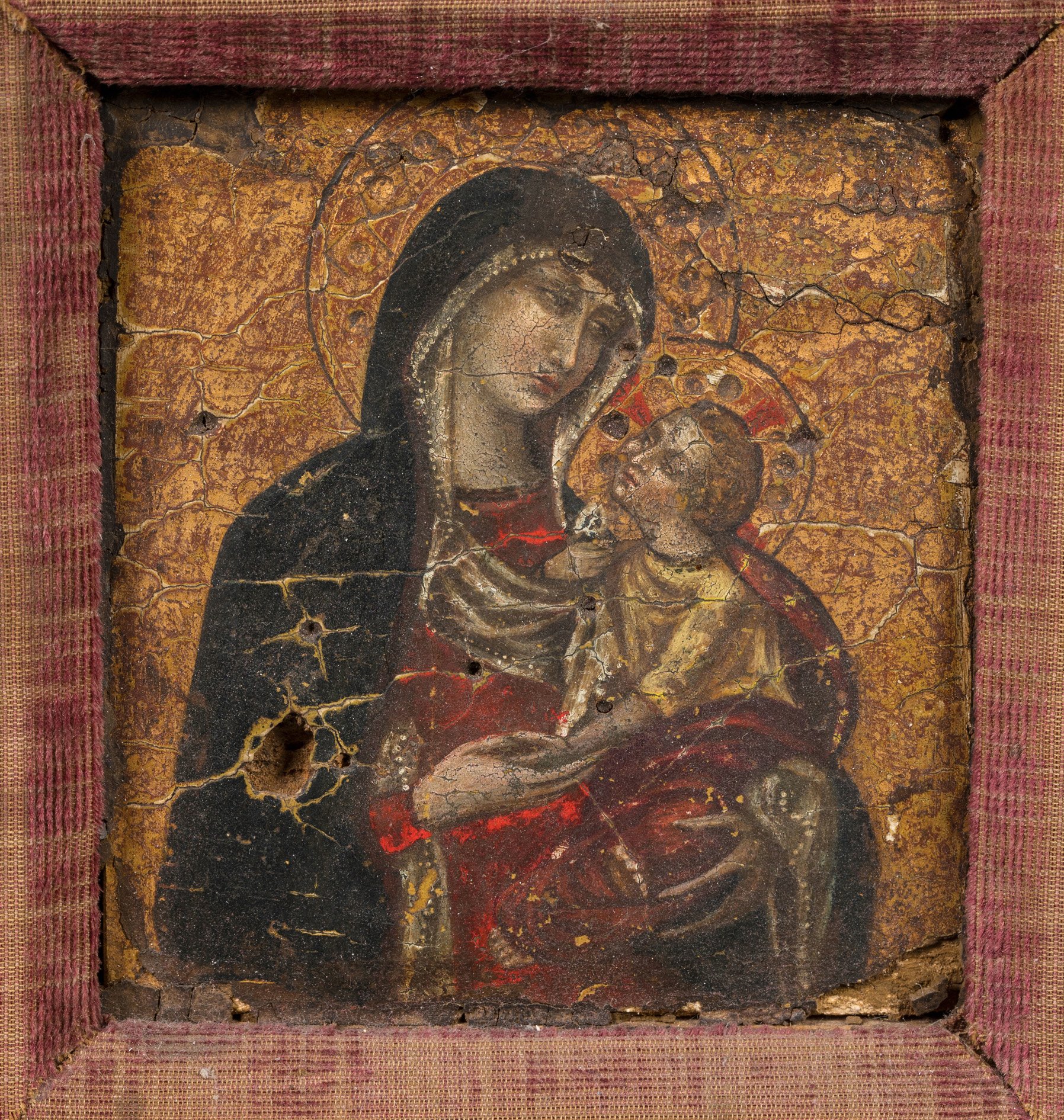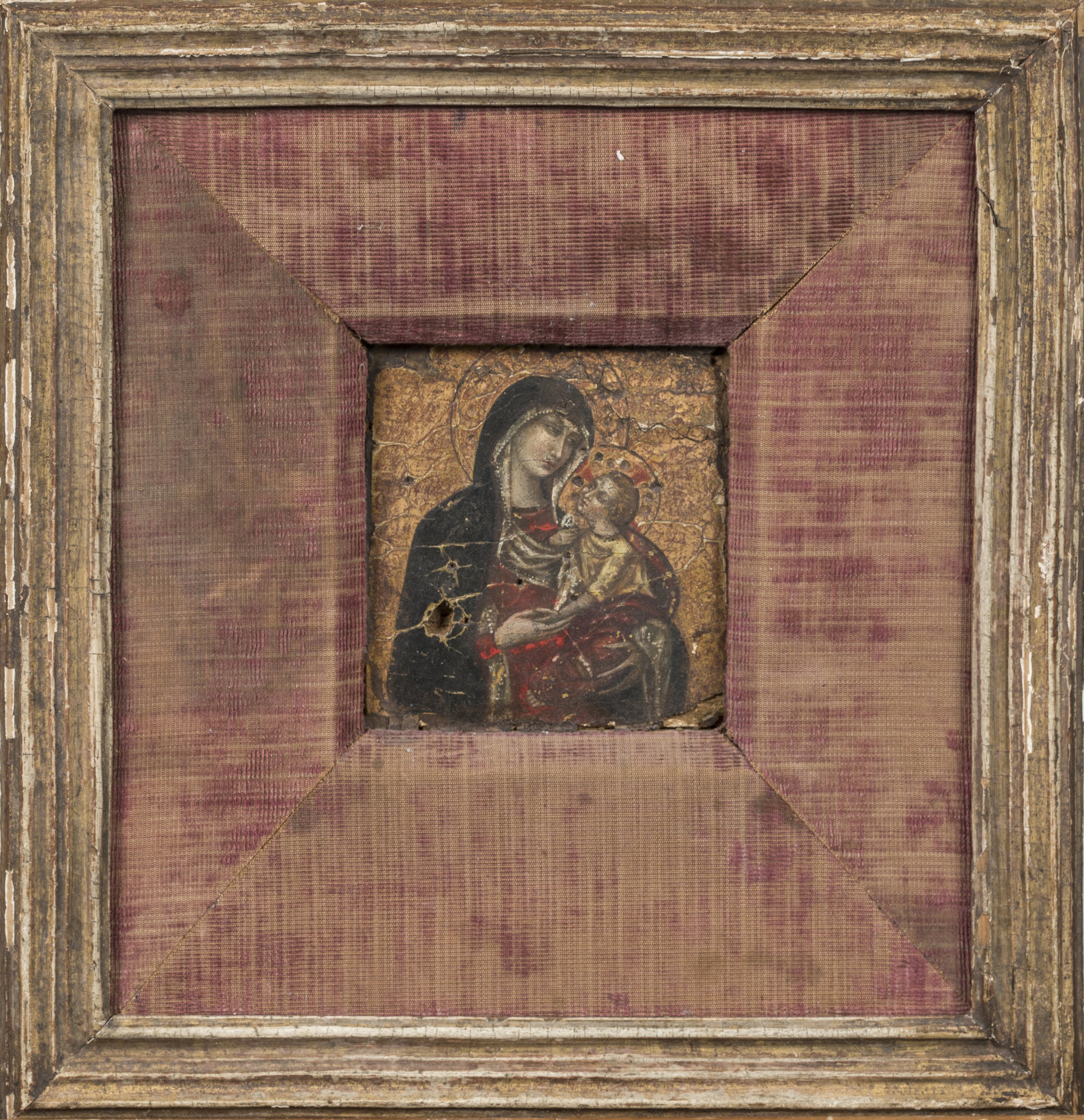A Madonna and Child painting in the manner of the Lorenzettis. Oil on panel.