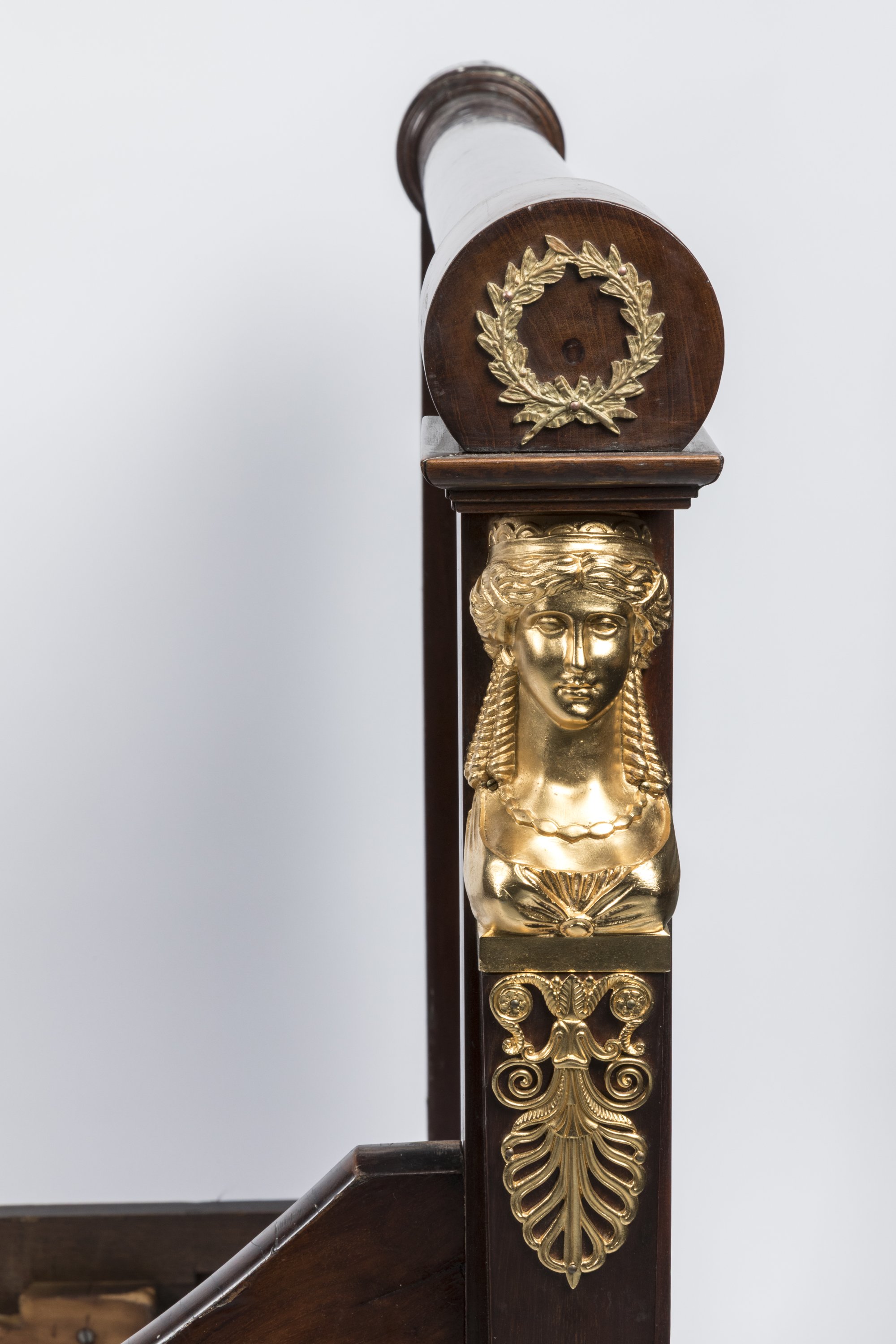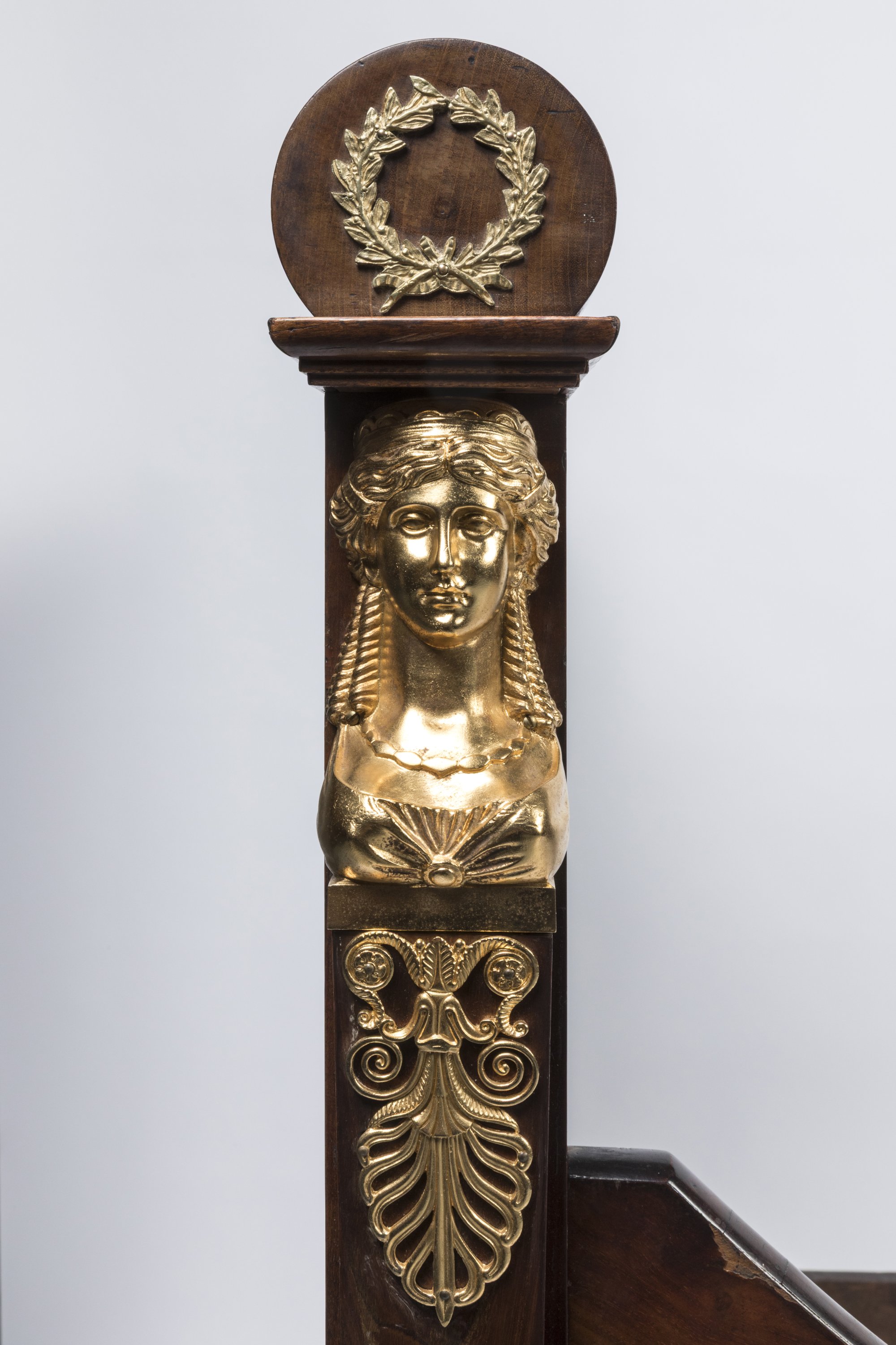 An ormolu-mounted mahogany daybed decorated with Egyptian women's heads. Empire style, 19th century.