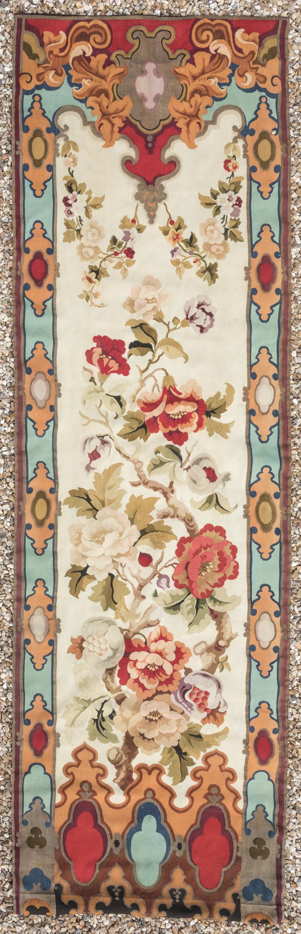 A pair of Aubusson entre-fenêtre tapestry panels decorated with peonies. Probably woven in the Sallandrouze de La Mornaix factory after a design by Amédée Couder.