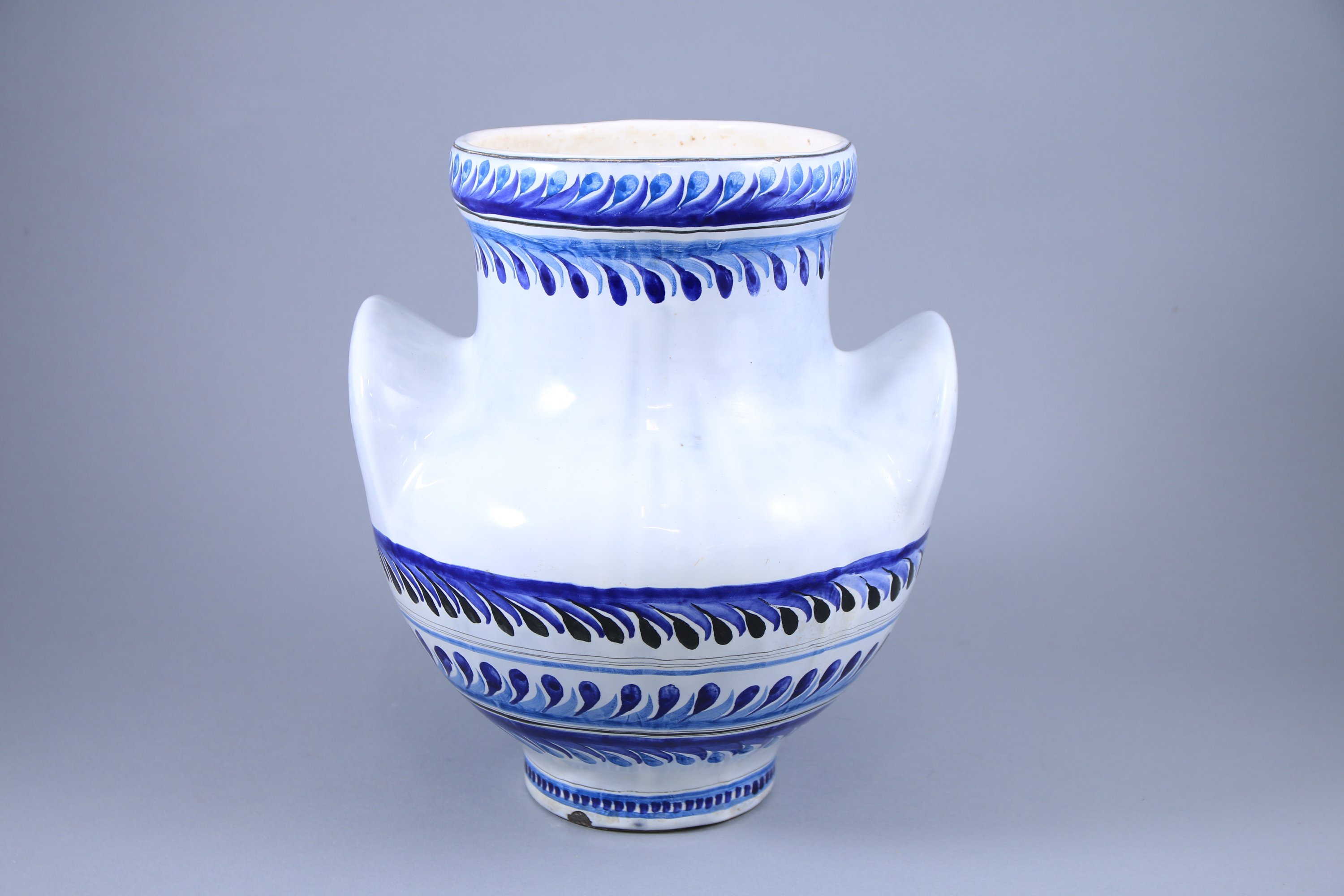 Céramique à décor de guirlandes bleues et blanches à la façon des productions à la bougie du XVIIe siècle.