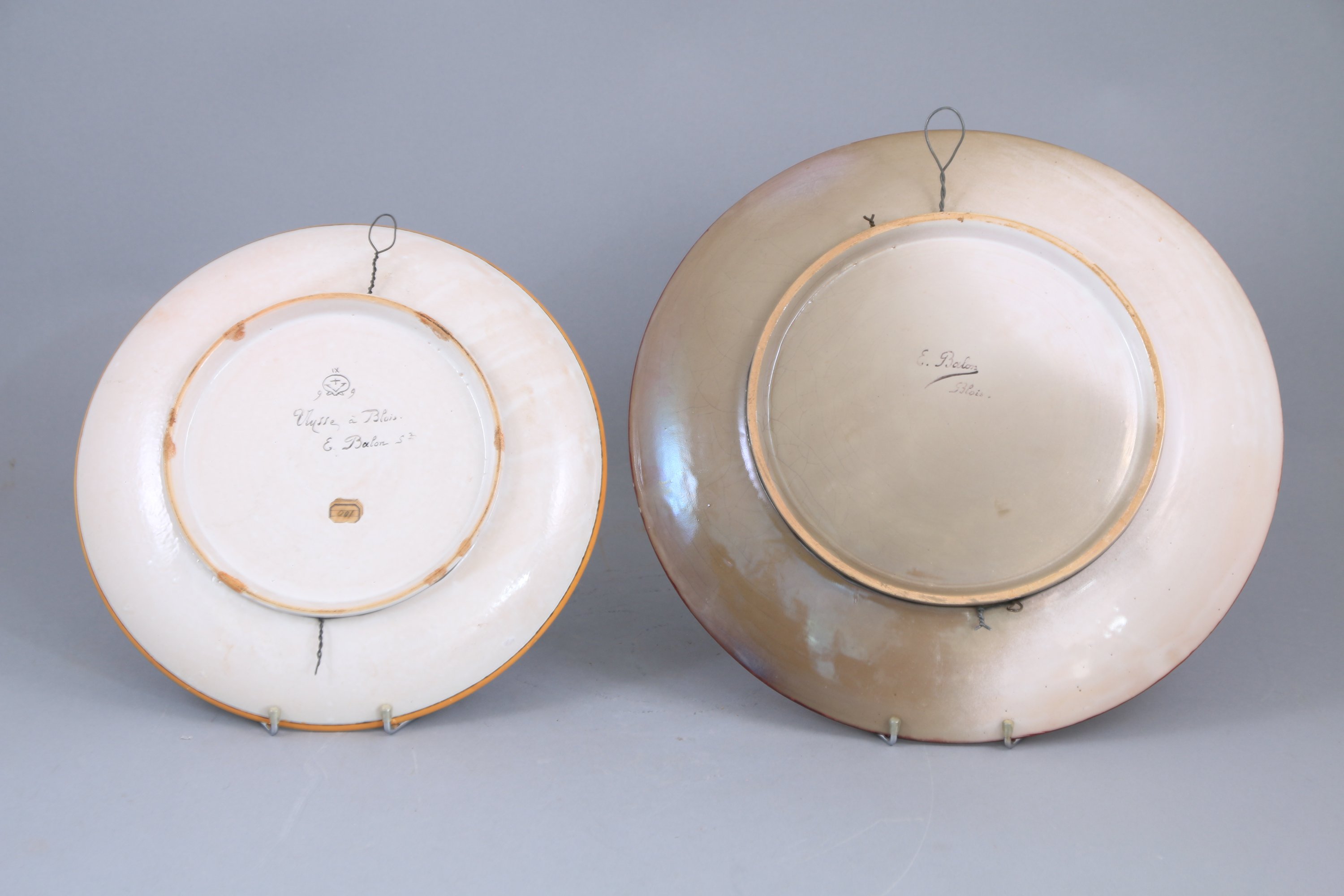 - Plat, 1899. Faïence polychromée à décor de branches de magnolia sur fond de semi. L'entourage de rinceaux. Signé et daté "IX 99". Diam. 30 cm. (usures à la dorure) ;