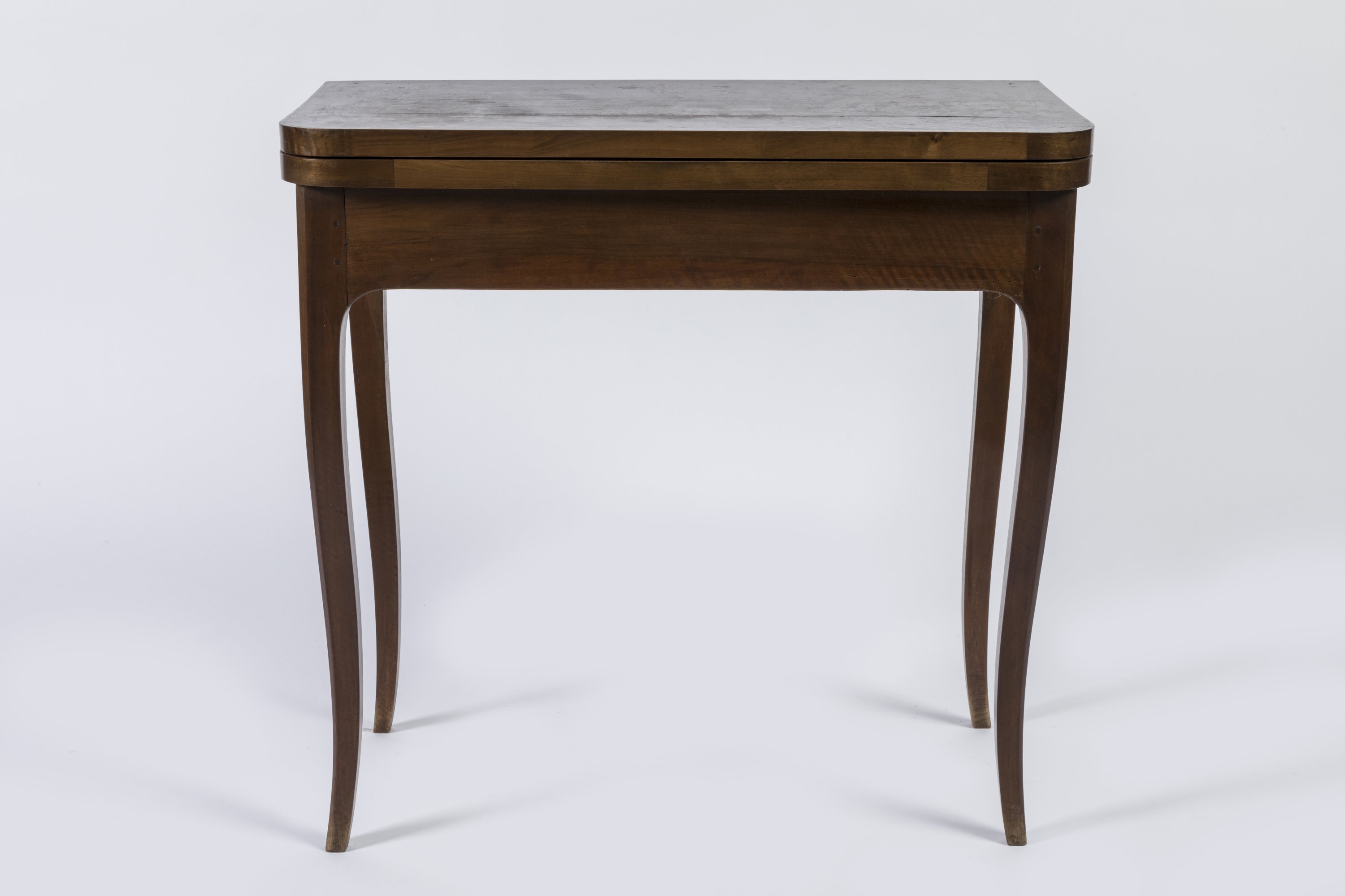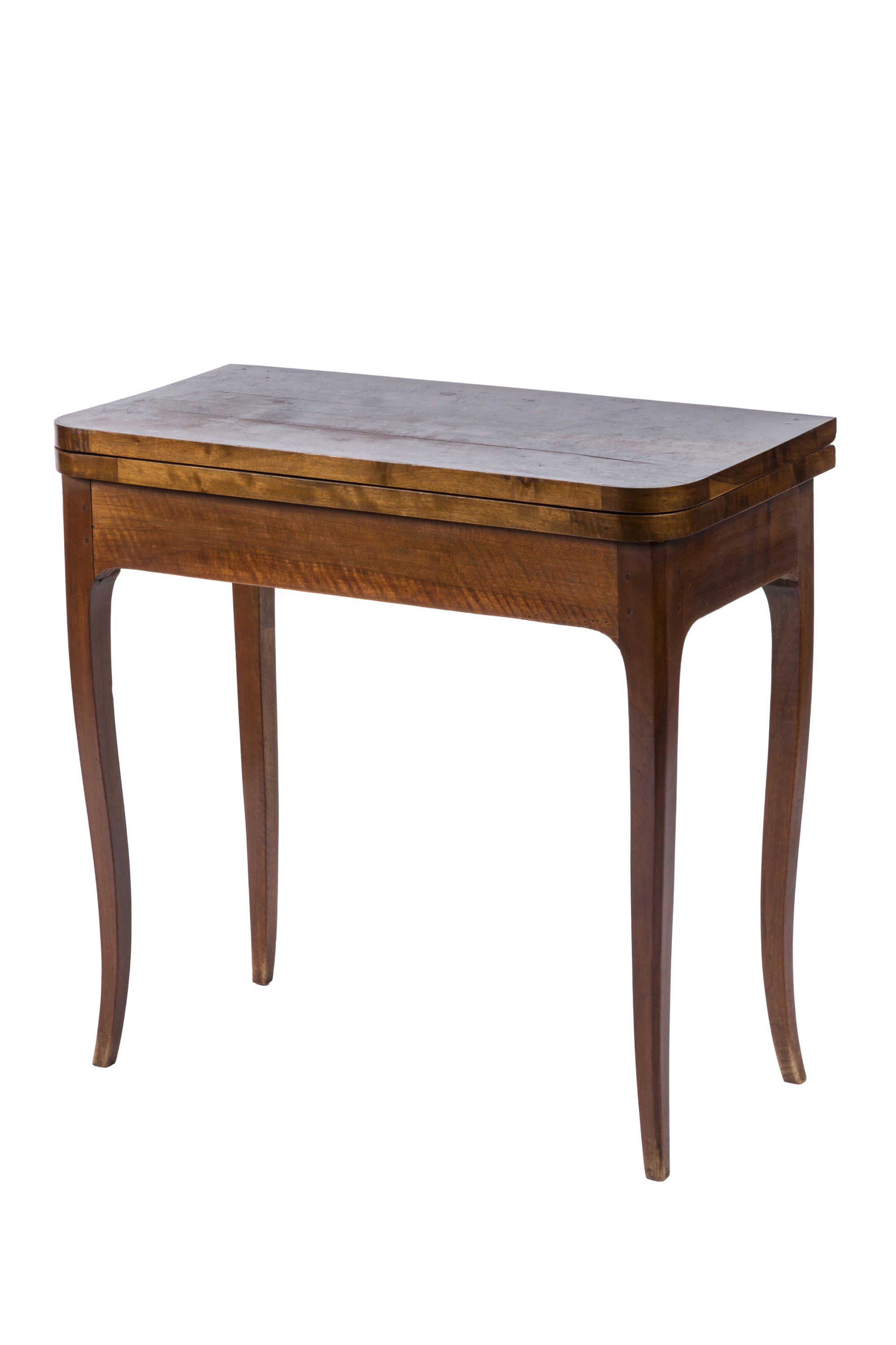 De forme rectangulaire à plateau déployant. Quatre pieds cambrés.