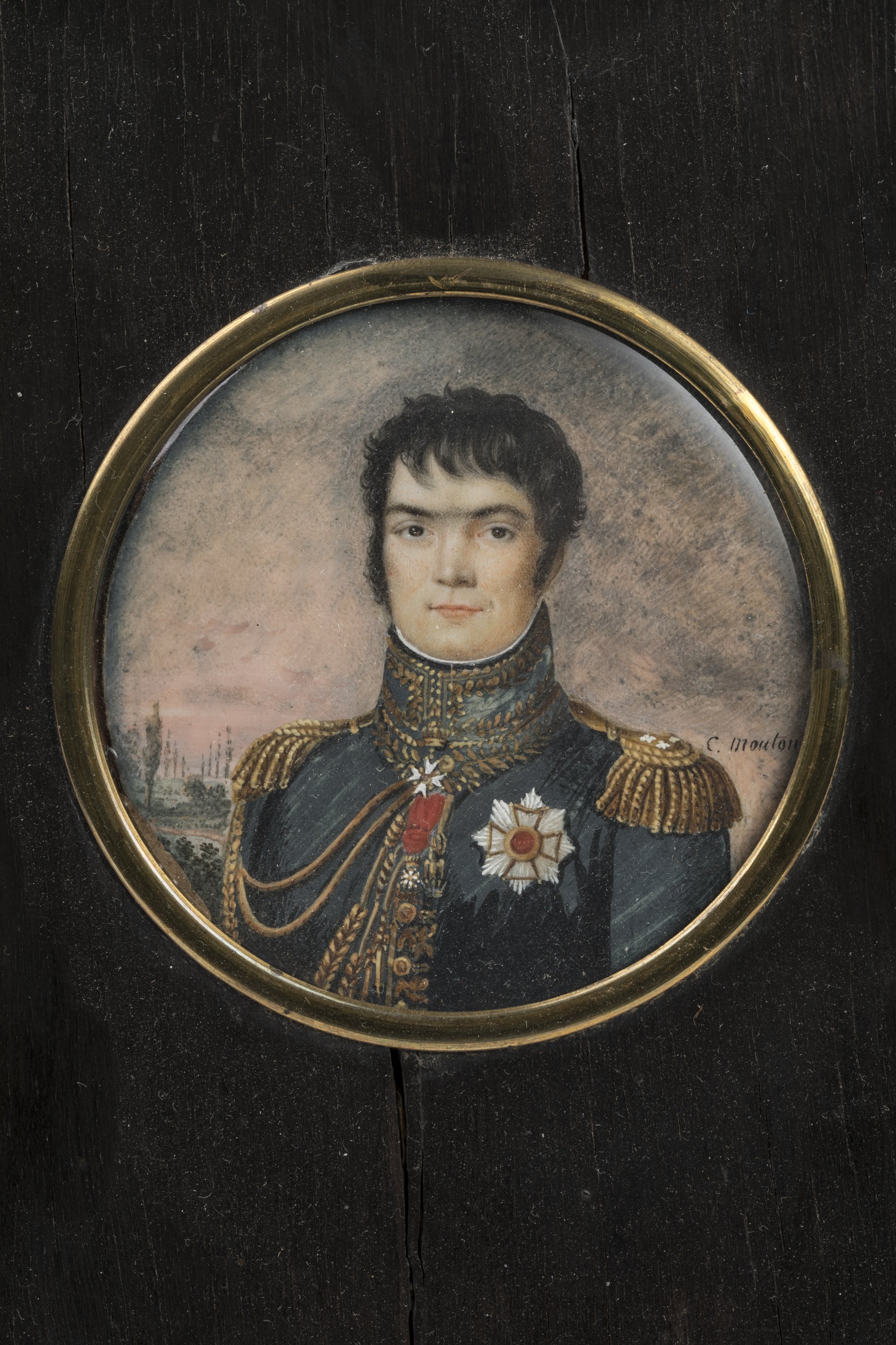 - Une miniature d’époque Premier Empire signée C. Mouton à Besançon en collection privée.