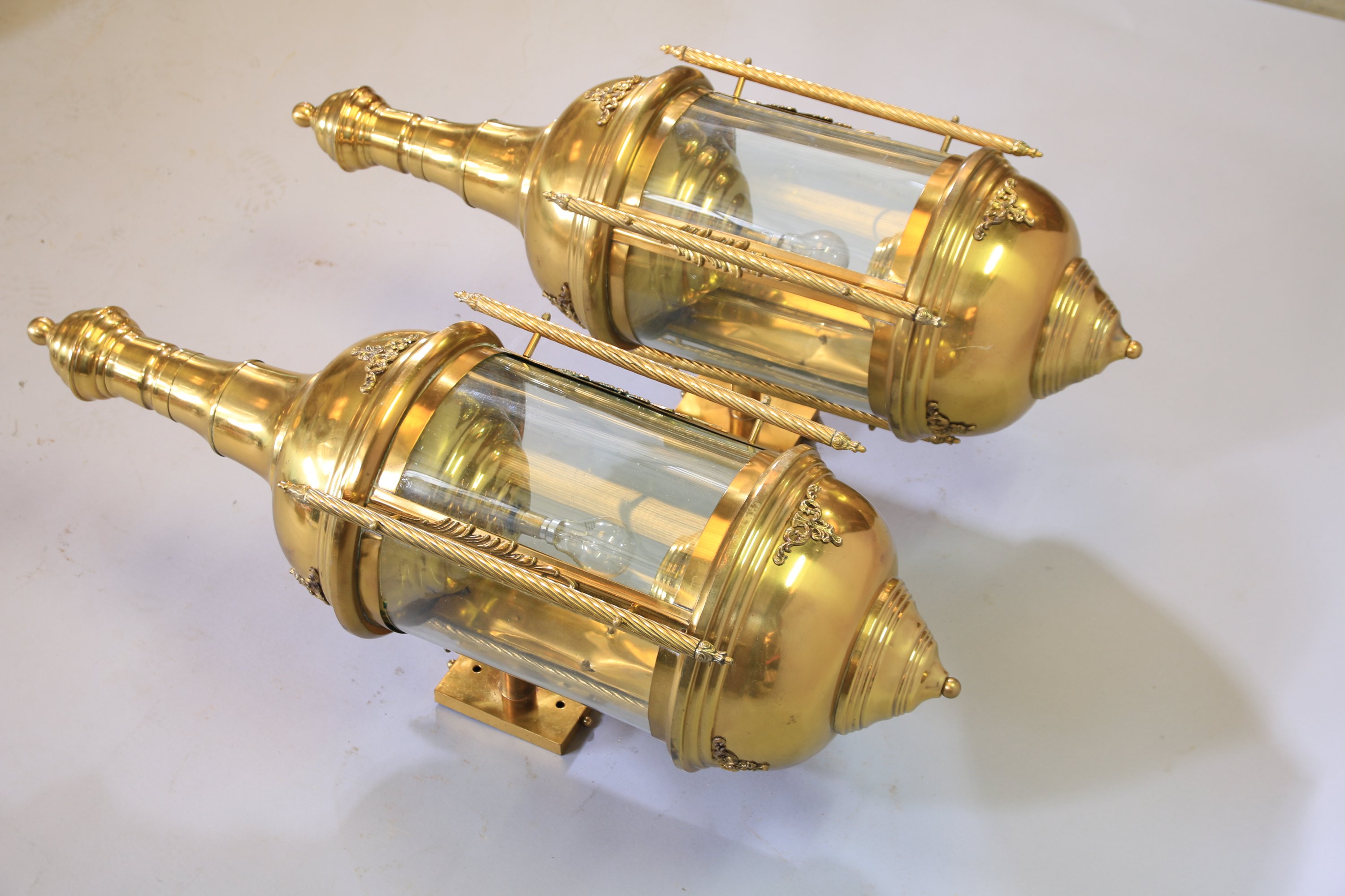 De forme cylindrique, les sommets en pinâcles, barres de renfort torsadées. Applique de cuivre doré en forme de rinceaux et d'acanthes.