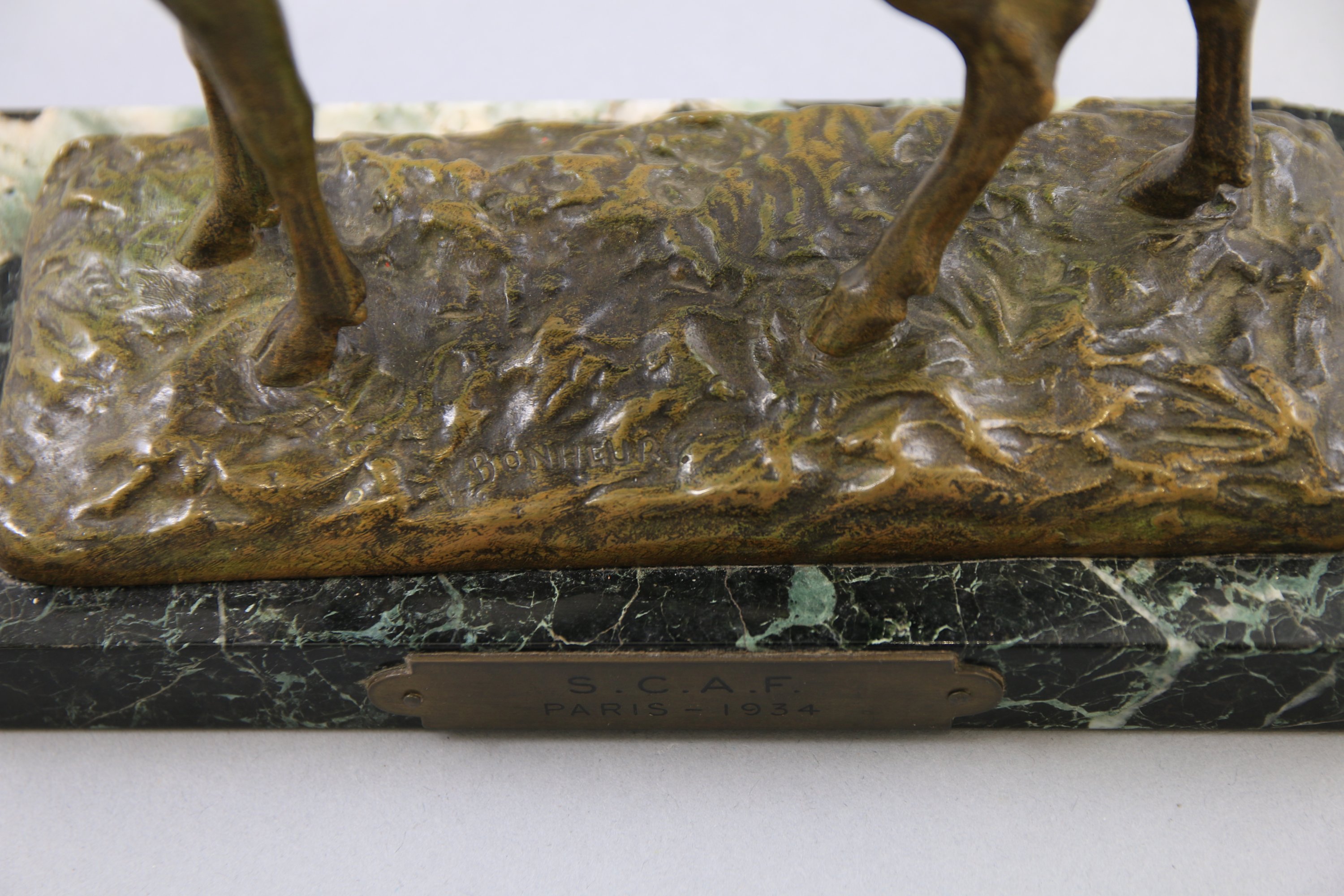Sur un socle en marbre vert avec cartouche « S.C.A.F / Paris 1934 » (Haut. totale 26,5 cm, accident à un angle).