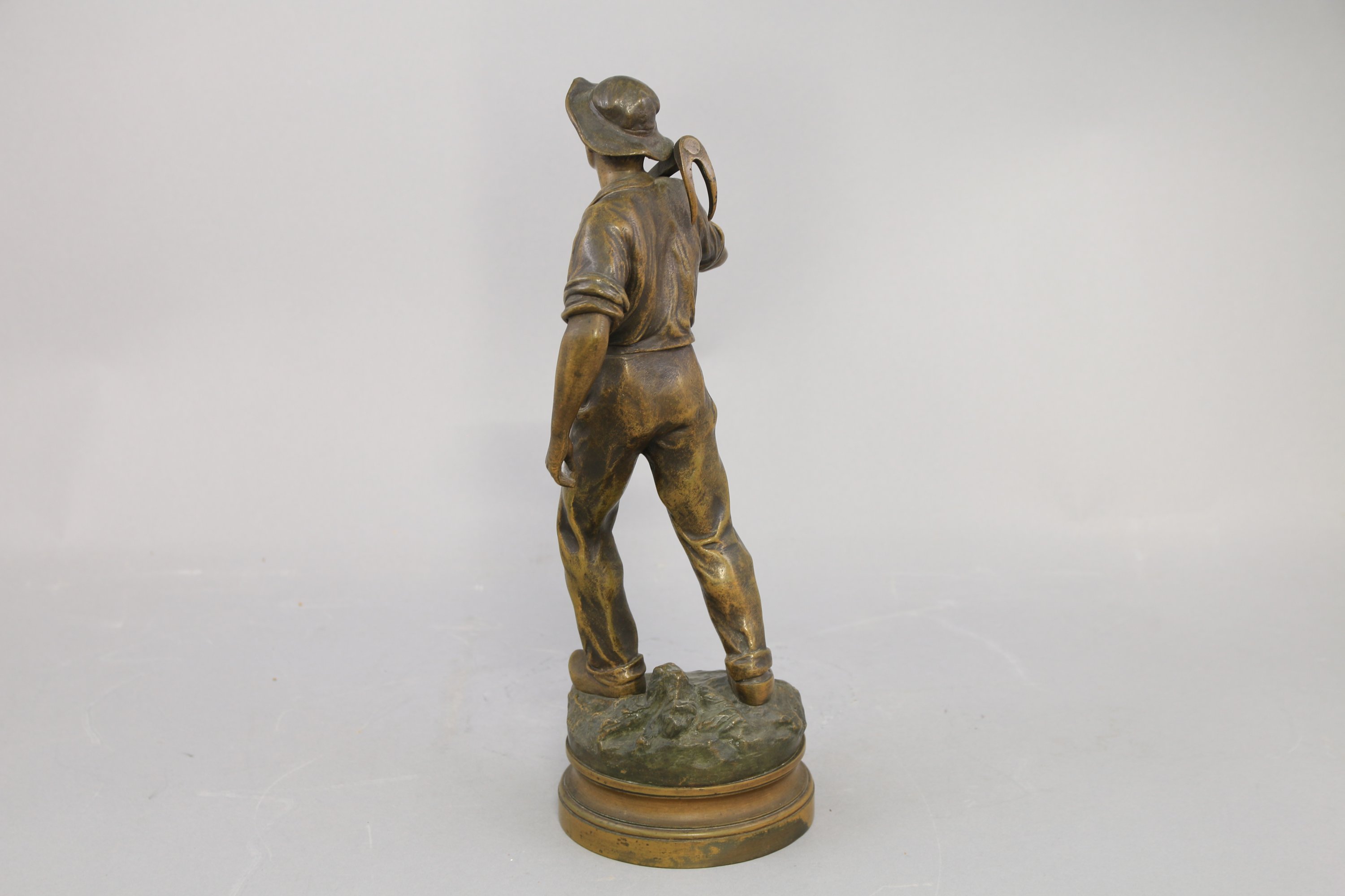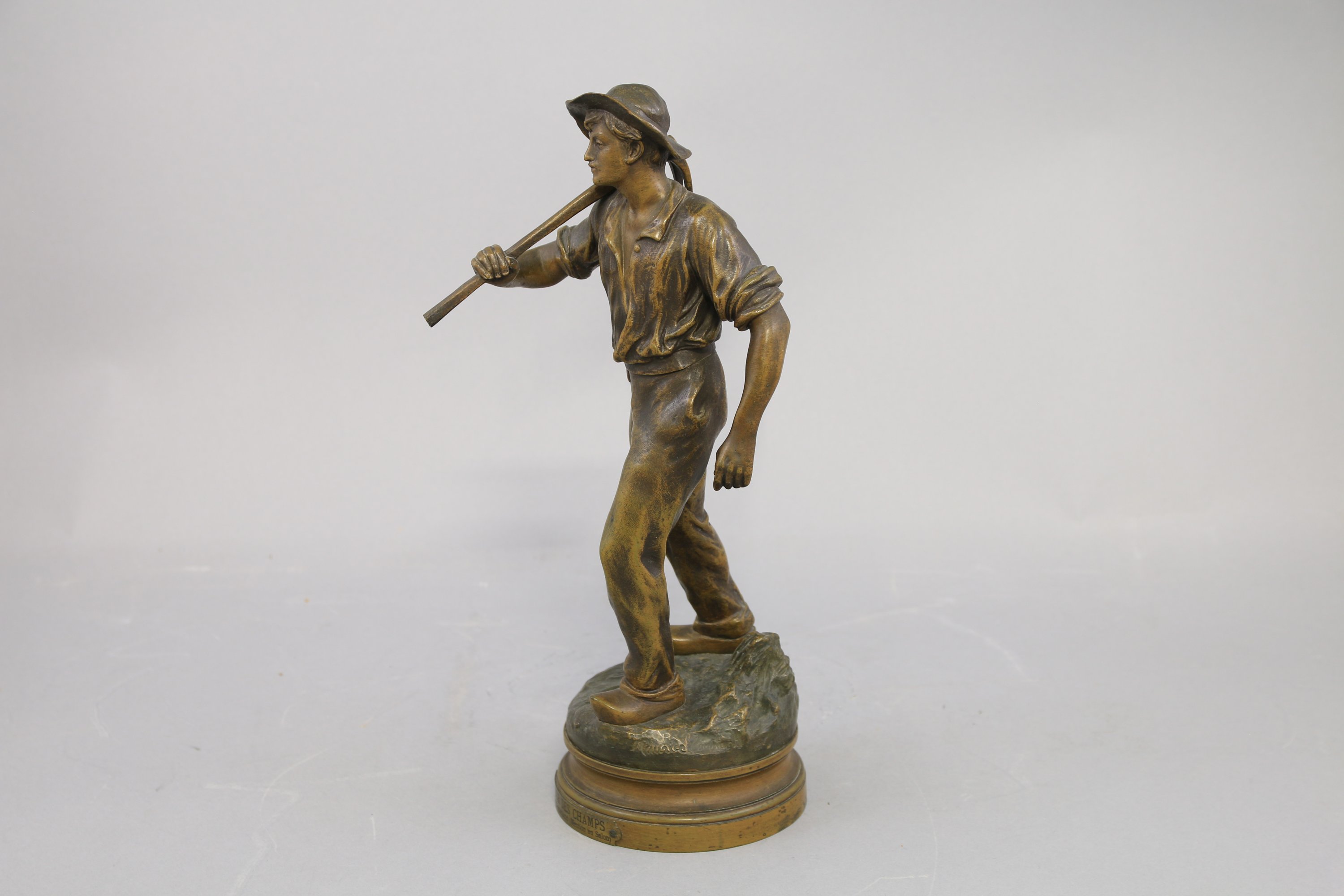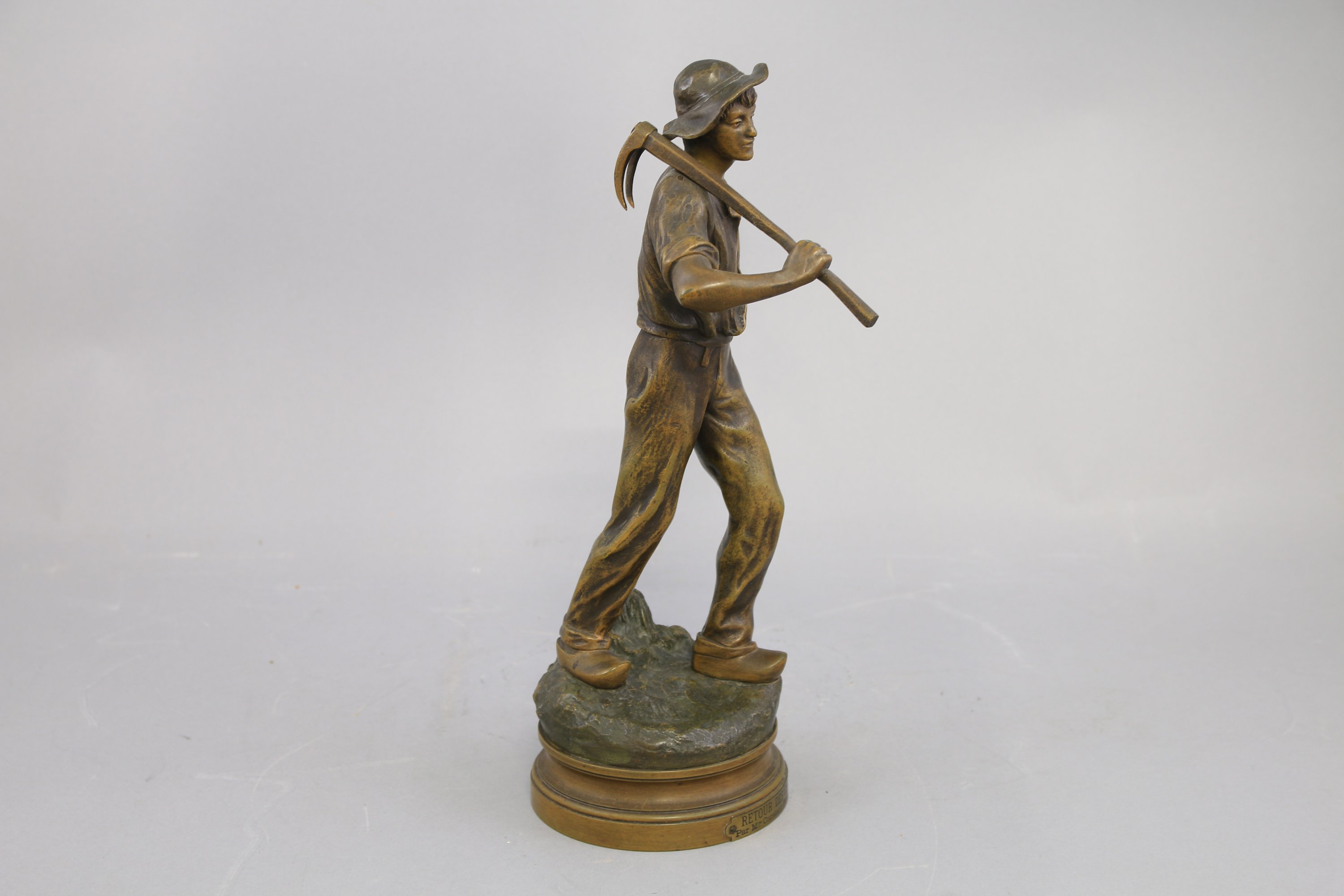 Signé sur la terrase. Présenté sur une base circulaire moulurée avec cartouche mentionnant "Retour des champs Par Mce Constant (Mention au Salon)". Titré à l'encre et estampé au revers et numéroté "31636".