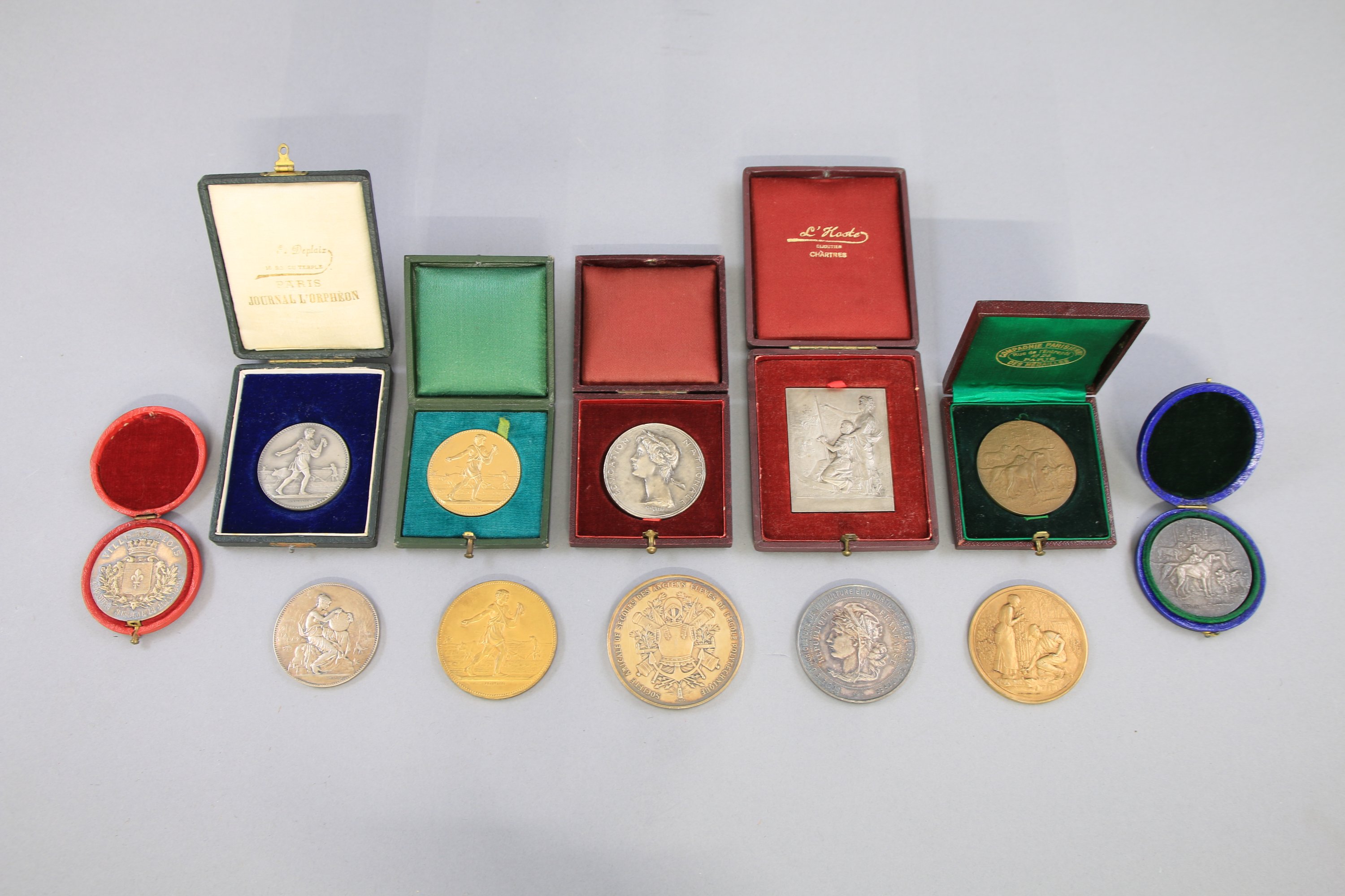 Joint : collection de médailles en bronze de membre du jury du Concours Général Agricole, médaille du 8ème régiment de hussards, médaille de la Société française pour l'amélioration des races canines, médaille du comice agricole de l'arrondissement de Blois et médaille de l'Exposition universelle de Paris de 1878.
