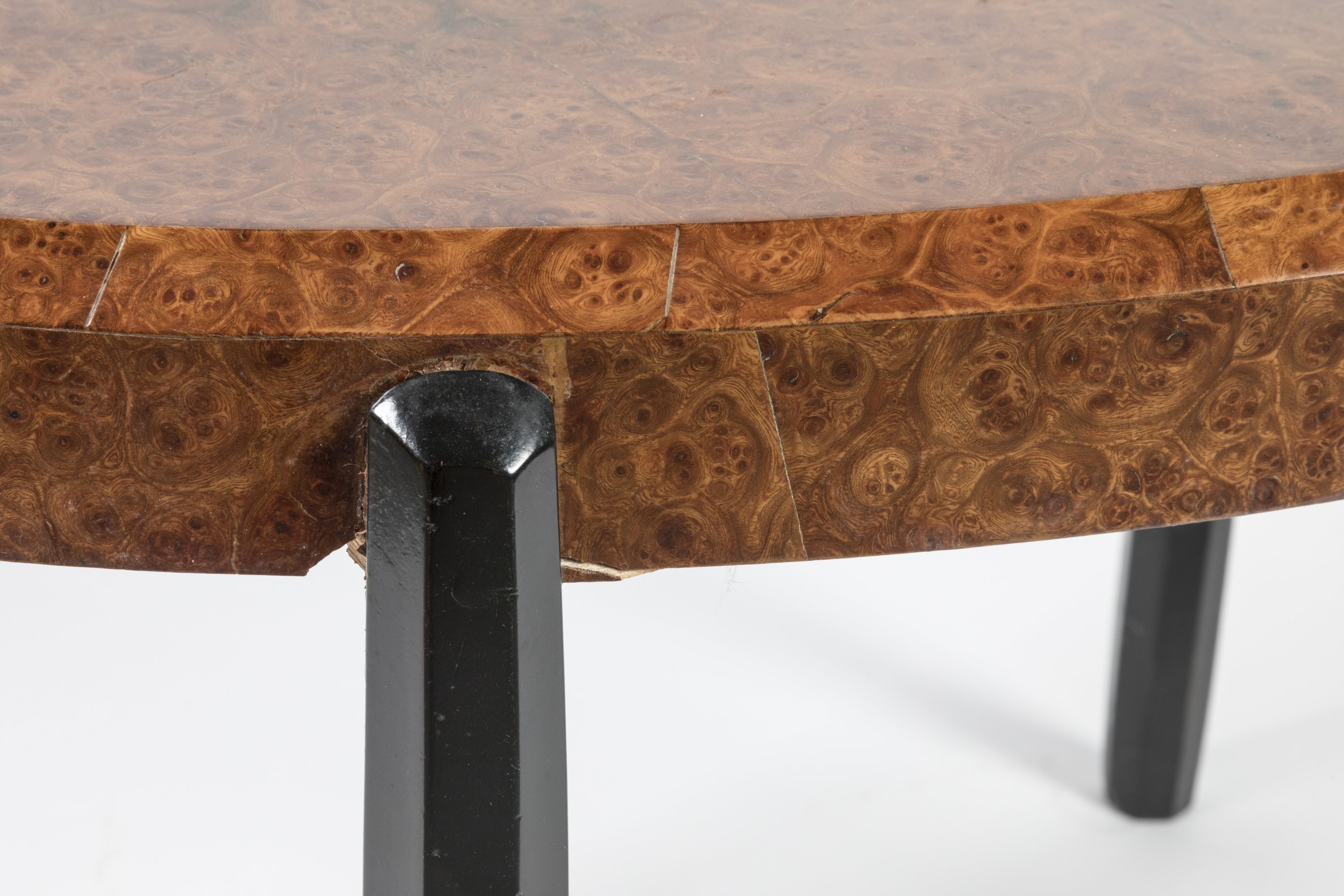 Le plateau de forme ovale reposant sur quatre pieds octogonaux en bois laqué noir.