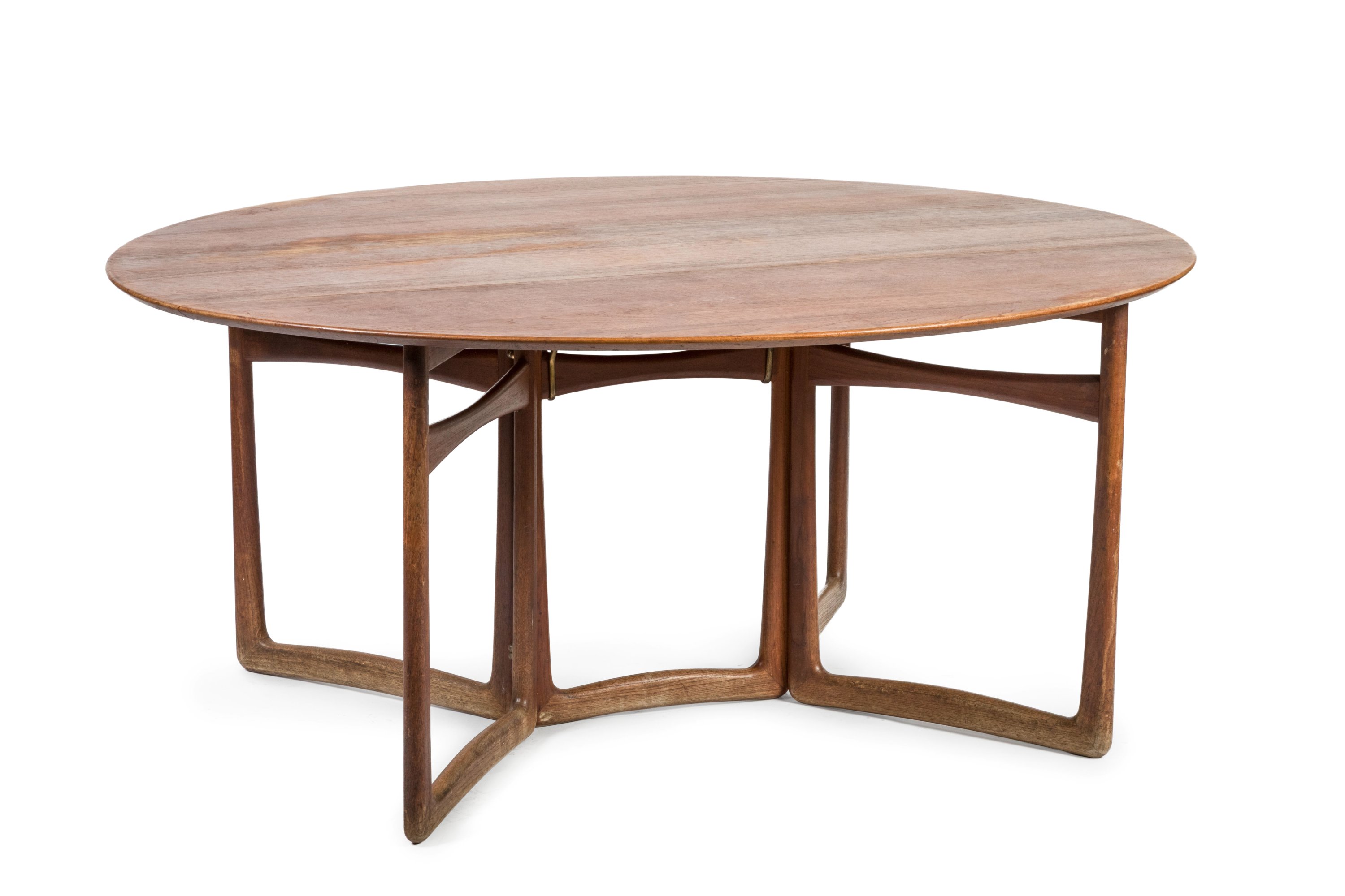 Le plateau de forme ovale à deux volets reposant sur un piétement Gateleg.